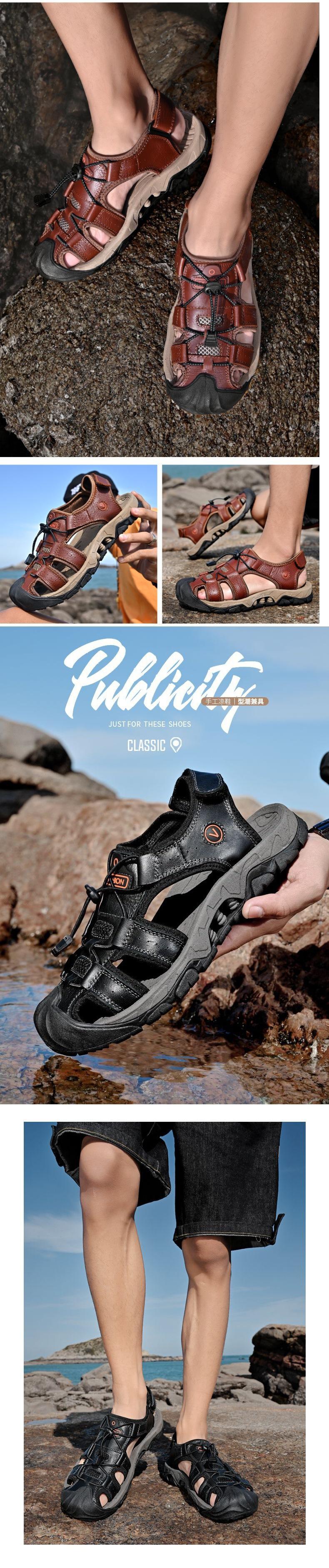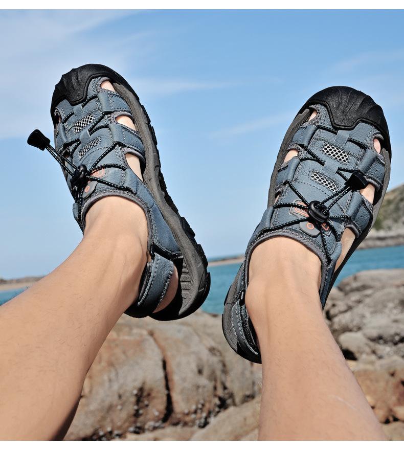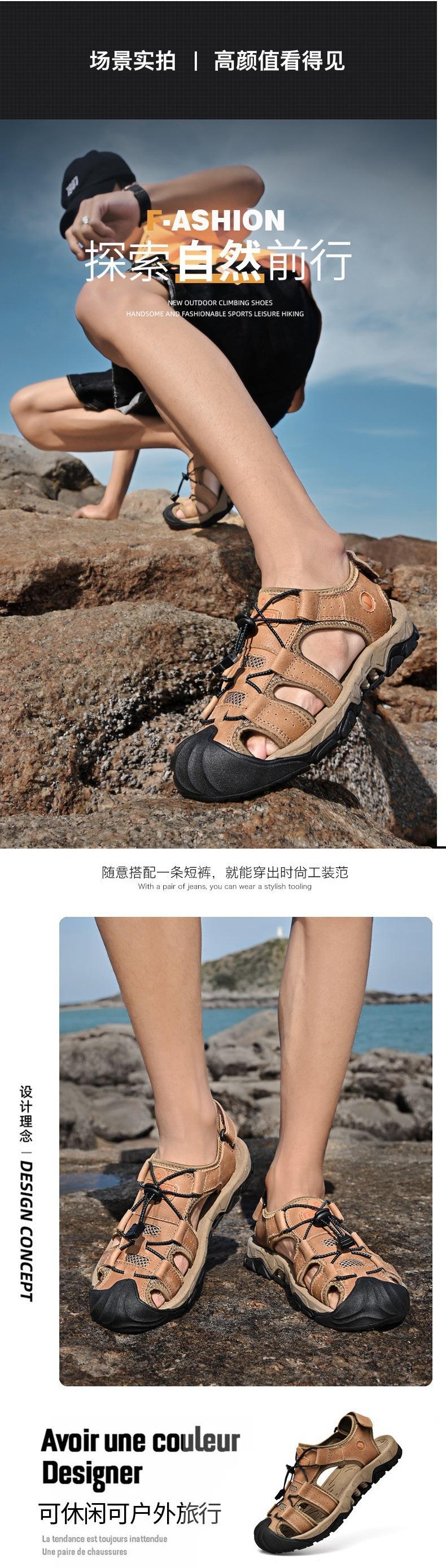 Sandalias Nuevas 2024 para Hombre Verano Cuero Genuino Antideslizantes Suela Suave Anti-Olor Ligeras Deportes y Ocio Zapatos de Playa Baotou