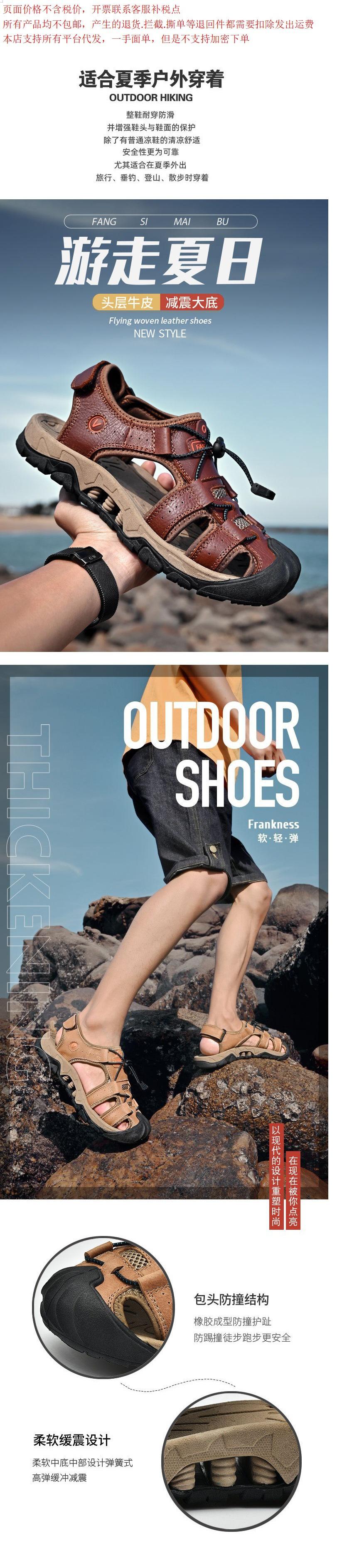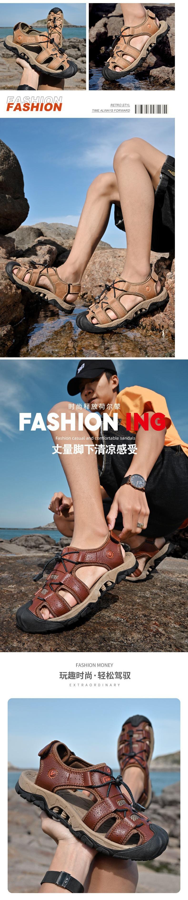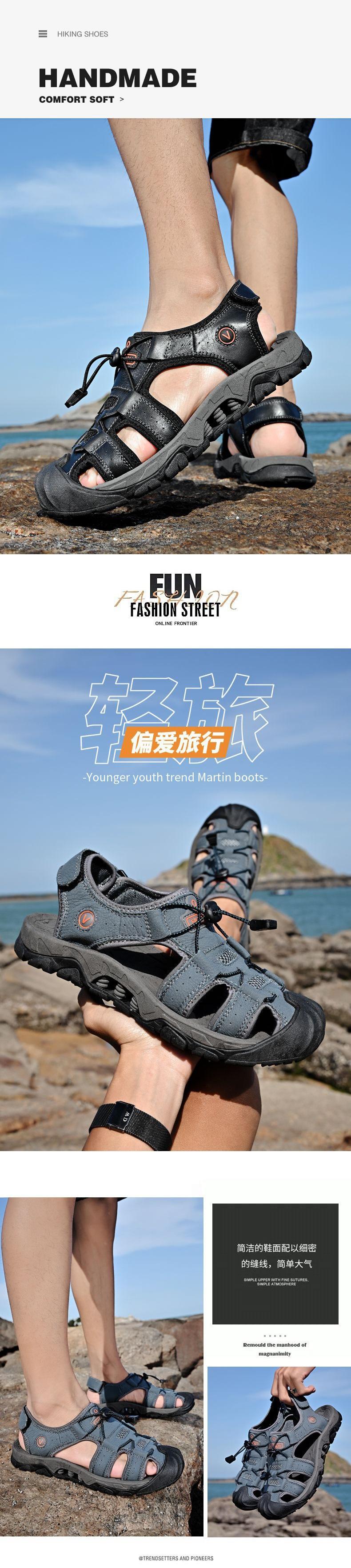 Sandalias Nuevas 2024 para Hombre Verano Cuero Genuino Antideslizantes Suela Suave Anti-Olor Ligeras Deportes y Ocio Zapatos de Playa Baotou