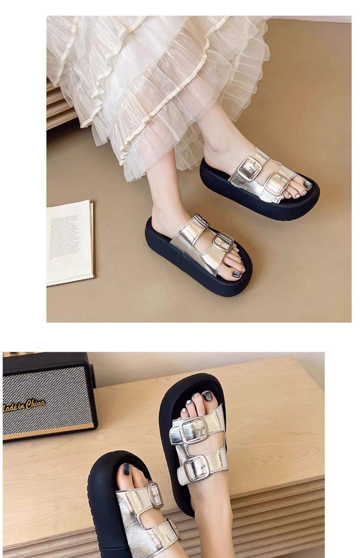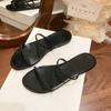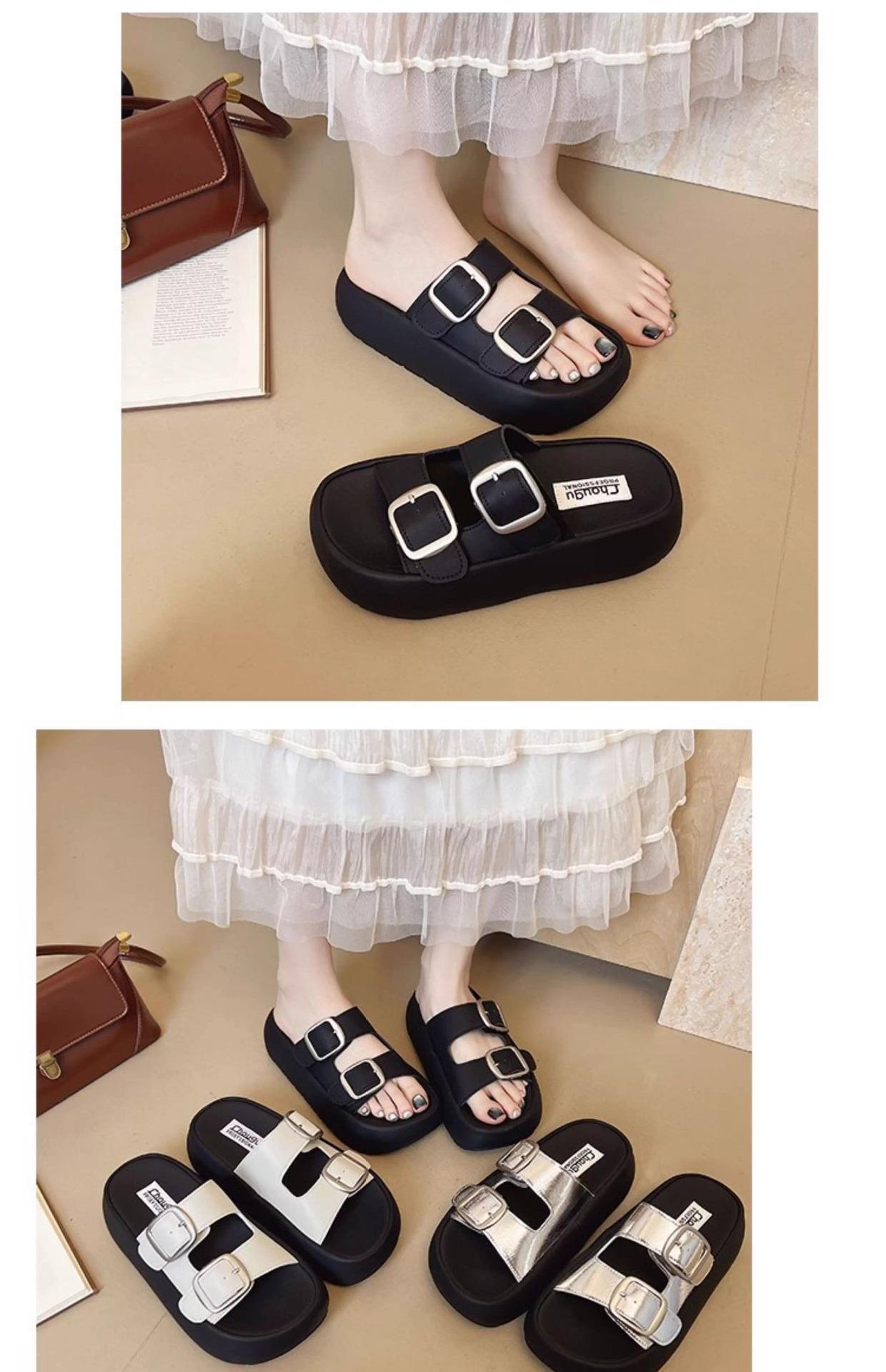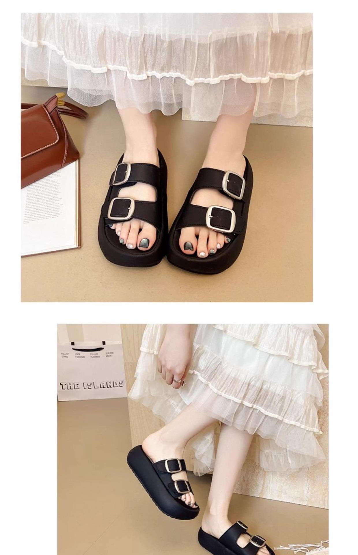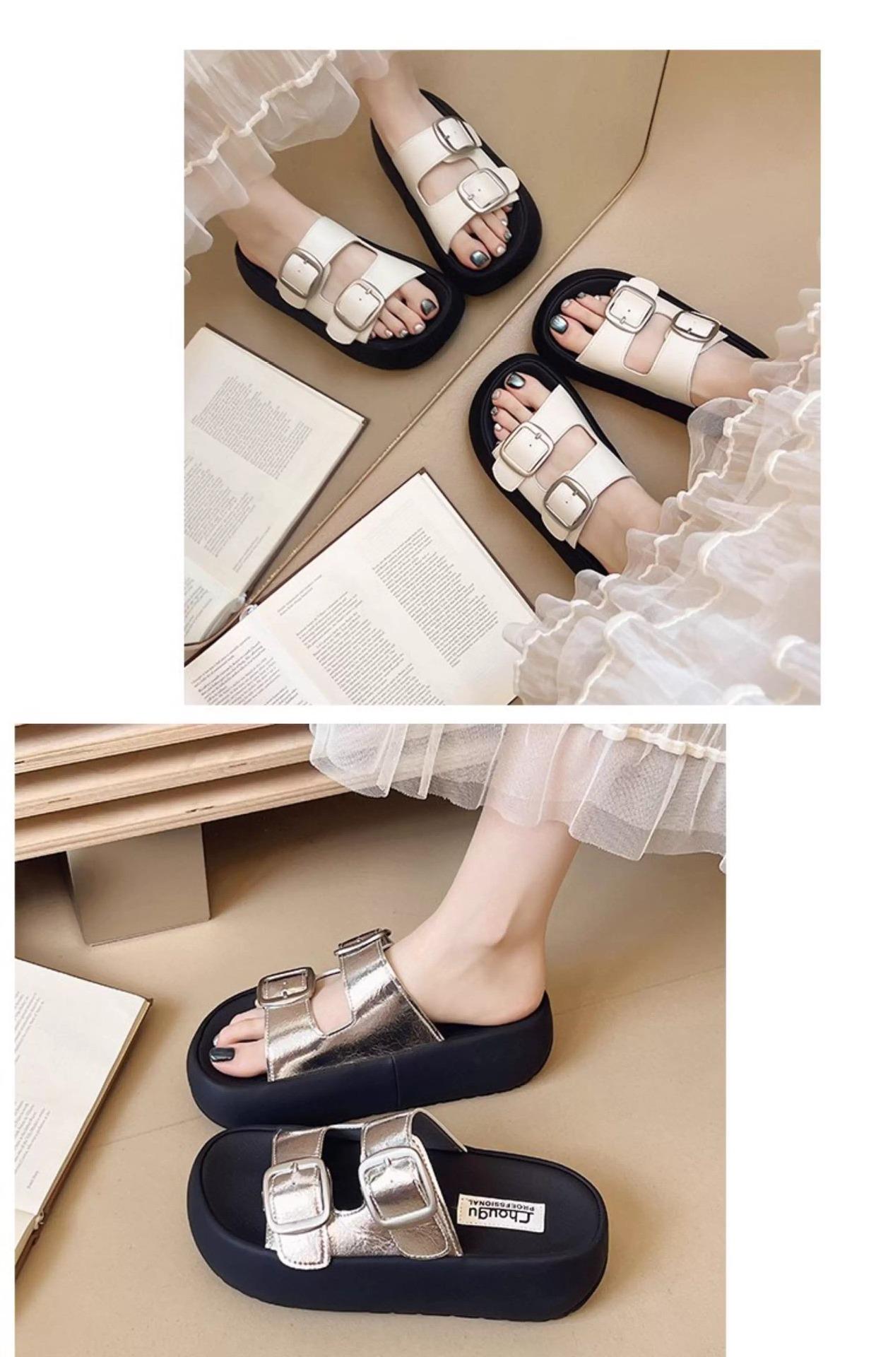 Pantuflas planas con hebilla para mujer para usar en exteriores 2025 Primavera y Verano Nuevo Color puro Doble tira Zapatos de playa Pantuflas casuales y versátiles