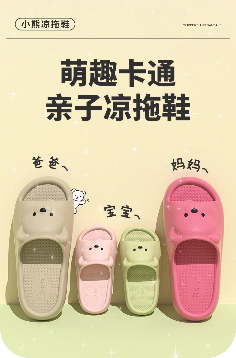 Pantuflas lindas de oso para niños para parejas Nuevas pantuflas de EVA antideslizantes de suela gruesa para el hogar interior para mujeres con sensación de popó Pantuflas familiares