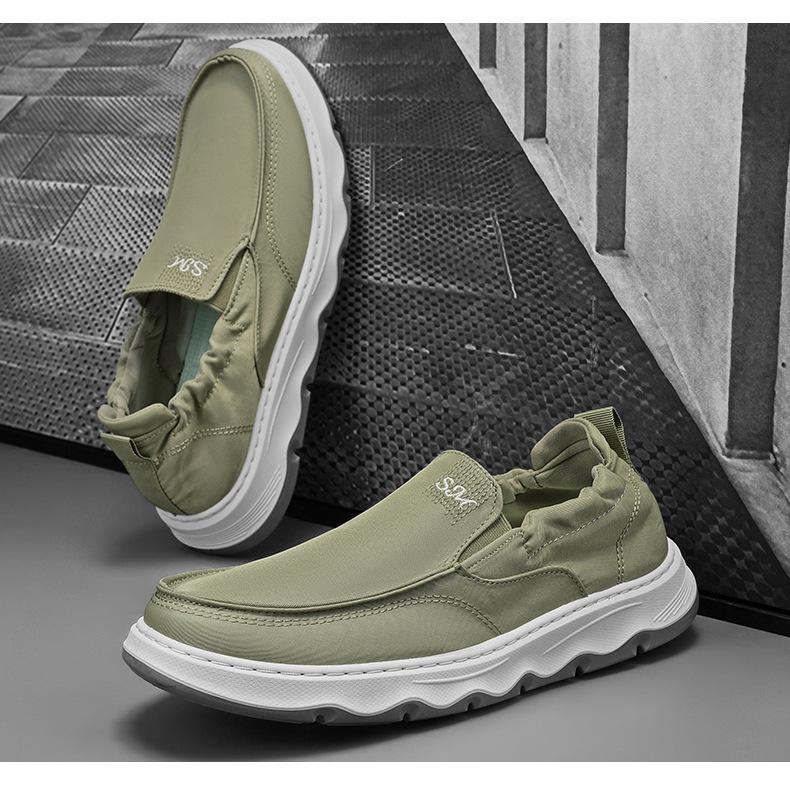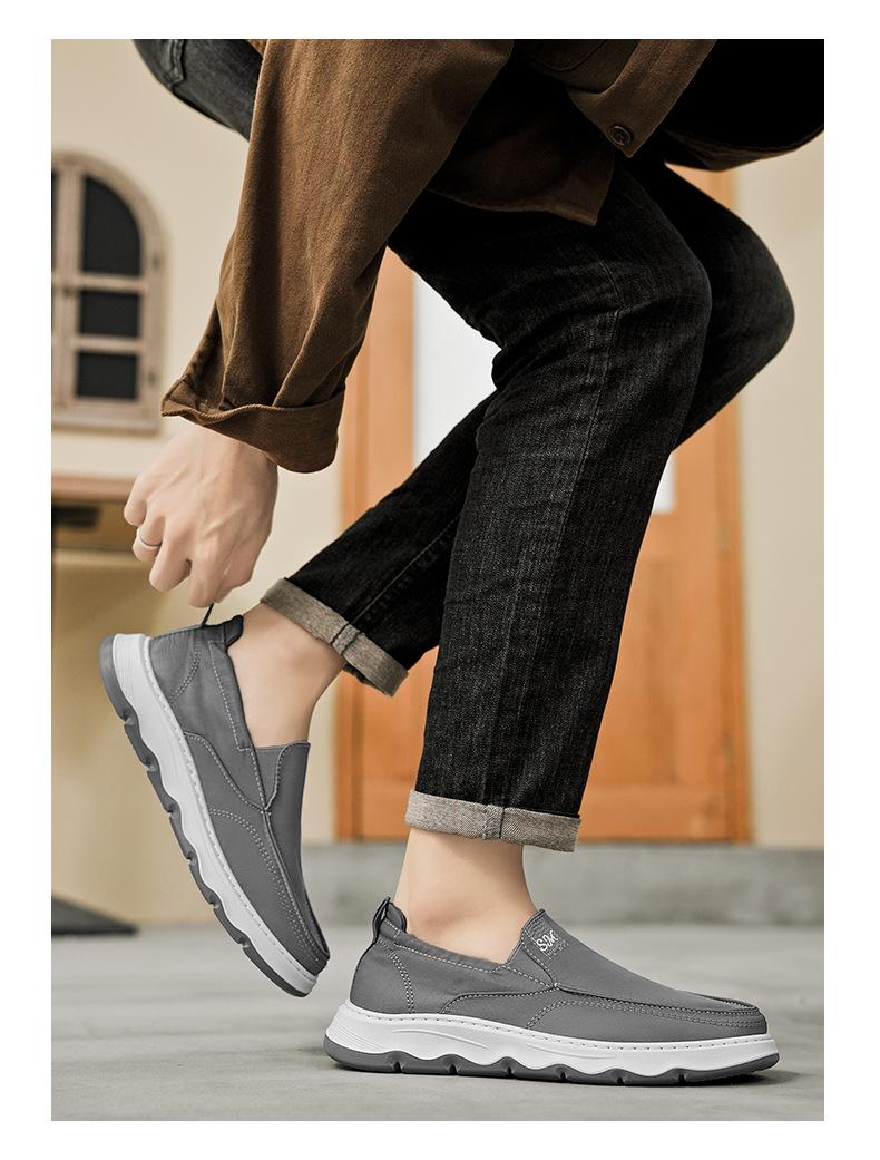 Zapatos de Hombre de Lona de Seda de Hielo Verano Nuevo Estilo Popular Zapatillas Deportivas y de Ocio Slip-On Perezosas Zapatos de Tela de Pekín Antiguo