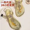 Sandalias Doradas con Pedrería de Venta Caliente Africana para Mujer, Chanclas de Verano, Zapatos Planos Resistentes con Pedrería Que No Se Caen, Directo de Fábrica