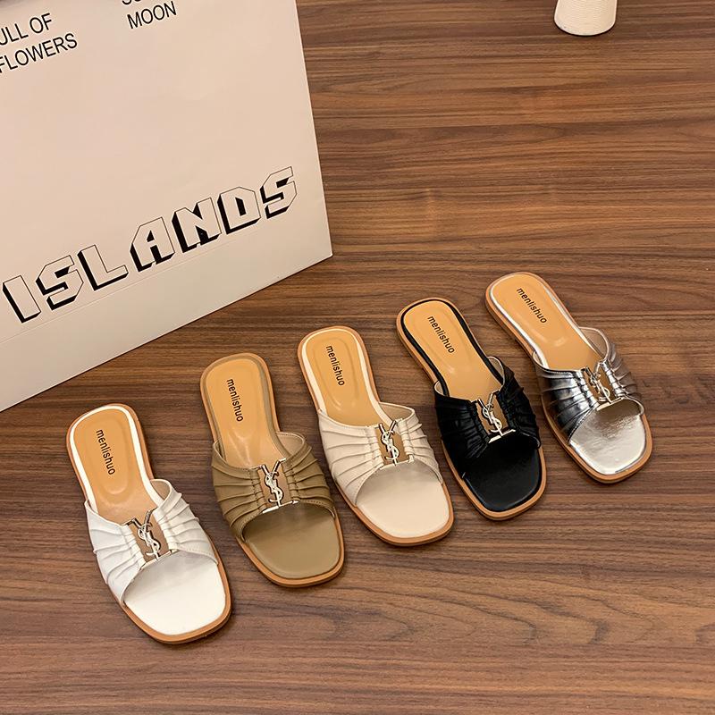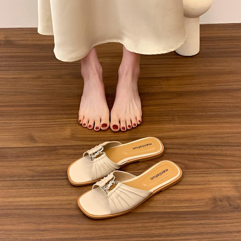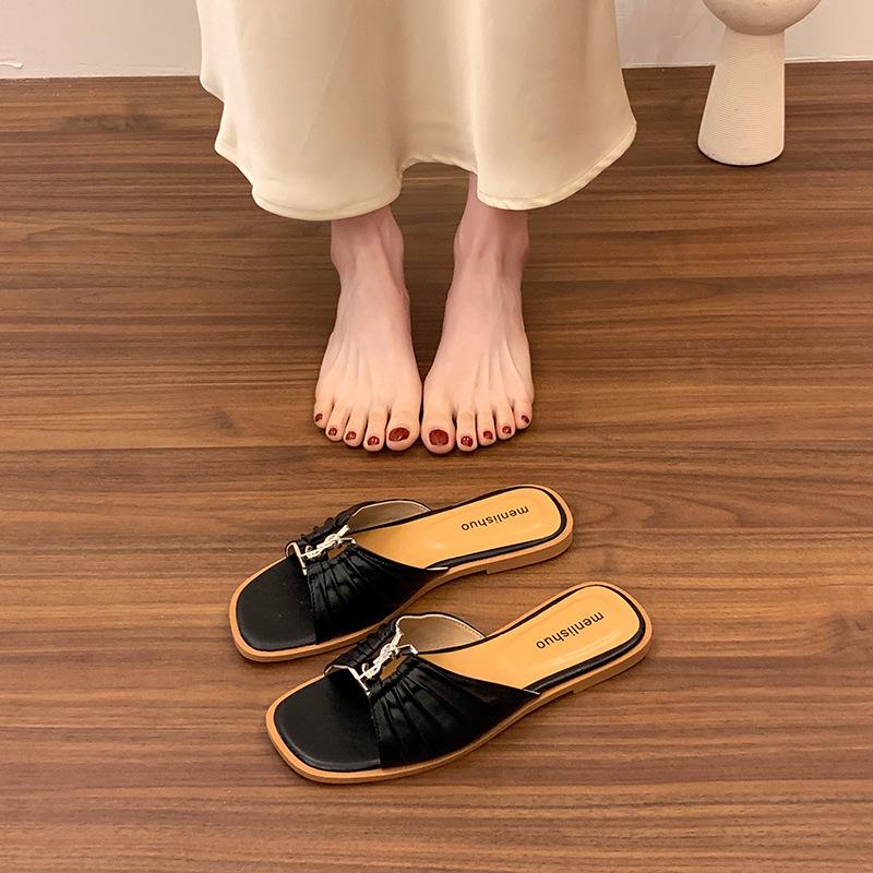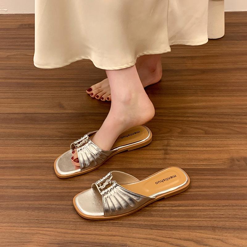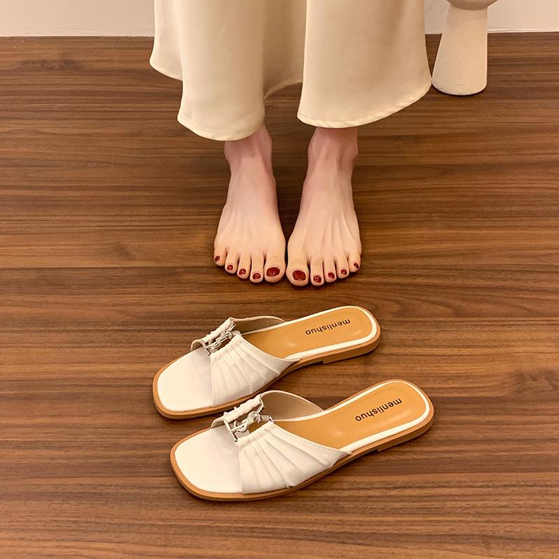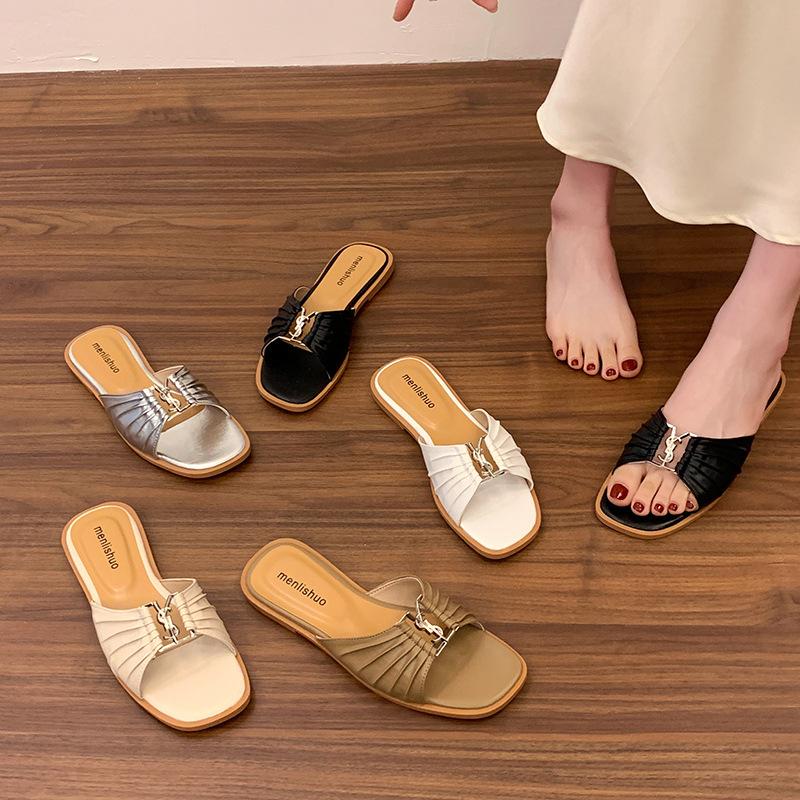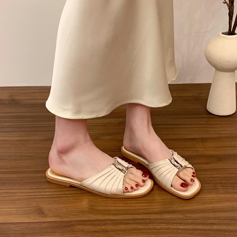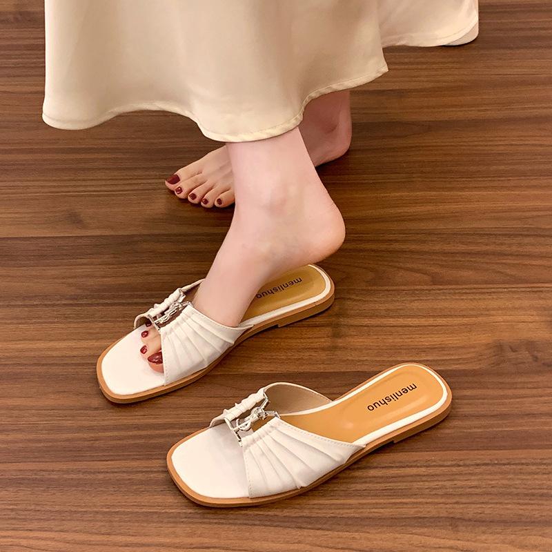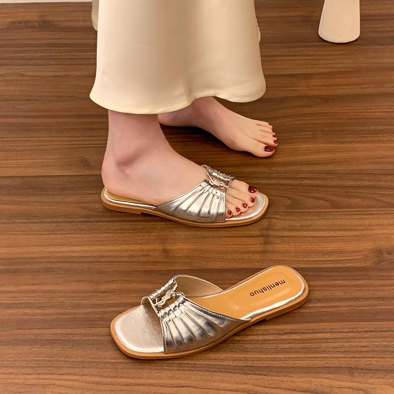 Sandalias planas de verano 2025 de moda para mujer, elegantes y versátiles para uso en exteriores