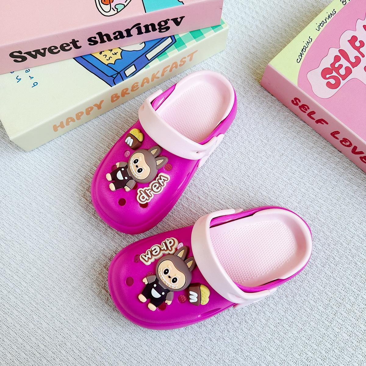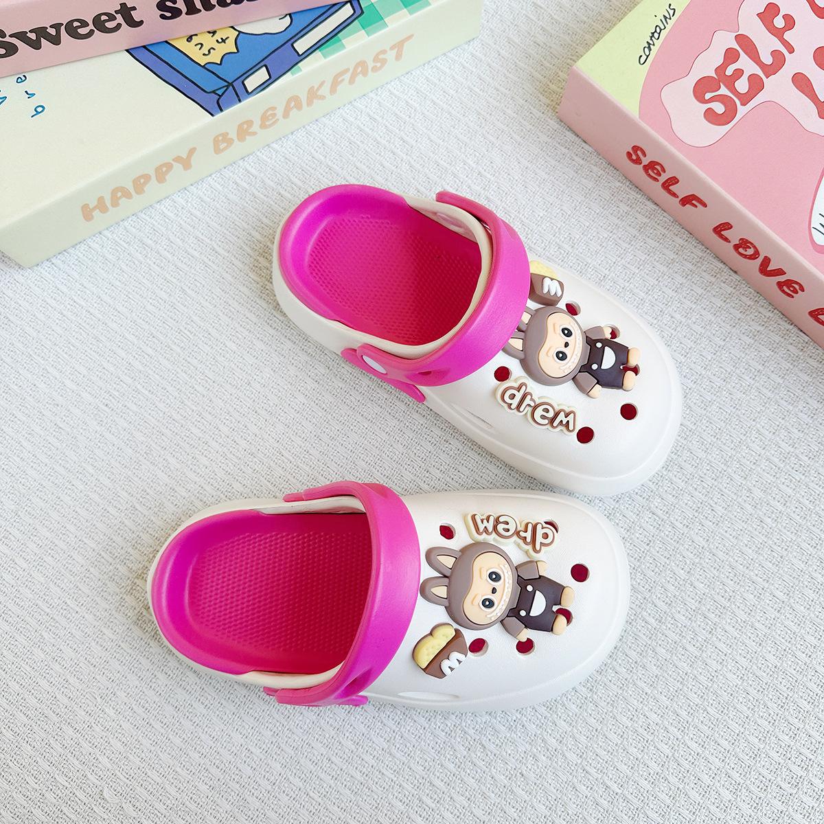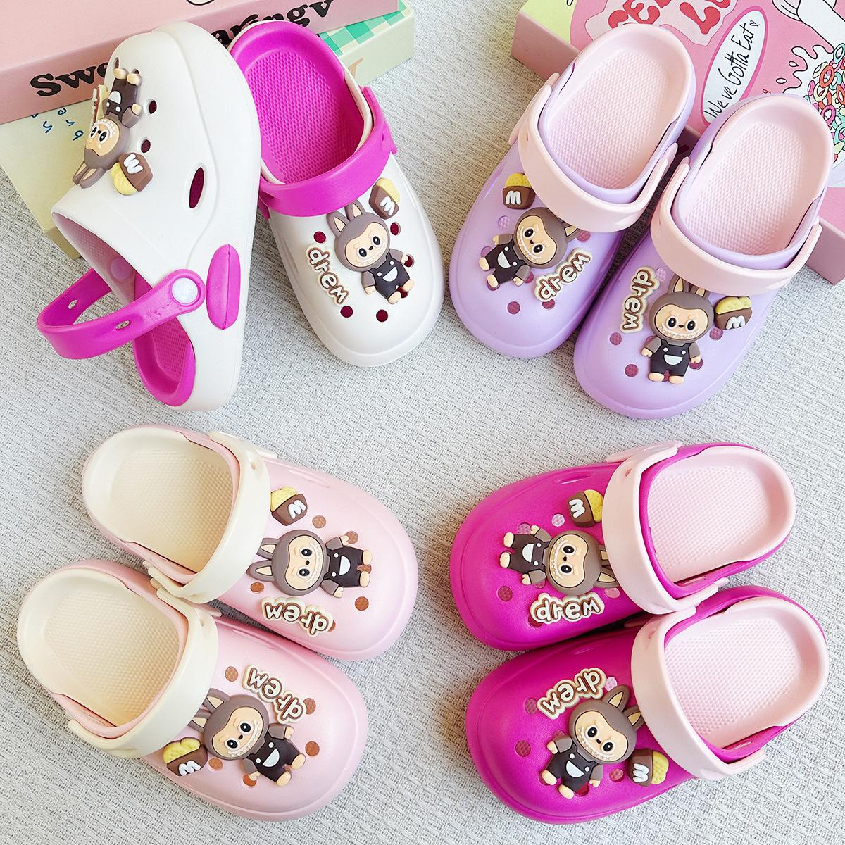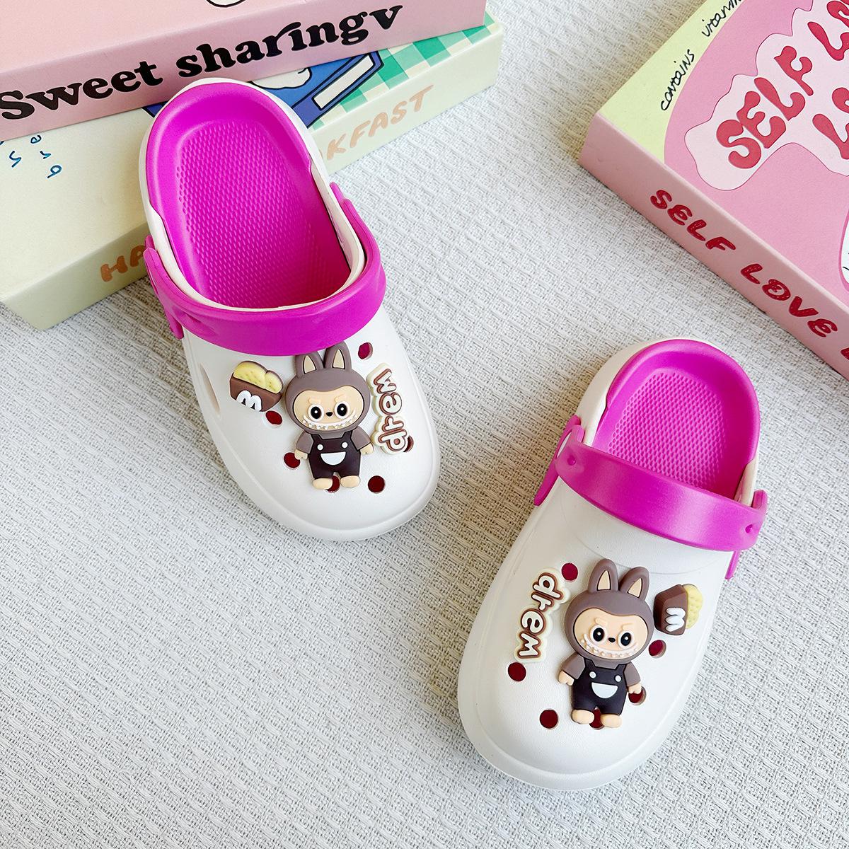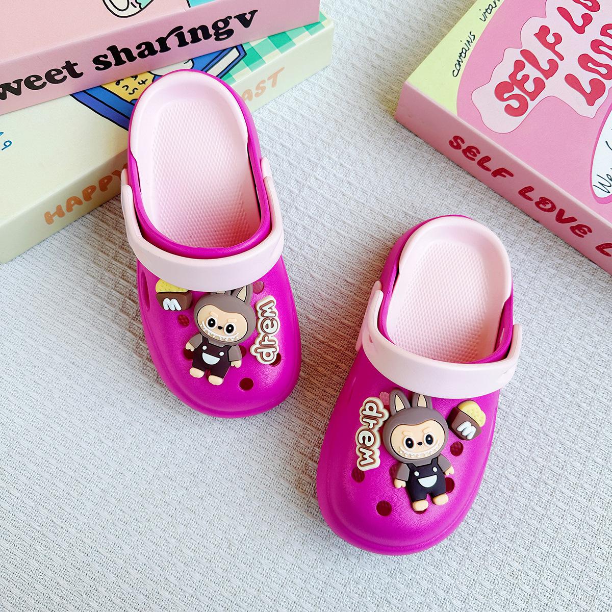 Nuevas Pantuflas para Niñas Dibujos Animados Letra Rab Tela Doble Color Combinación con Todo Zapatos con Agujeros Suela Suave Antideslizante Sandalias de Dedo