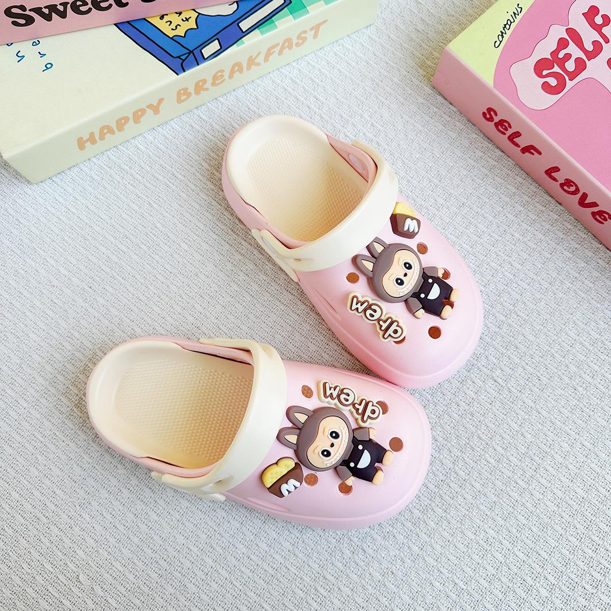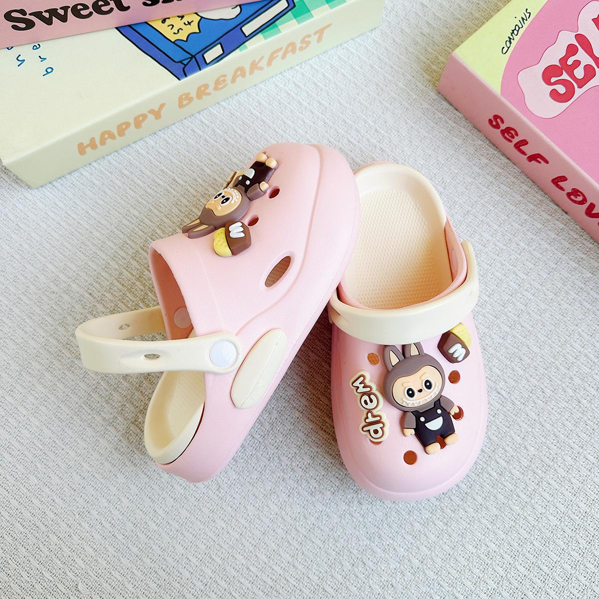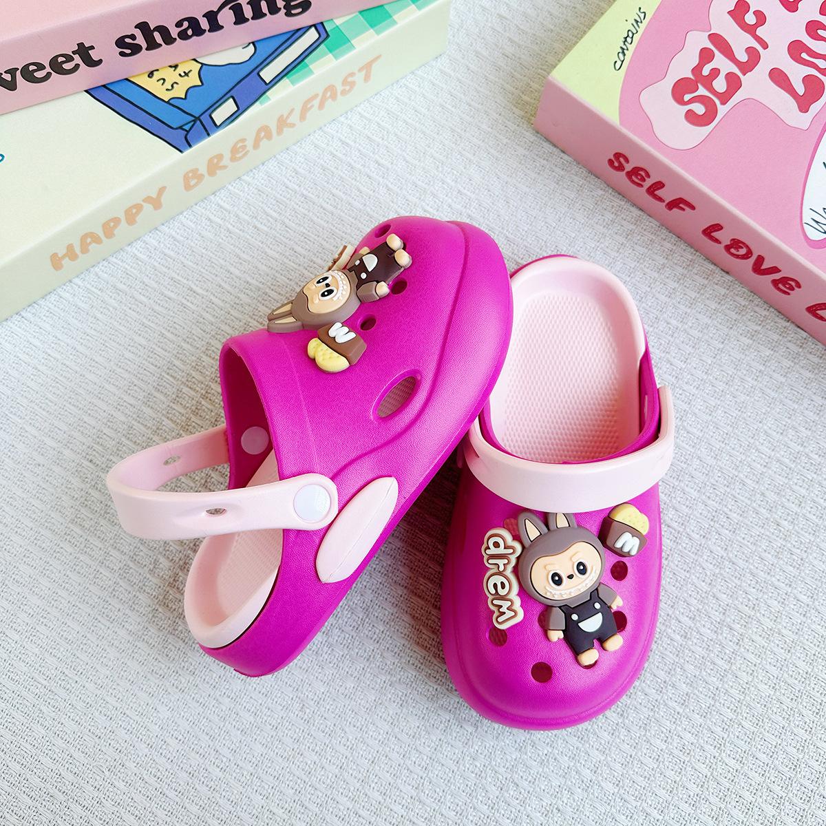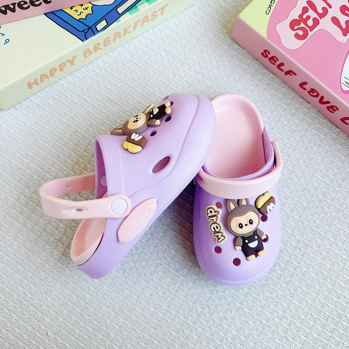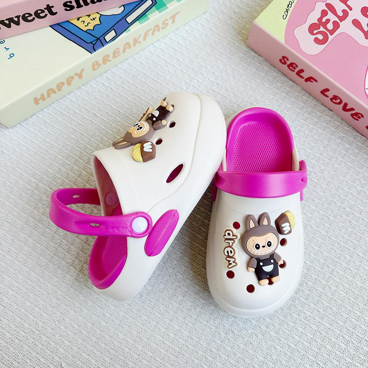 Nuevas Pantuflas para Niñas Dibujos Animados Letra Rab Tela Doble Color Combinación con Todo Zapatos con Agujeros Suela Suave Antideslizante Sandalias de Dedo