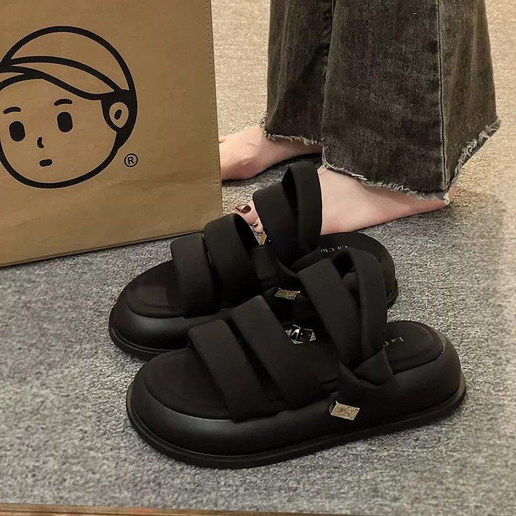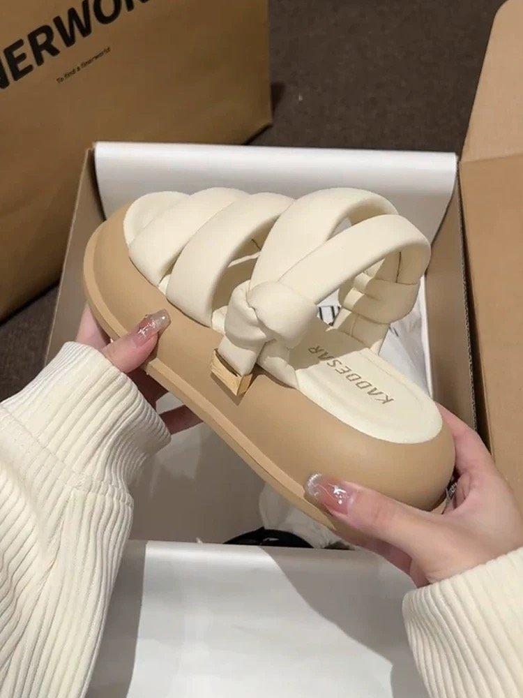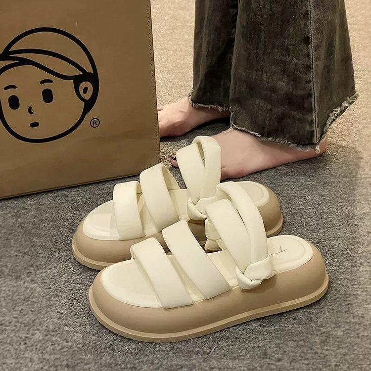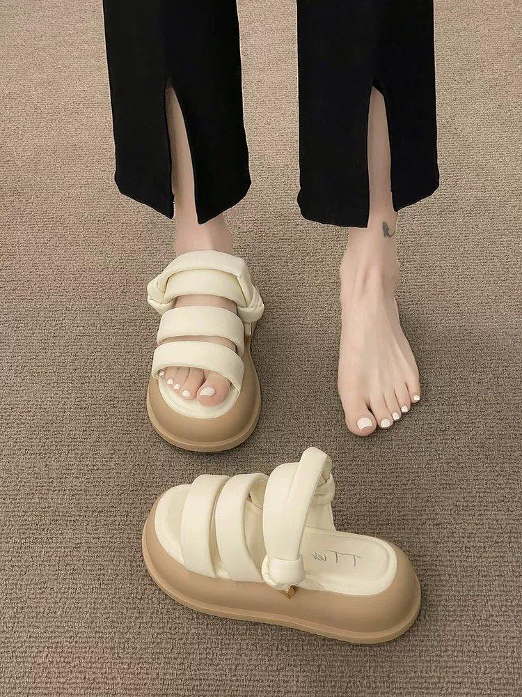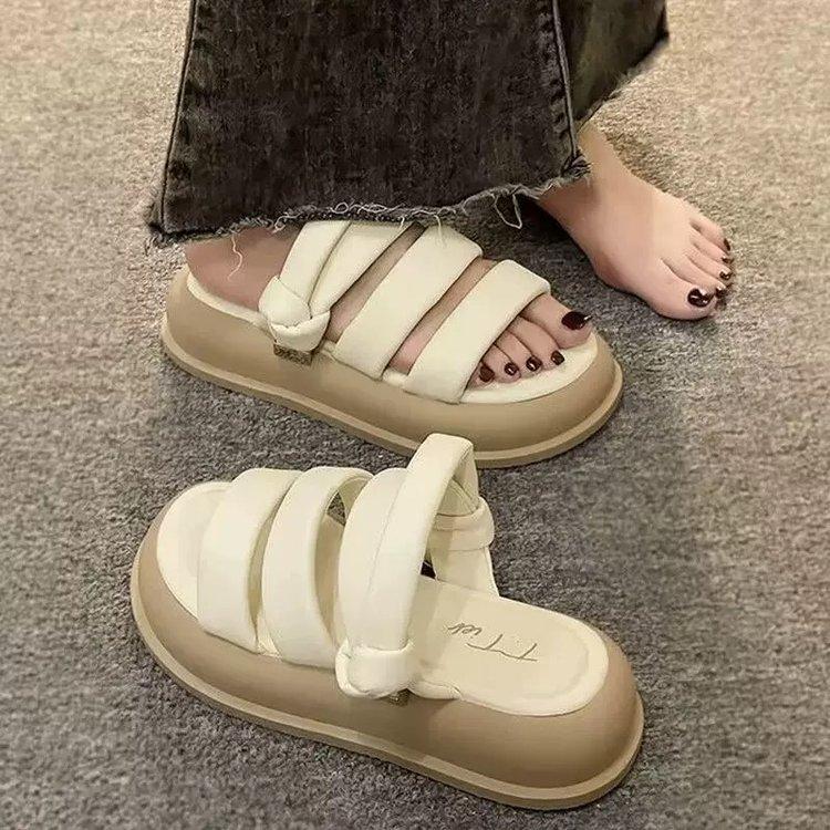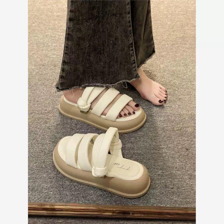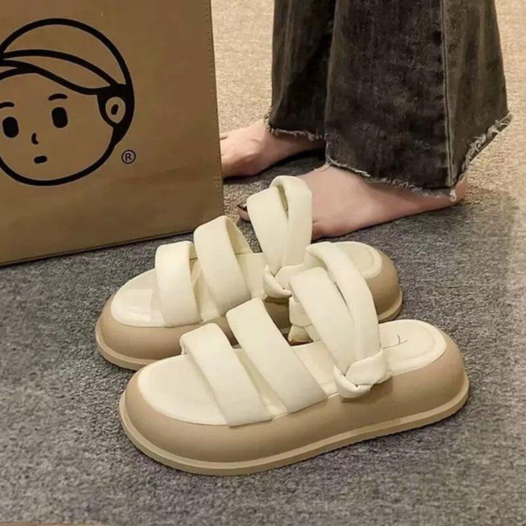 Pantuflas Francesas de Plataforma Alta para Verano para Mujer 2025 Nuevo Nicho Versátil Suela Gruesa Antideslizante Sandalias Romanas de Playa