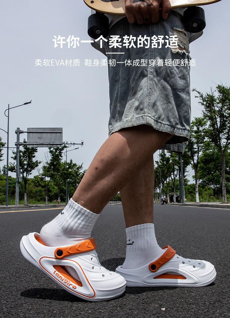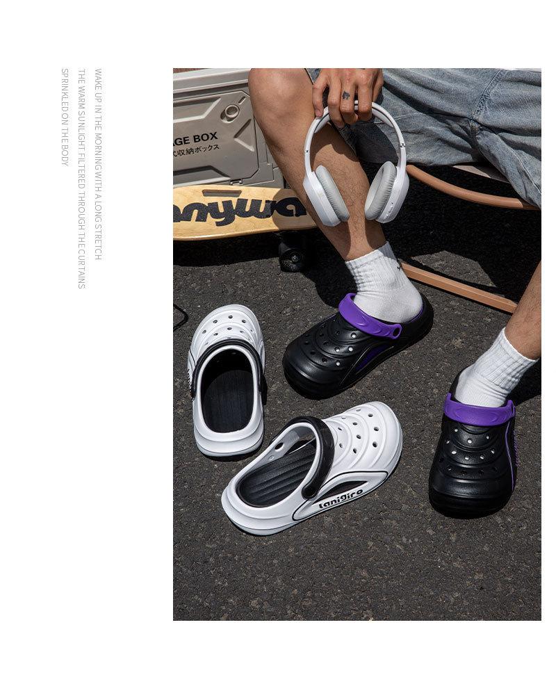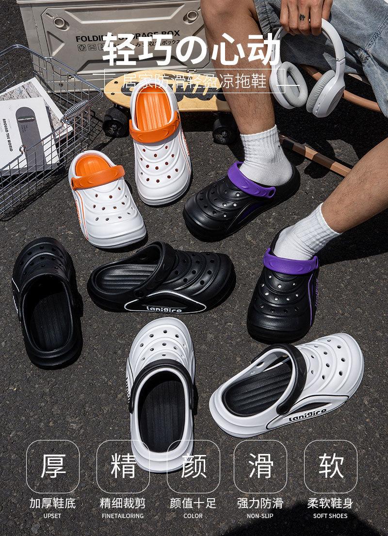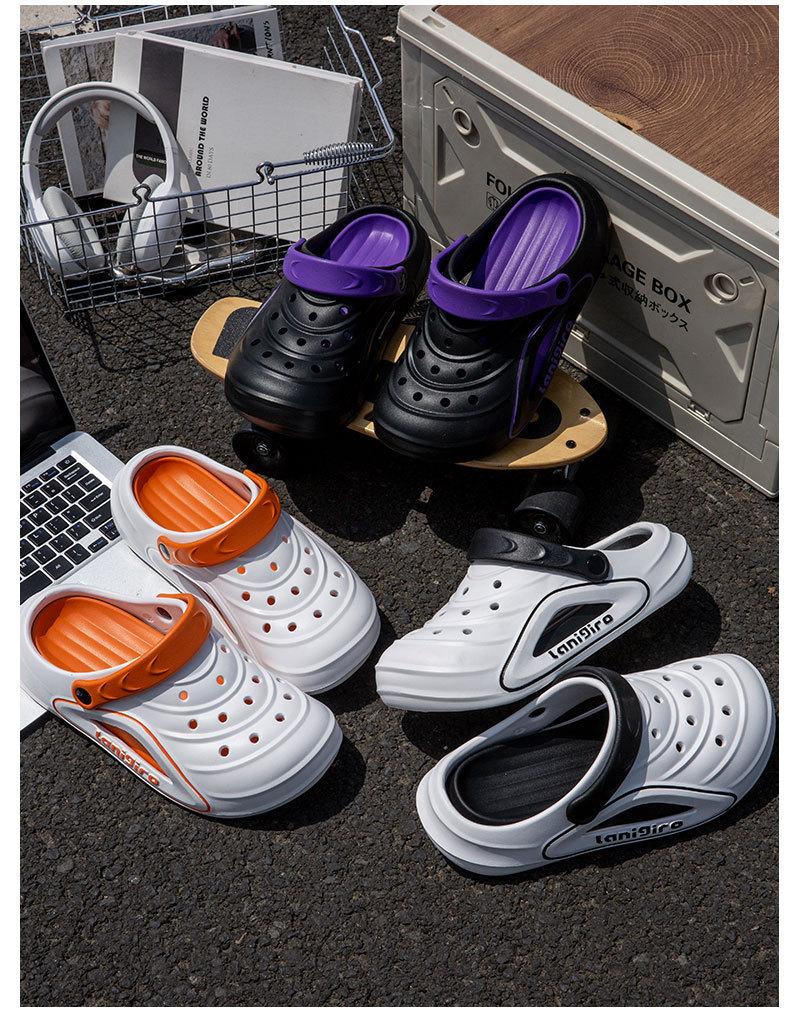 White orange [crocs], White and black [crocs], Black and purple [crocs], All black [crocs], White orange [sand...