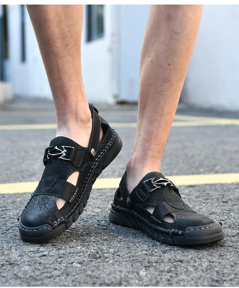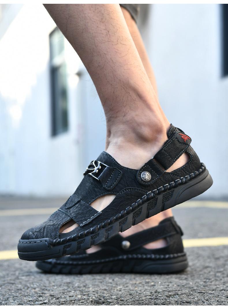 Sandalias de Verano para Hombre 2025 Talla Grande 48 Zapatos Casuales de Moda para Exterior Playa Transpirables de Piel Vacuna Zapatos de Moda