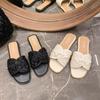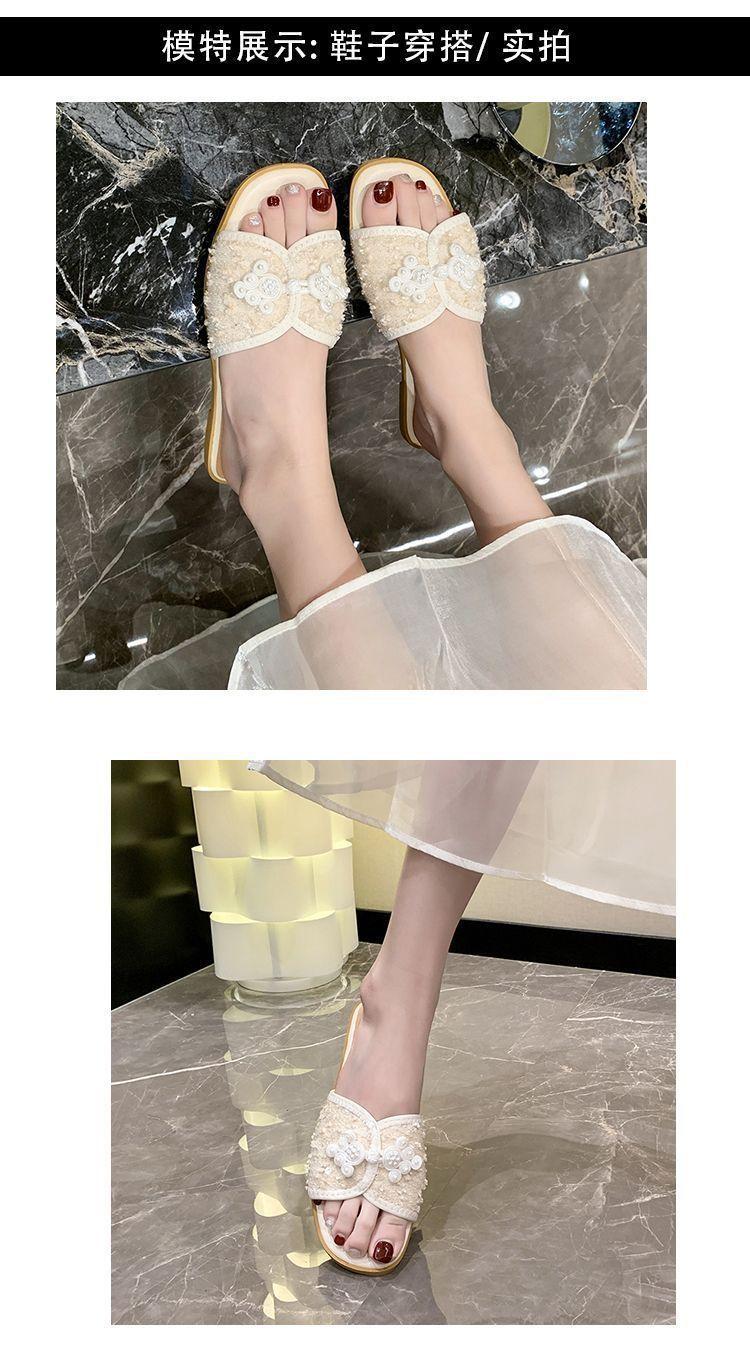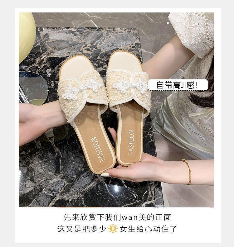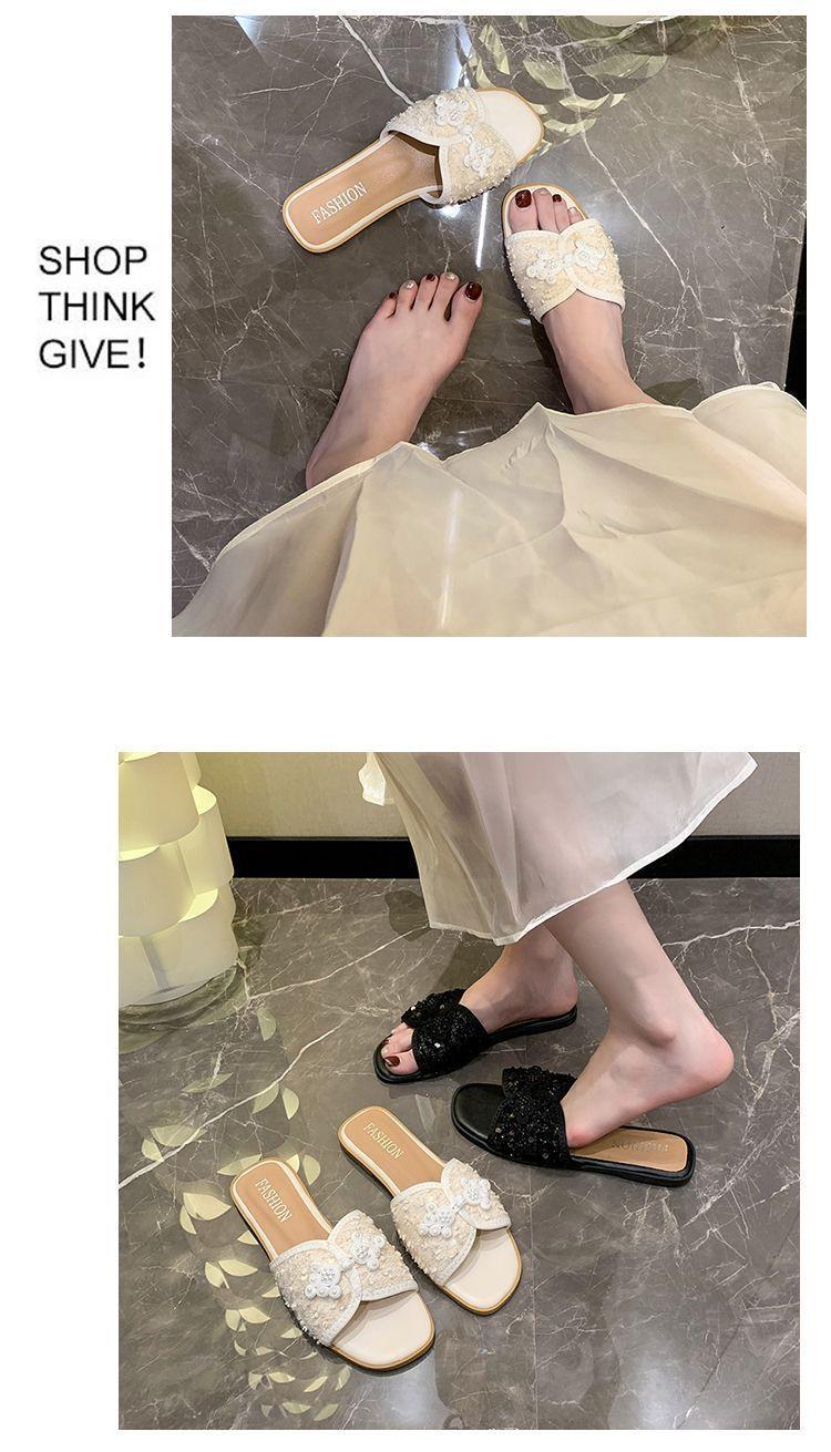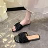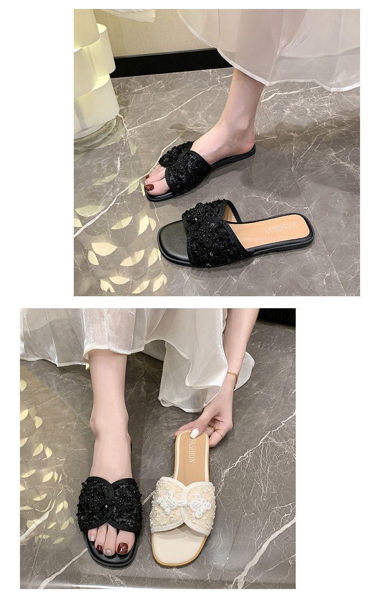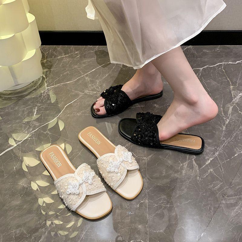 Zapatillas planas de moda con pedrería 2025 Otoño Nuevo Estilo Coreano Versátiles Sandalias planas de perlas