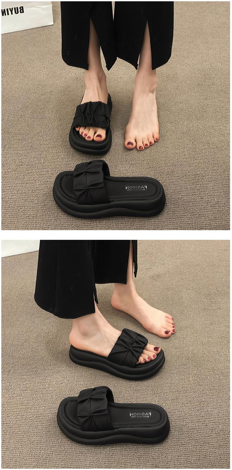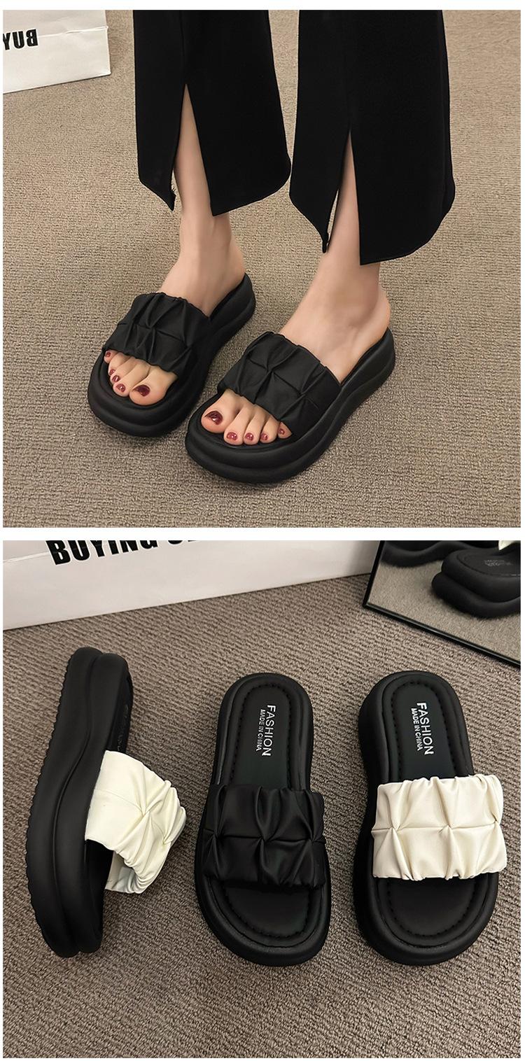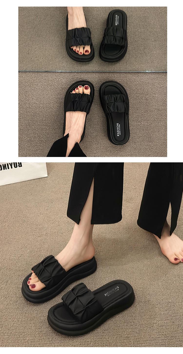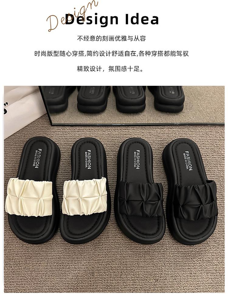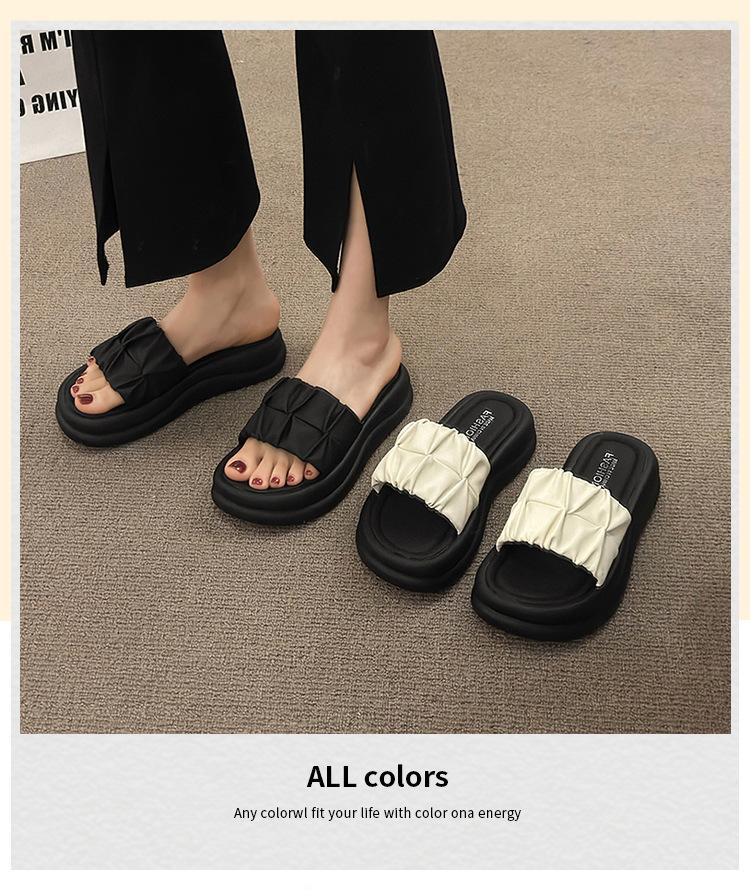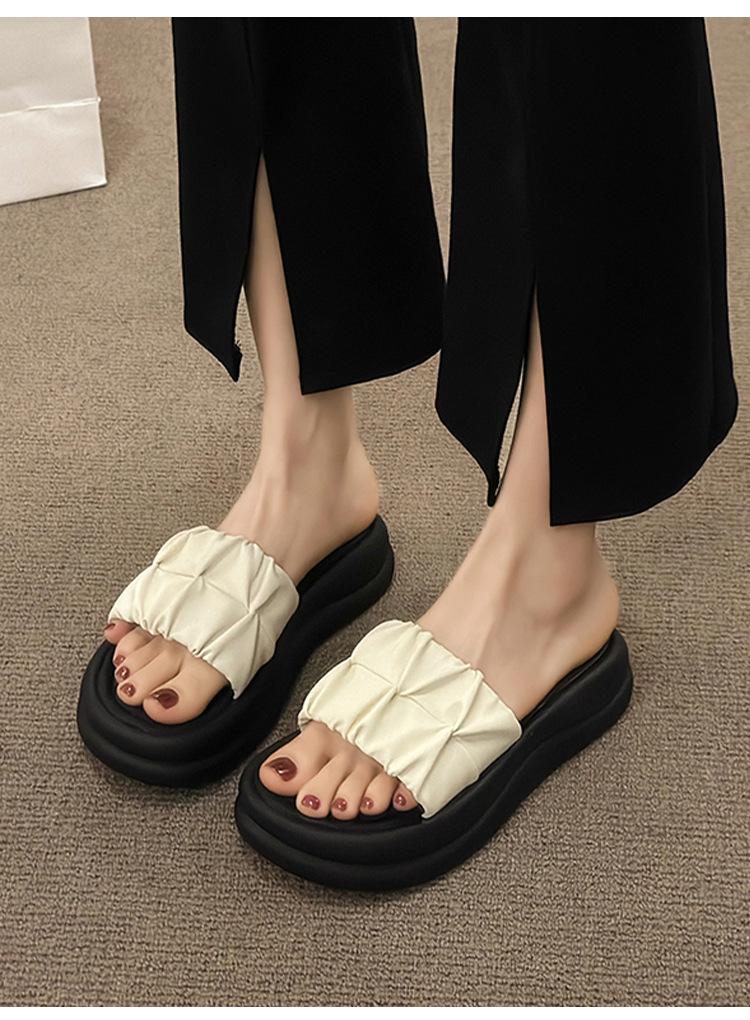 Pantuflas para Verano para Mujer para Exterior 2025 Nueva Moda Sandalias de Plataforma de Suela Gruesa Celebridad de Internet Súper Populares Pantuflas de Playa Plisadas