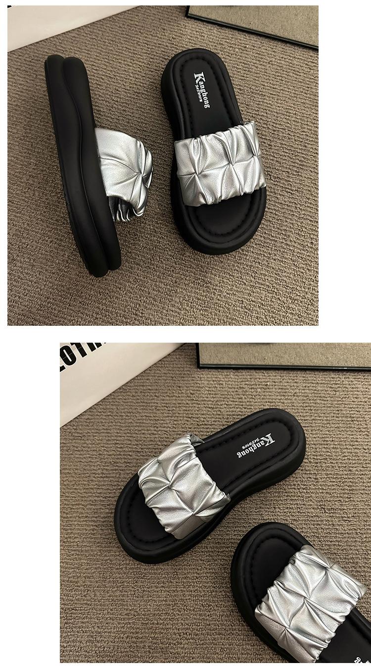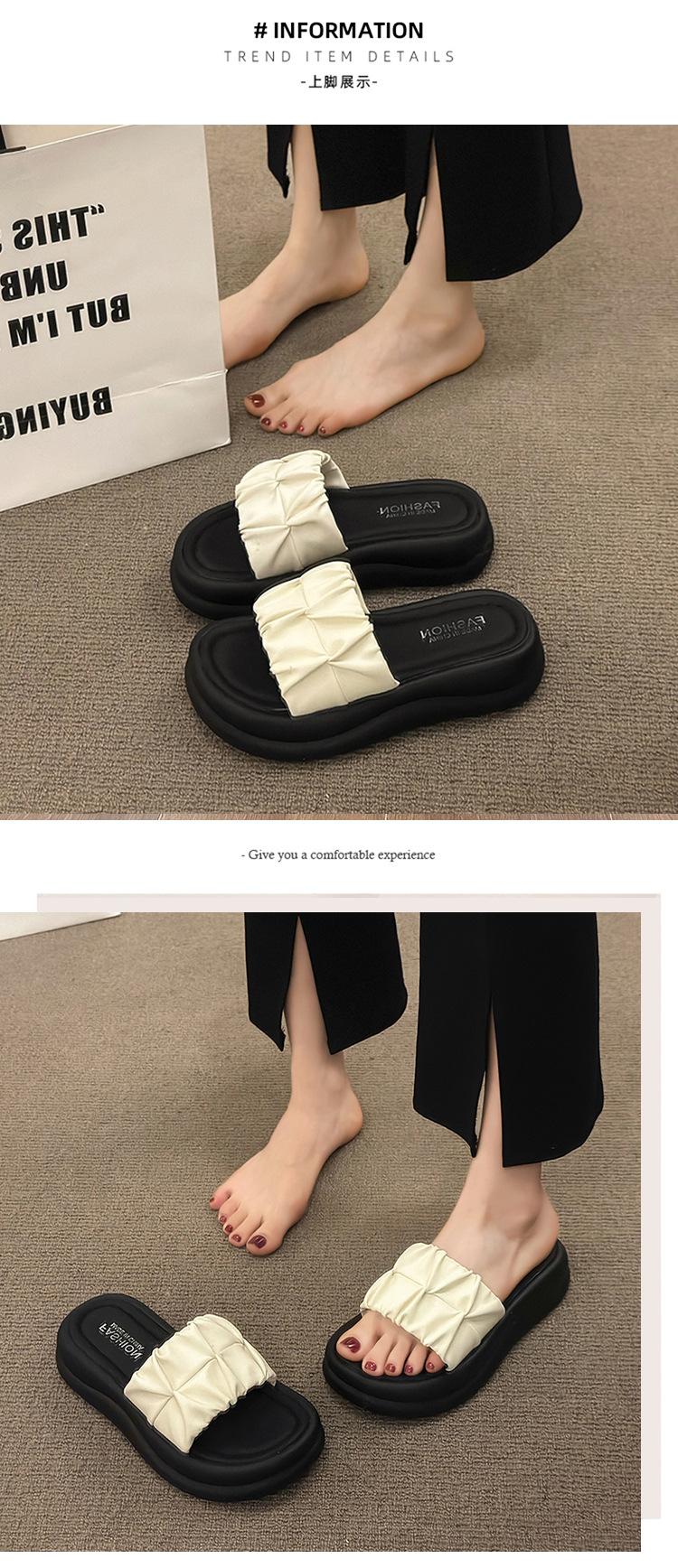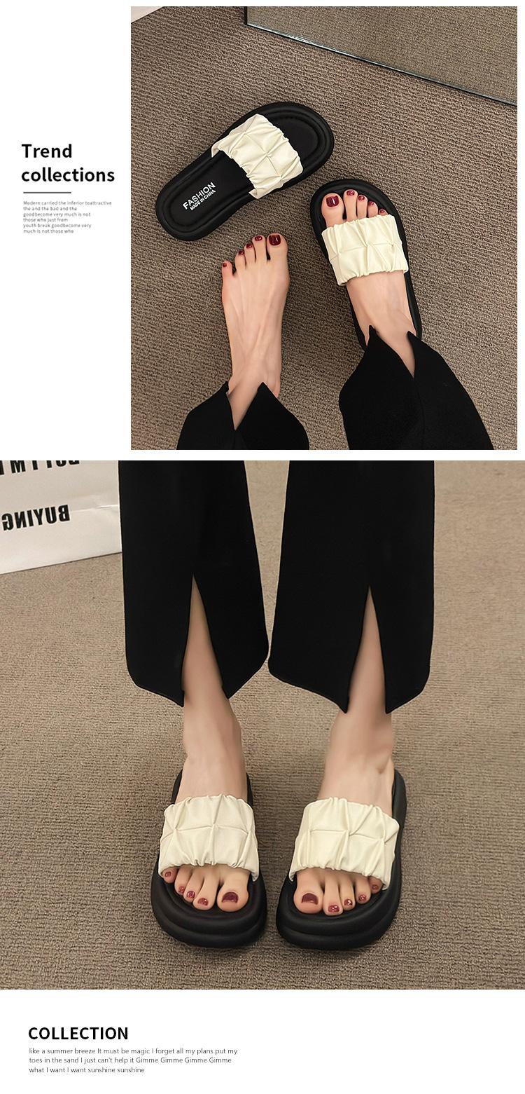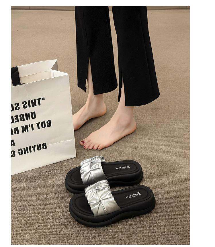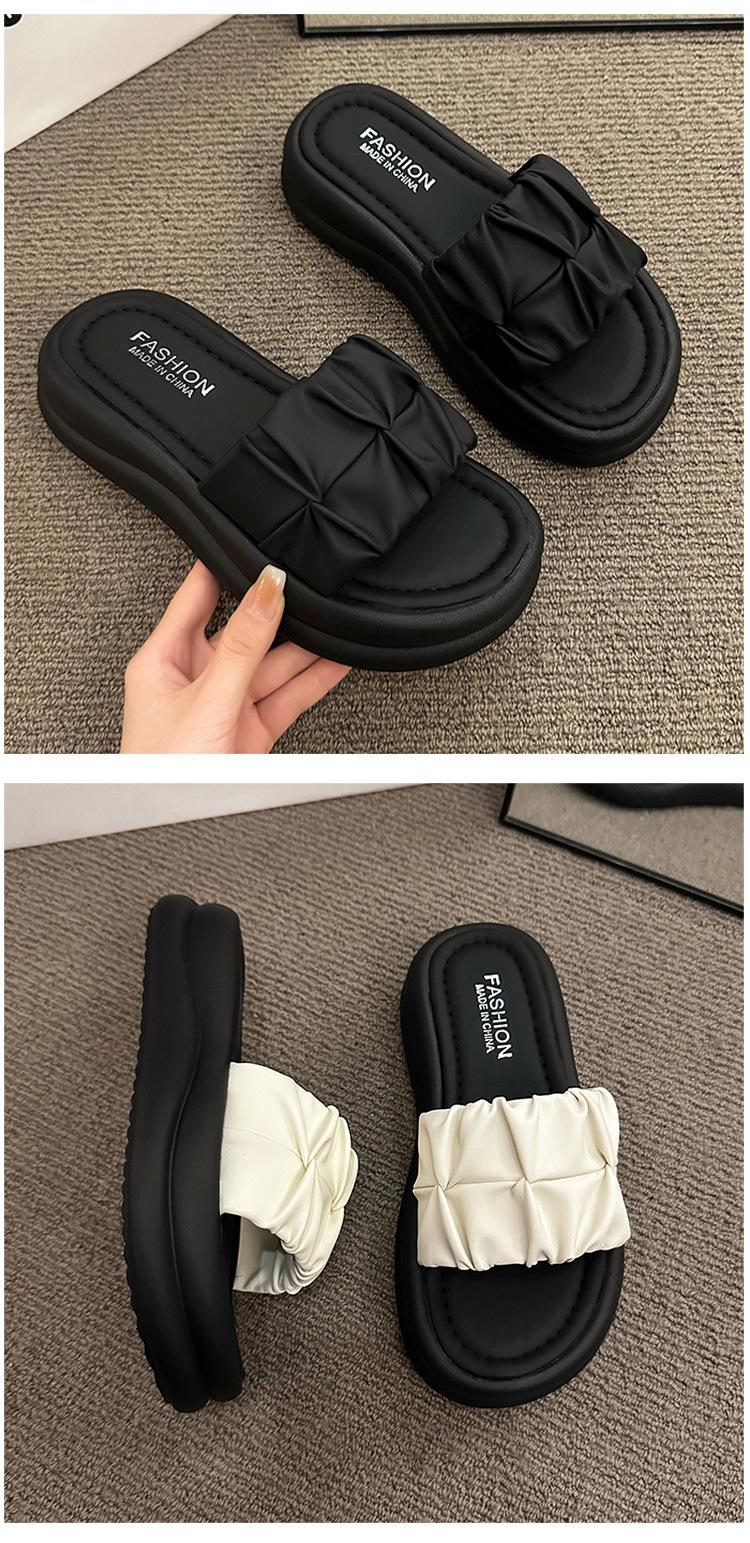 Pantuflas para Verano para Mujer para Exterior 2025 Nueva Moda Sandalias de Plataforma de Suela Gruesa Celebridad de Internet Súper Populares Pantuflas de Playa Plisadas