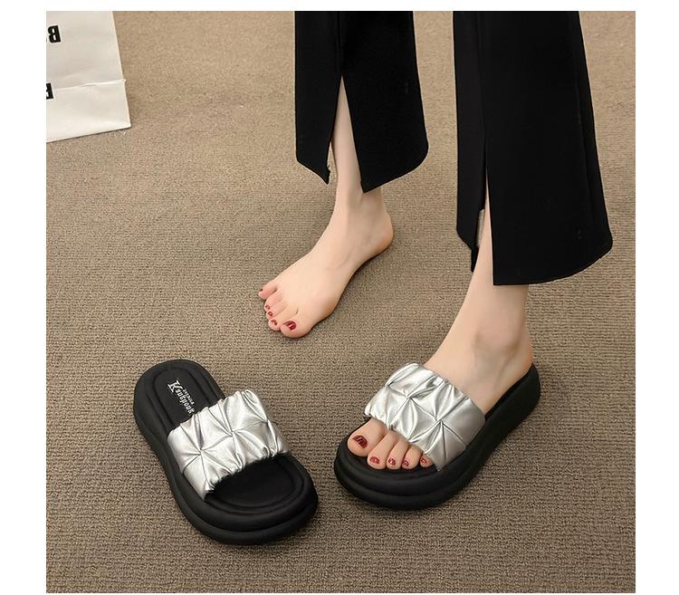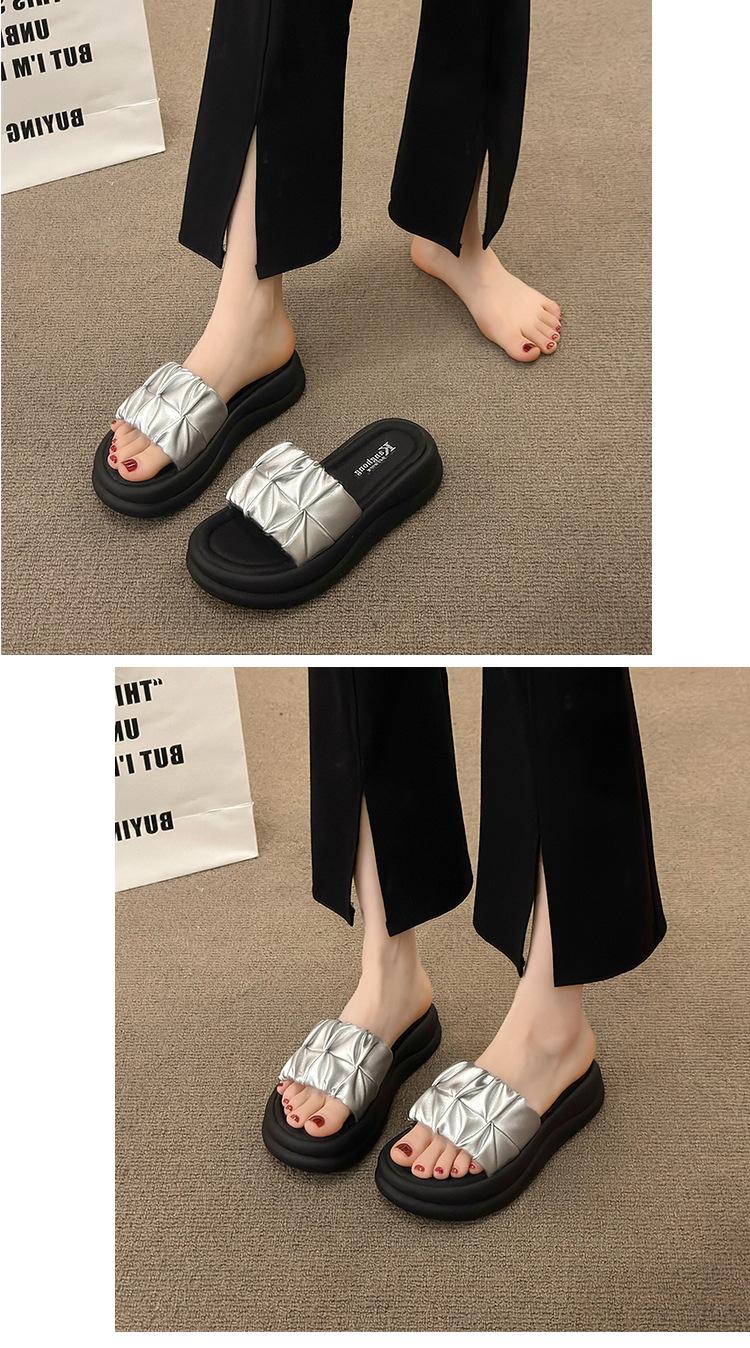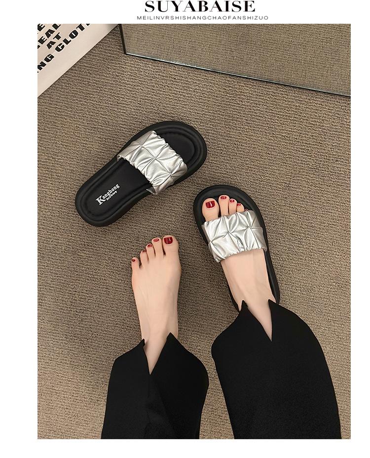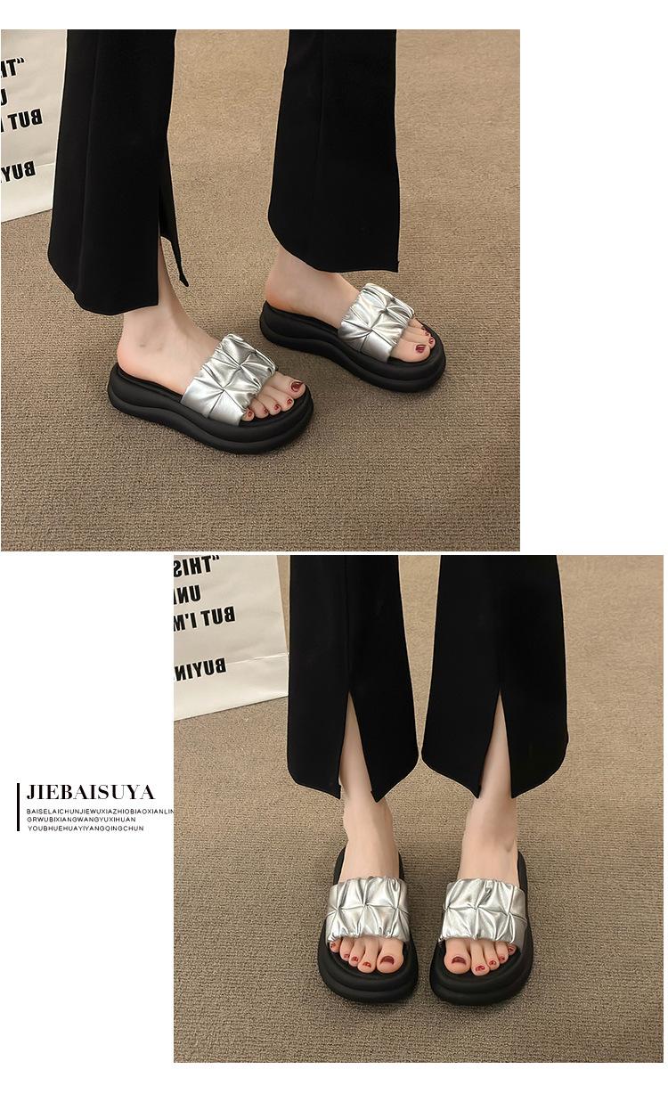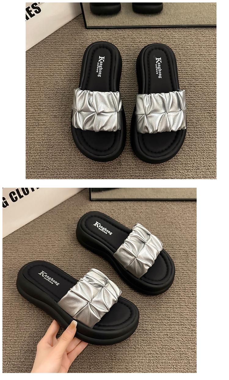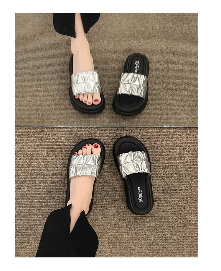 Pantuflas para Verano para Mujer para Exterior 2025 Nueva Moda Sandalias de Plataforma de Suela Gruesa Celebridad de Internet Súper Populares Pantuflas de Playa Plisadas