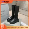 Botas de Suela Gruesa Moda Femenina de Tacón Alto con Manga Punta Redonda 2024 Otoño e Invierno Nuevas Botas de Caballero por Encima de la Rodilla de Tacón Grueso
