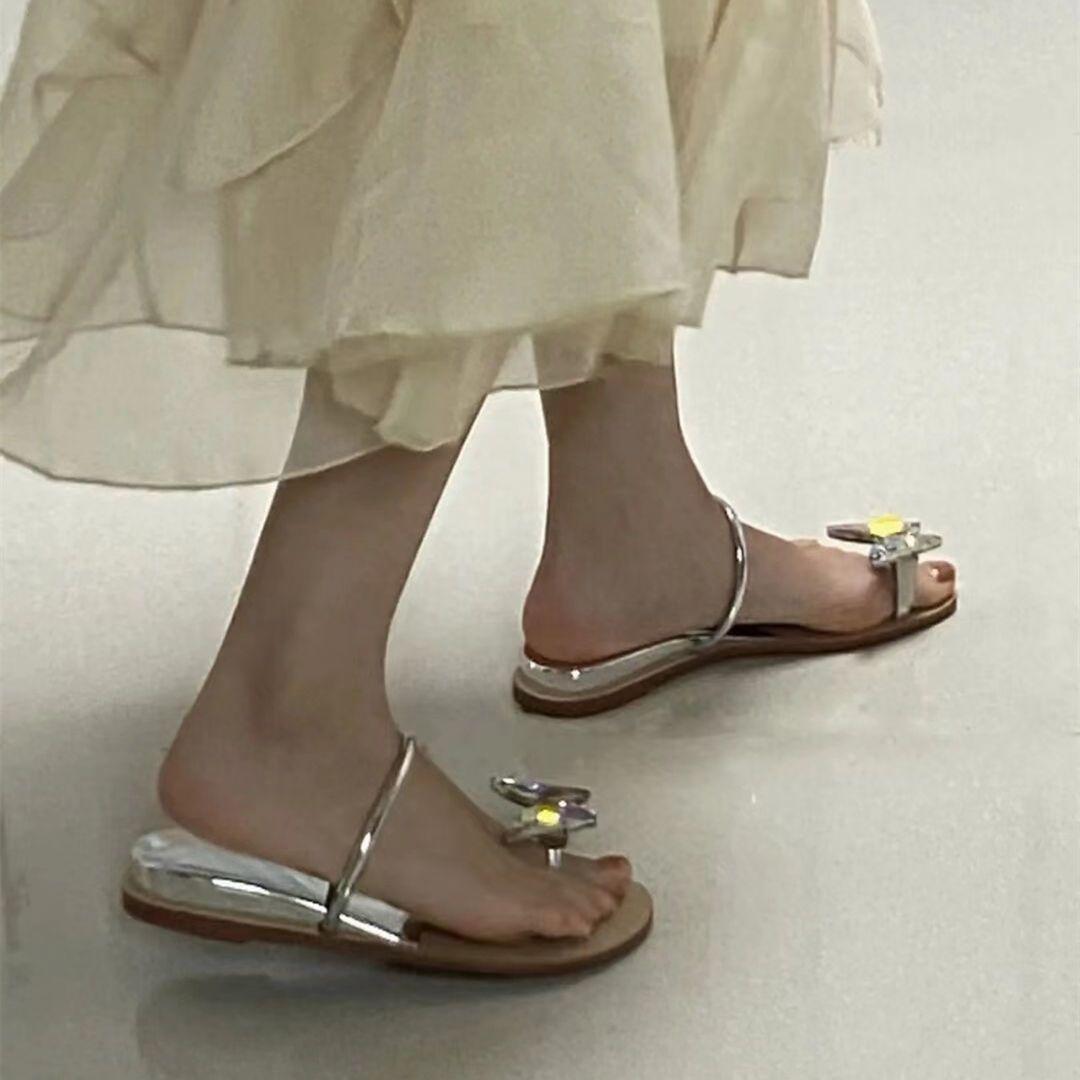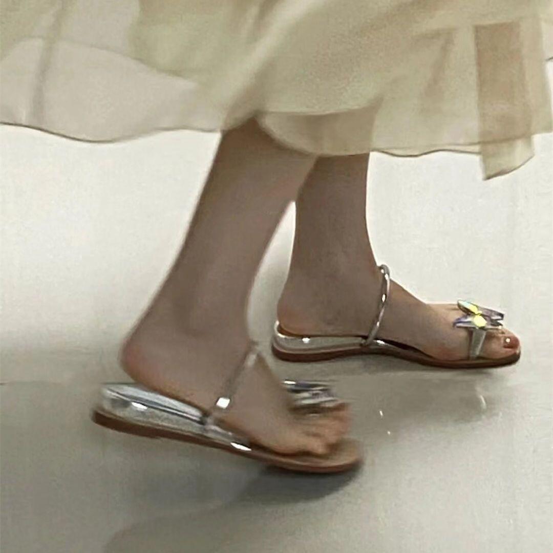 Sandalias planas con mariposas y diamantes de imitación para mujer, novedad de verano 2023, diseño francés de hadas.