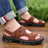 Sandalias de piel de vacuno sintética para hombre, verano 2025, antideslizantes, impermeables, para uso exterior, sandalias para hombre, sandalias de doble uso.
