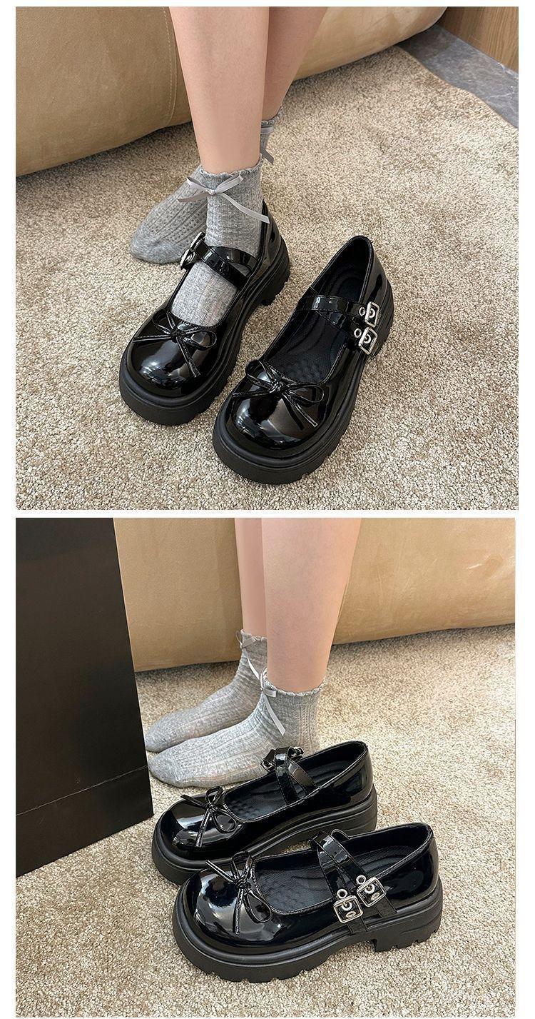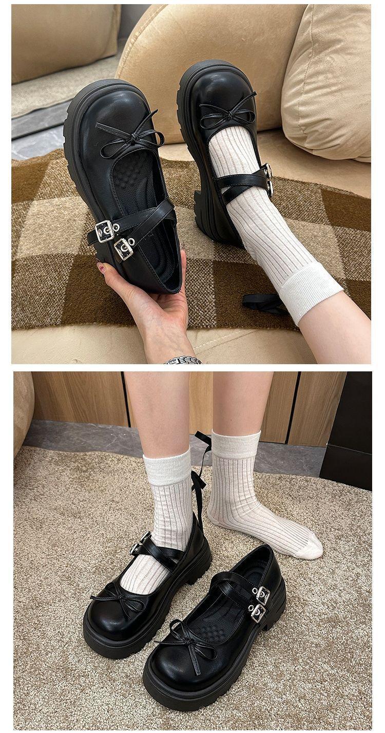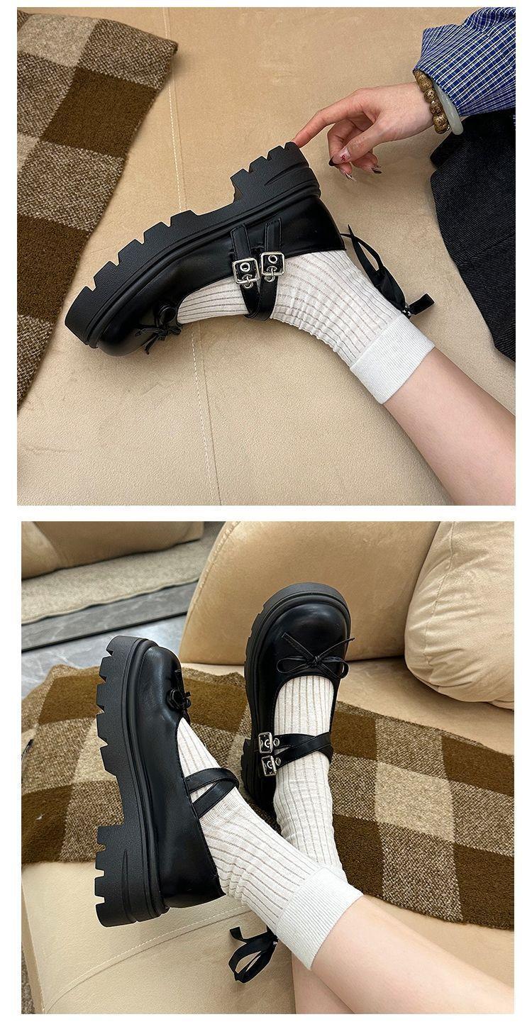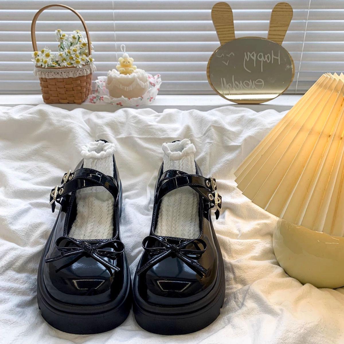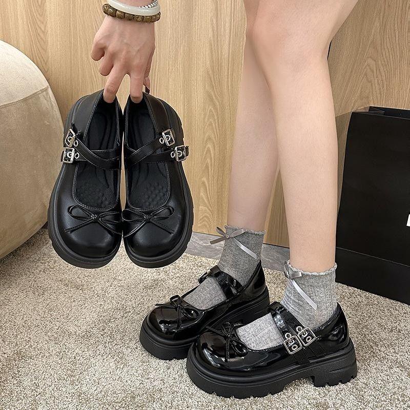 Zapatos de Cuero Pequeños de Suela Gruesa con Lazo Jk para Mujer 2024 Invierno Nuevo Estilo Mary Jane Retro Estilo Japonés con Falda Flats