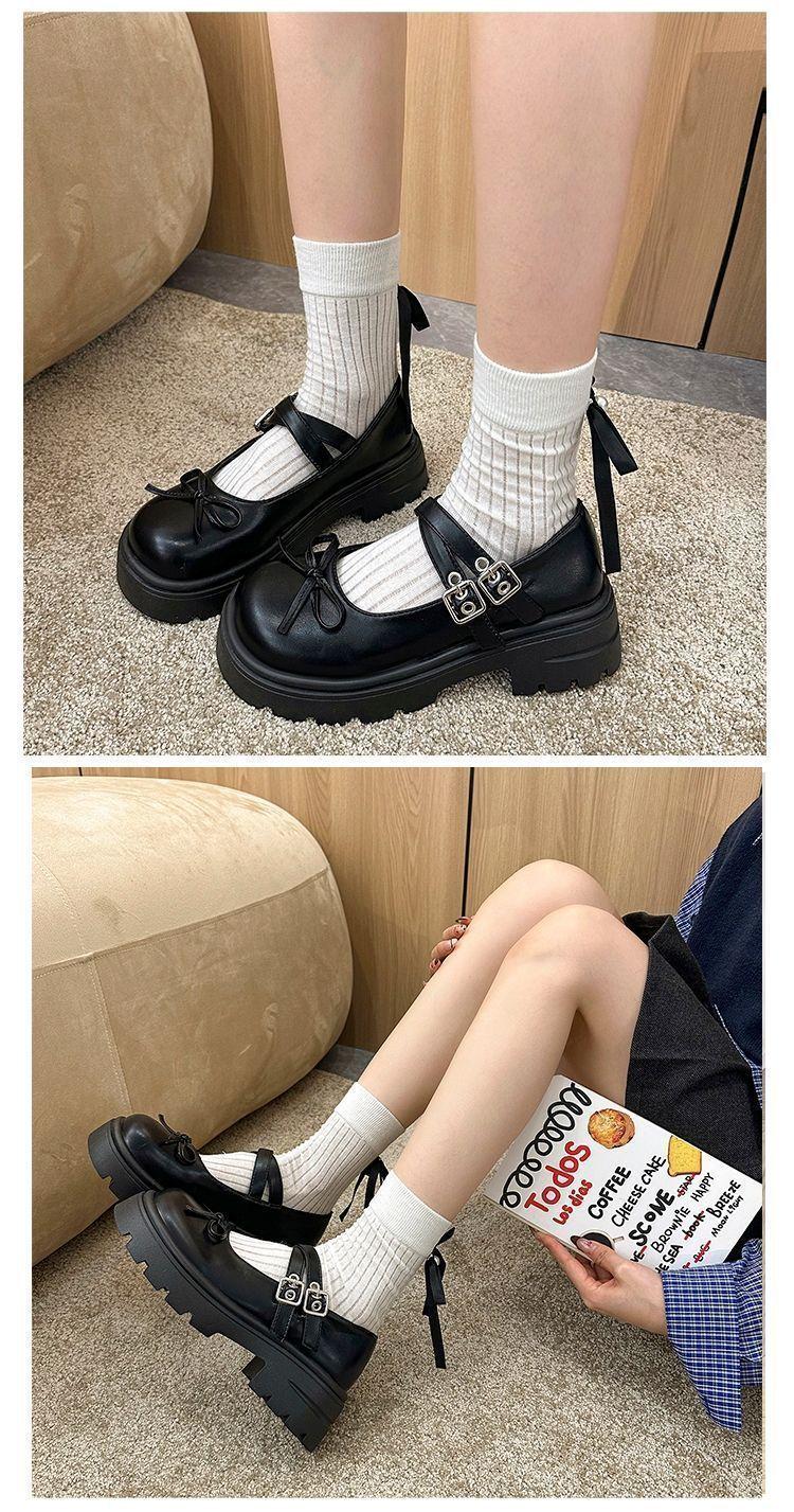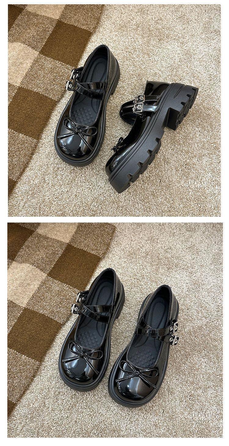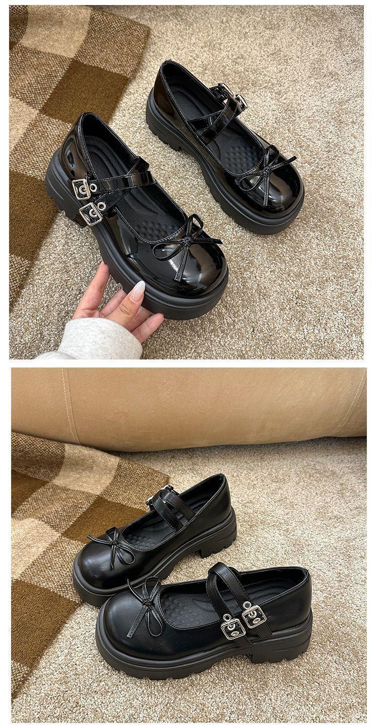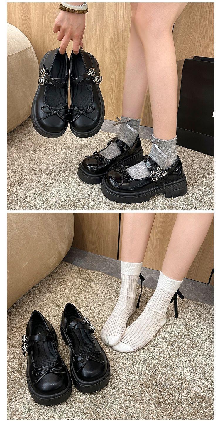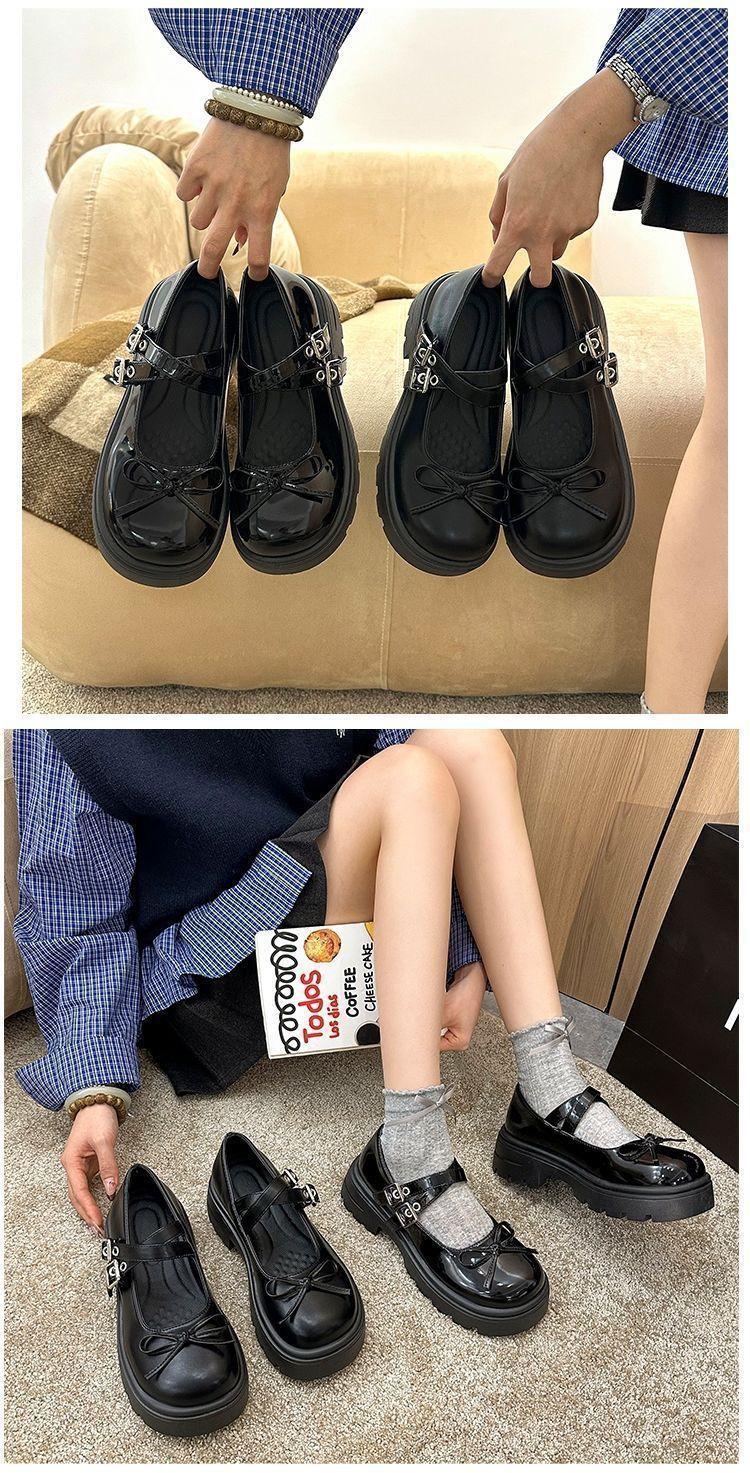 Zapatos de Cuero Pequeños de Suela Gruesa con Lazo Jk para Mujer 2024 Invierno Nuevo Estilo Mary Jane Retro Estilo Japonés con Falda Flats