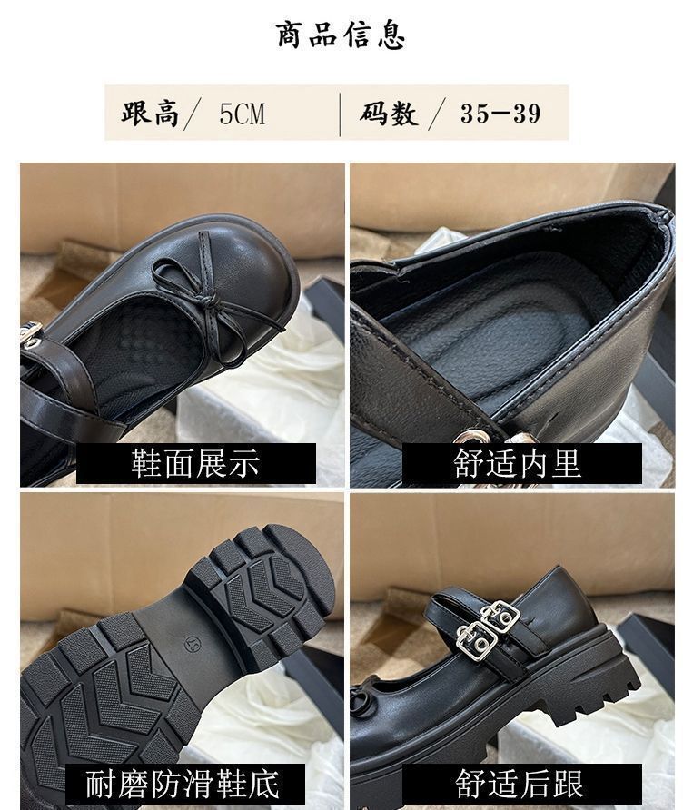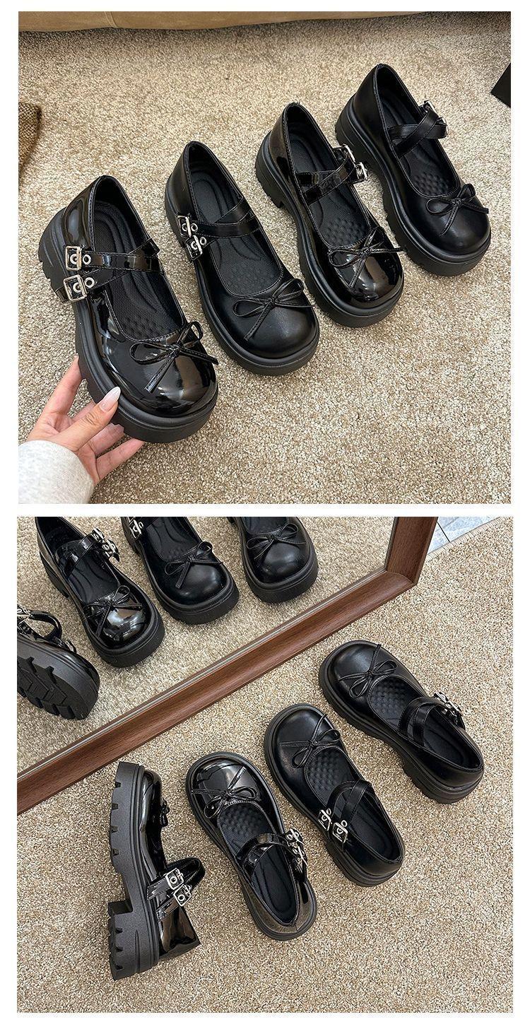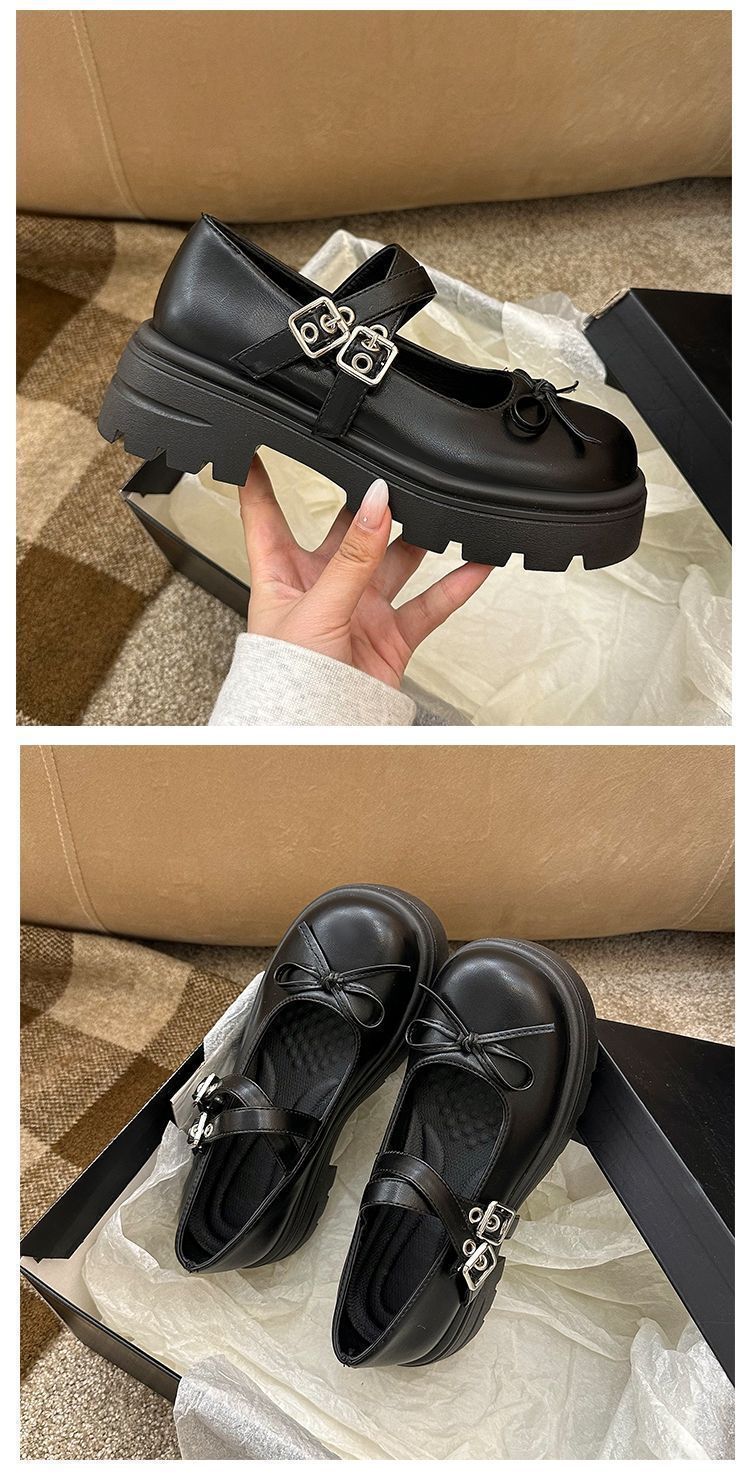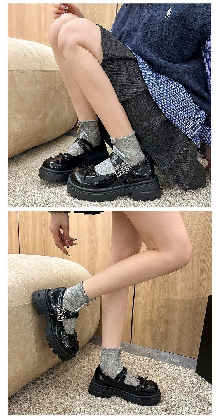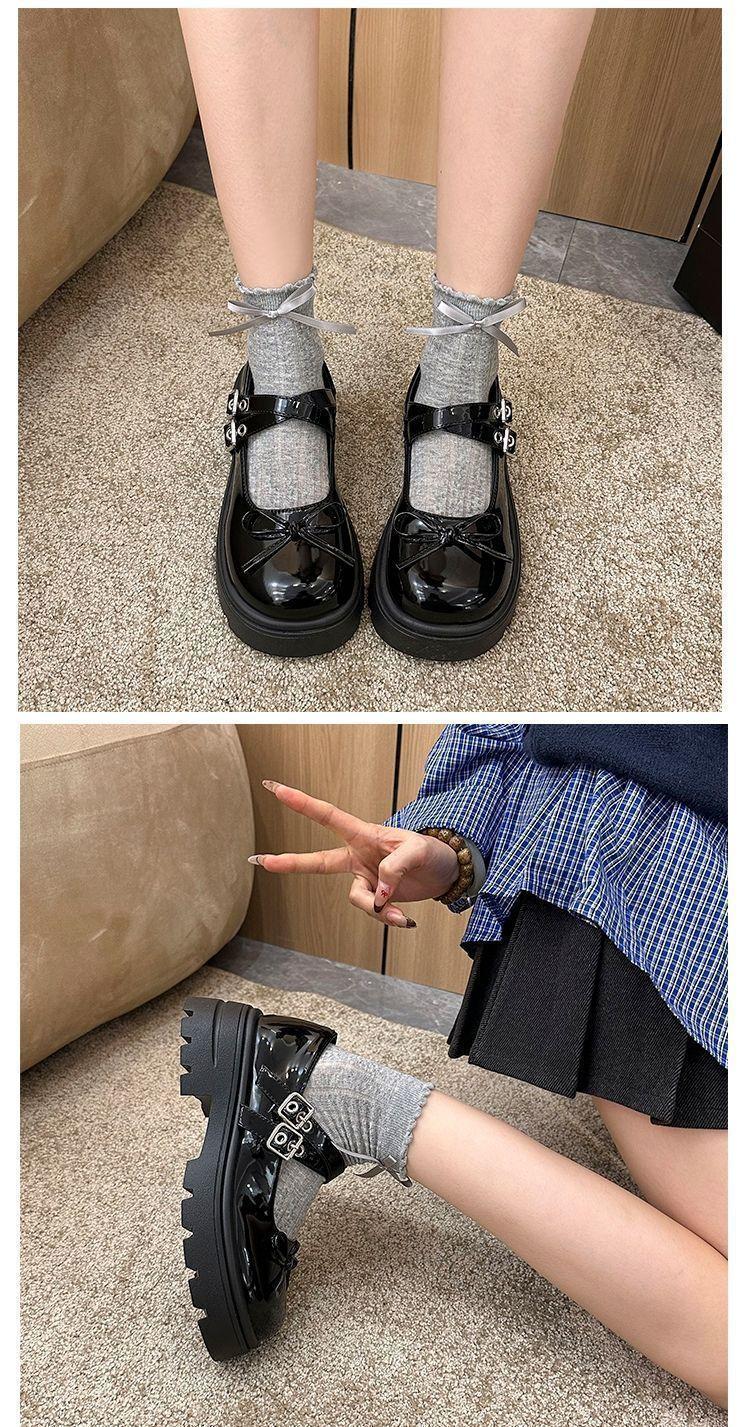 Zapatos de Cuero Pequeños de Suela Gruesa con Lazo Jk para Mujer 2024 Invierno Nuevo Estilo Mary Jane Retro Estilo Japonés con Falda Flats