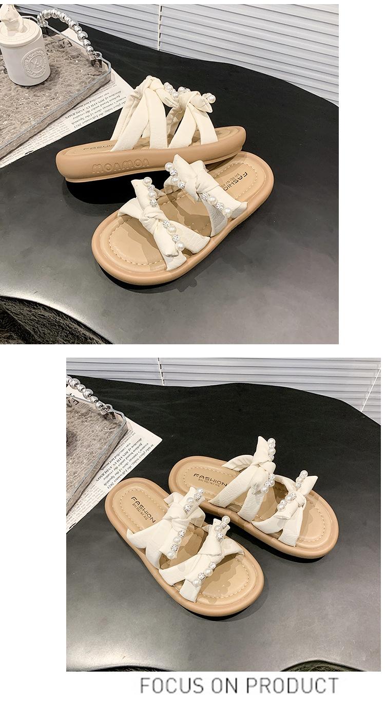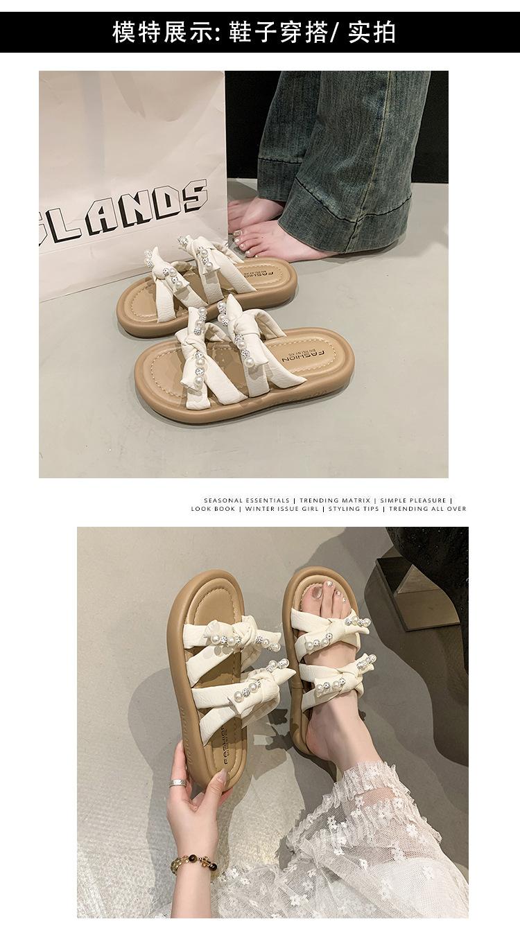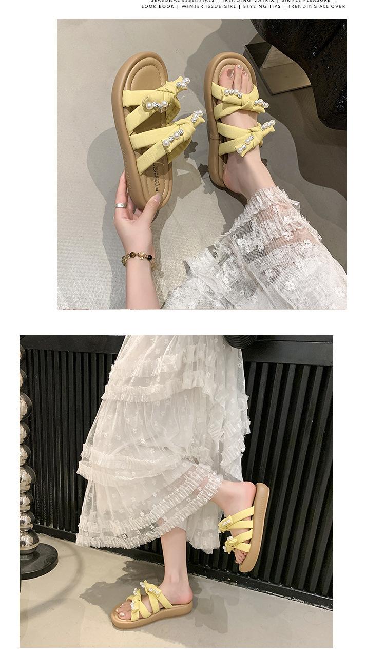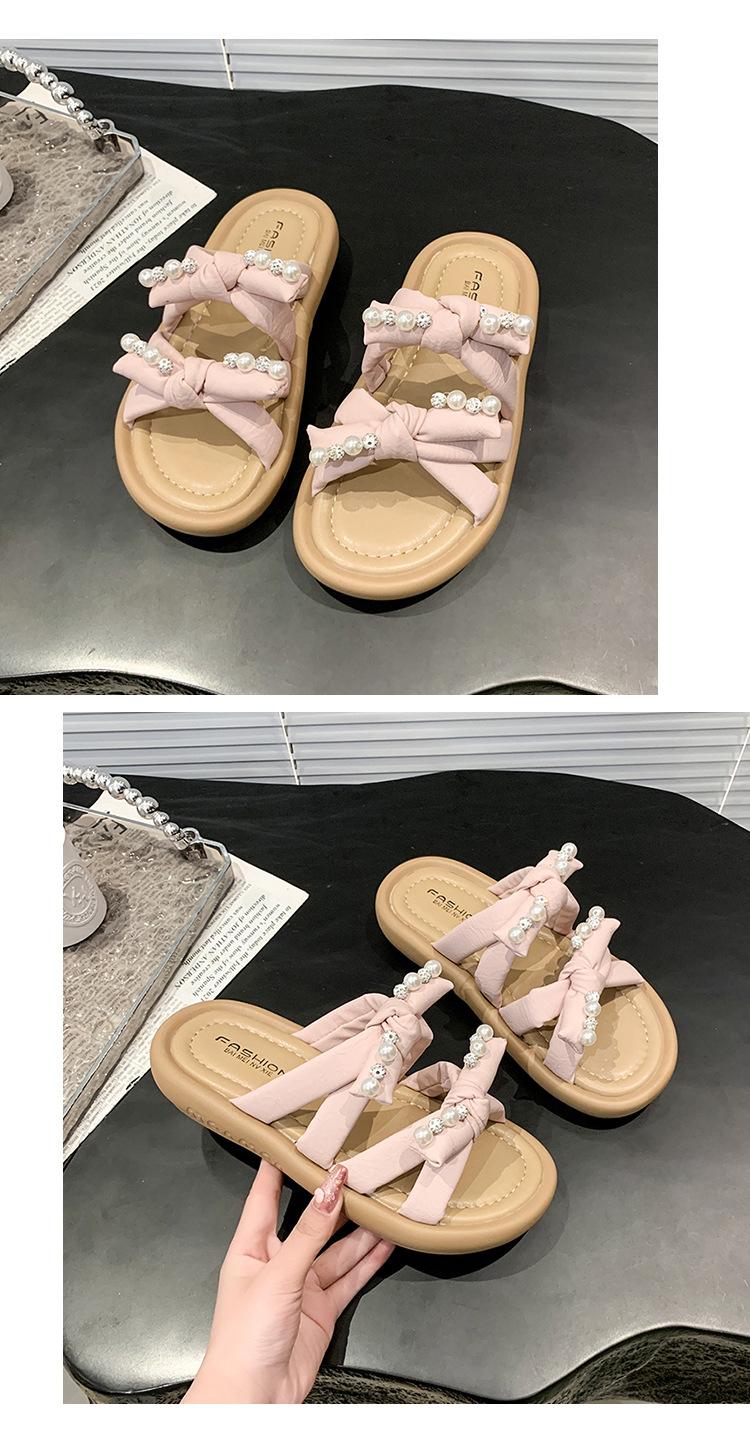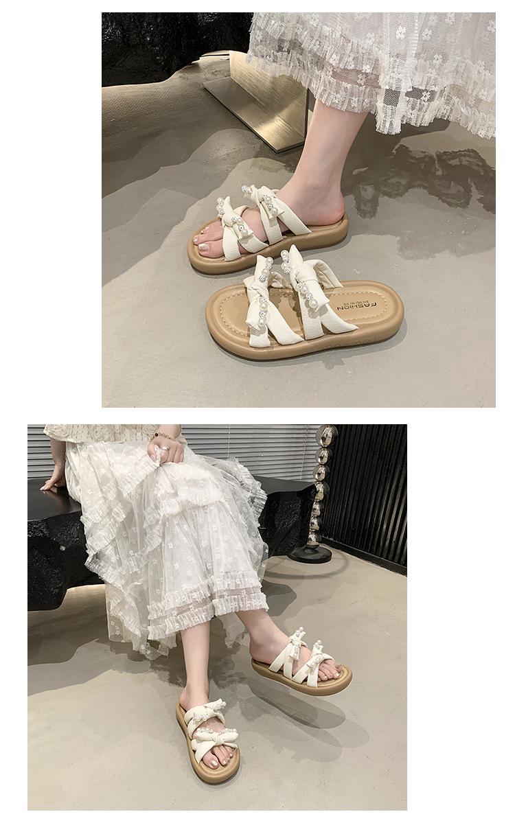 Pantuflas de Exterior para Mujer de Suela Gruesa 2025 Verano Nuevo Estilo Sandalias con Lazo de Perlas que No Cansan Pantuflas de Playa de Suela Blanda