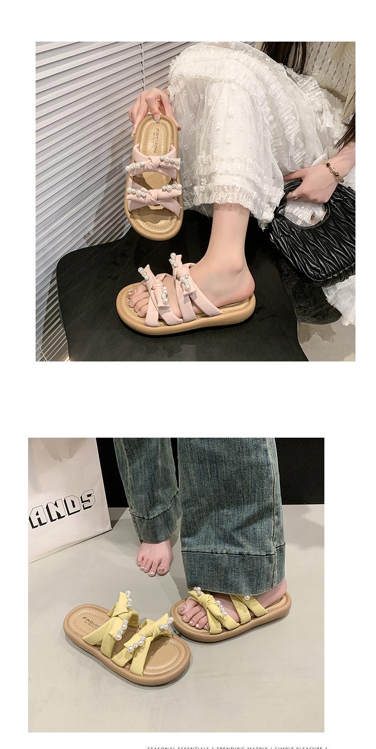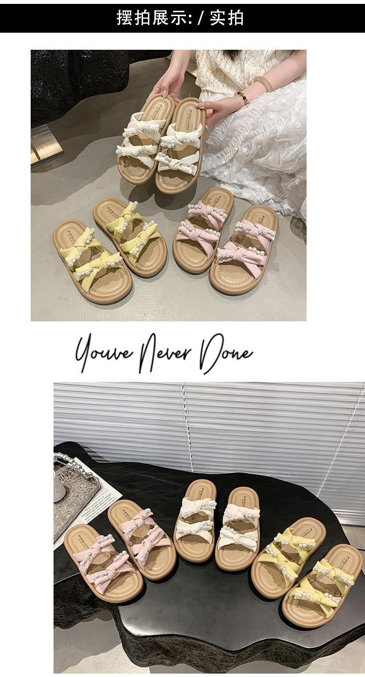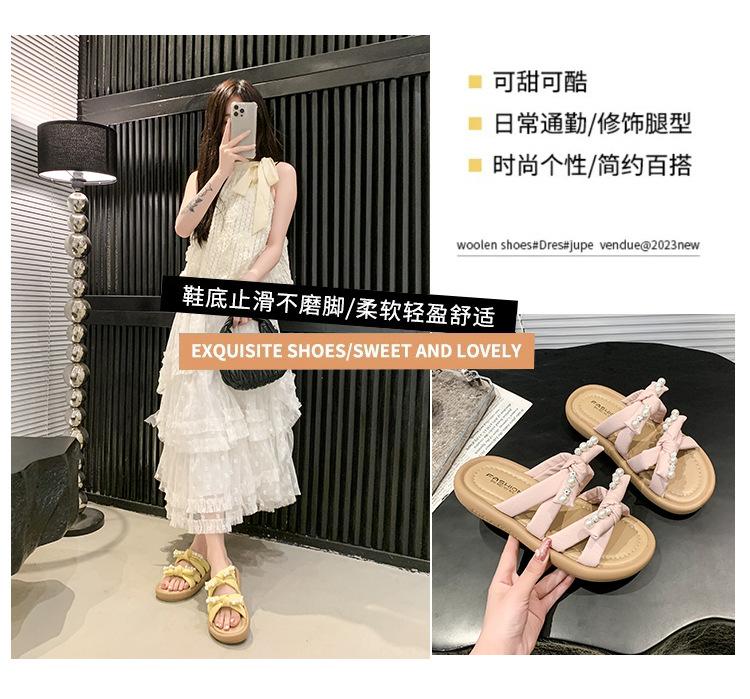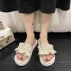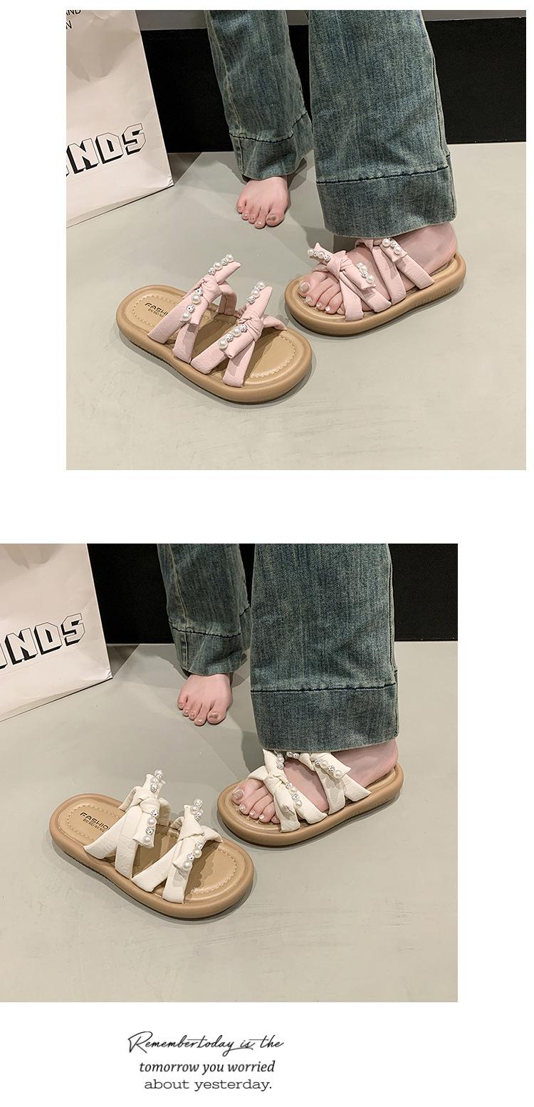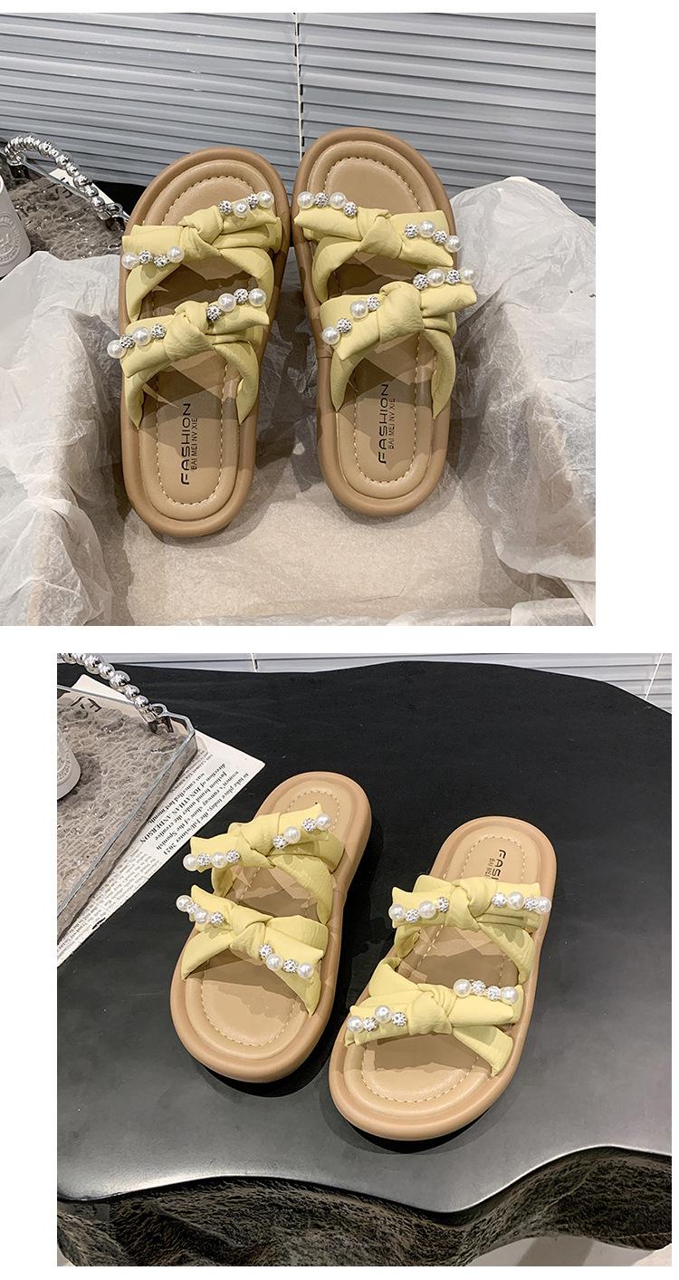 Pantuflas de Exterior para Mujer de Suela Gruesa 2025 Verano Nuevo Estilo Sandalias con Lazo de Perlas que No Cansan Pantuflas de Playa de Suela Blanda