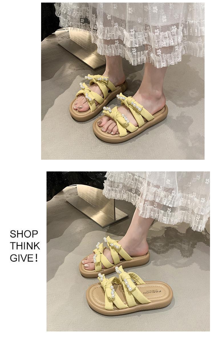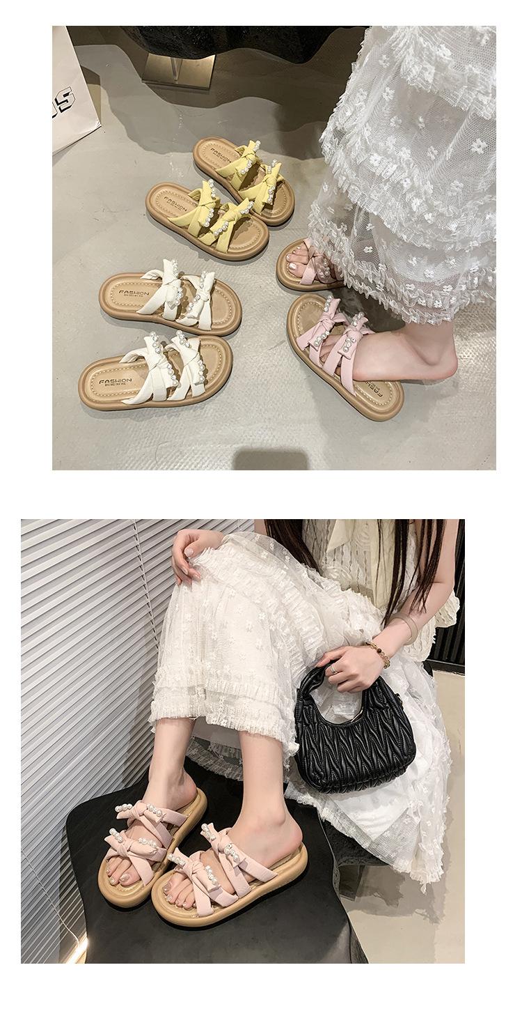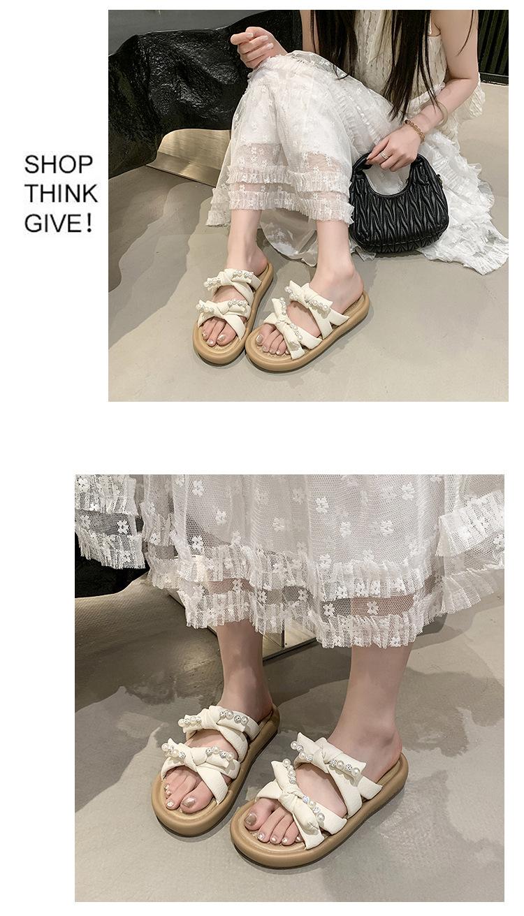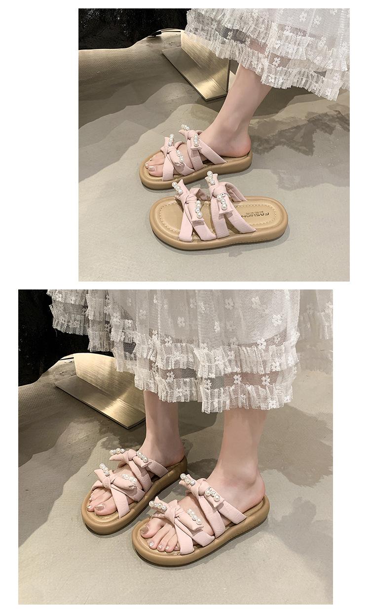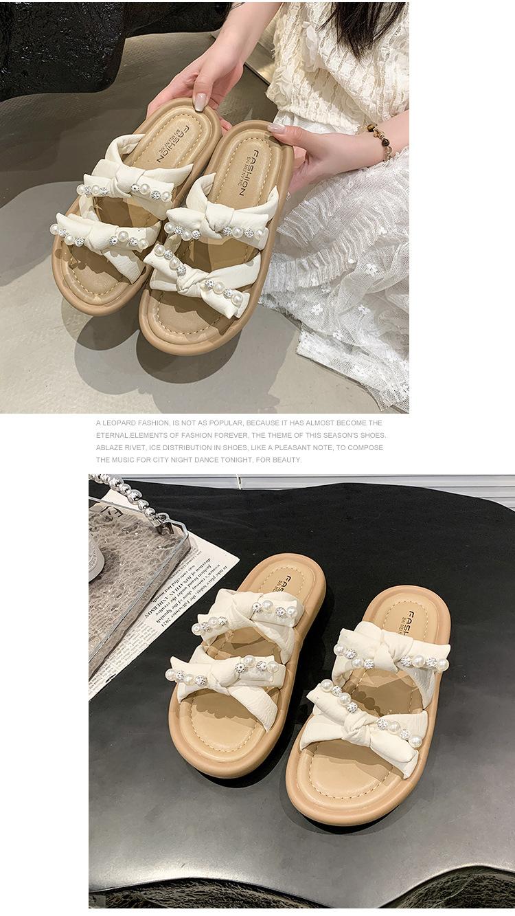 Pantuflas de Exterior para Mujer de Suela Gruesa 2025 Verano Nuevo Estilo Sandalias con Lazo de Perlas que No Cansan Pantuflas de Playa de Suela Blanda