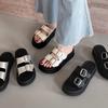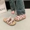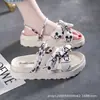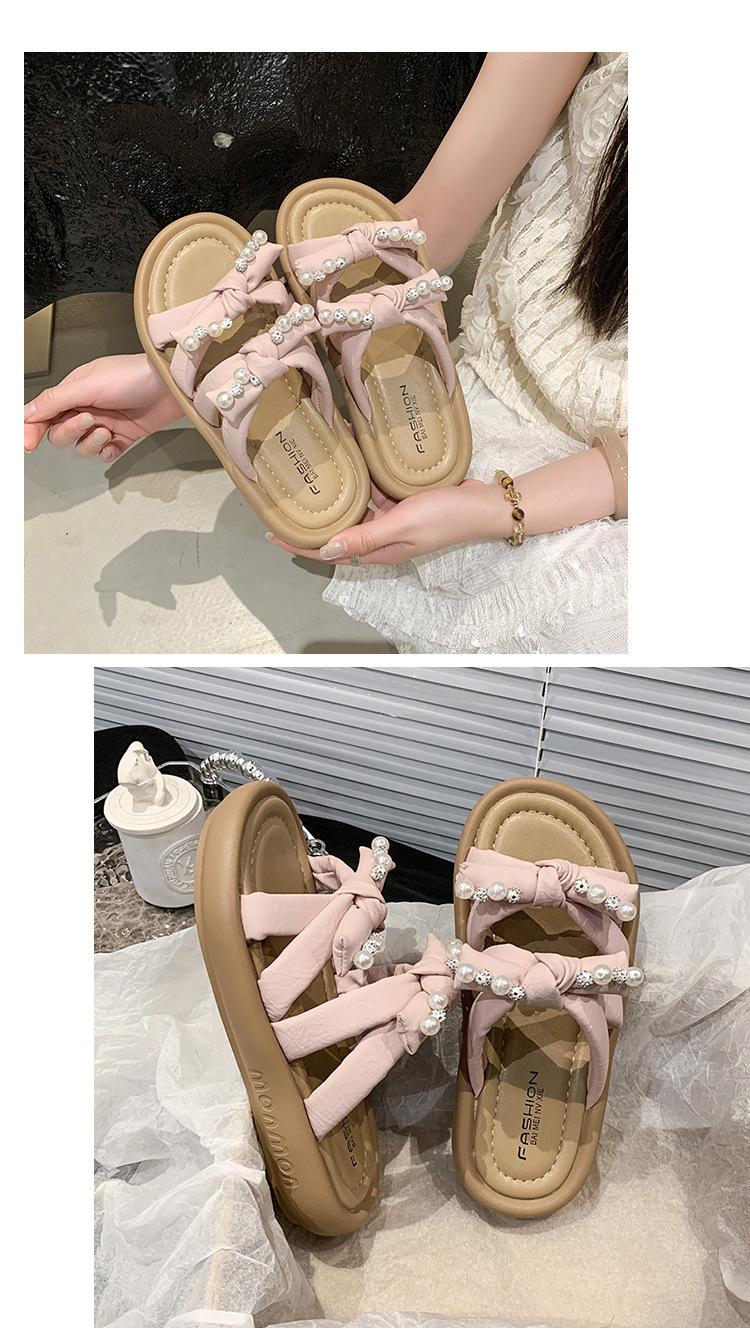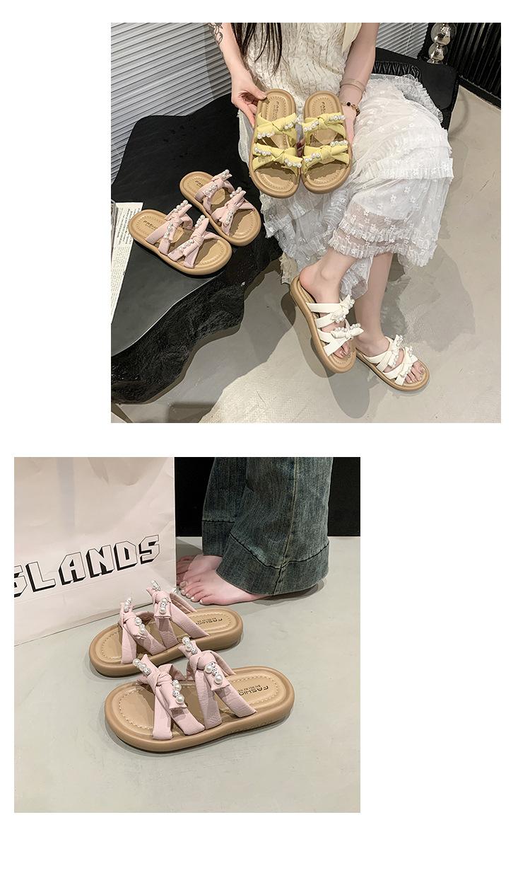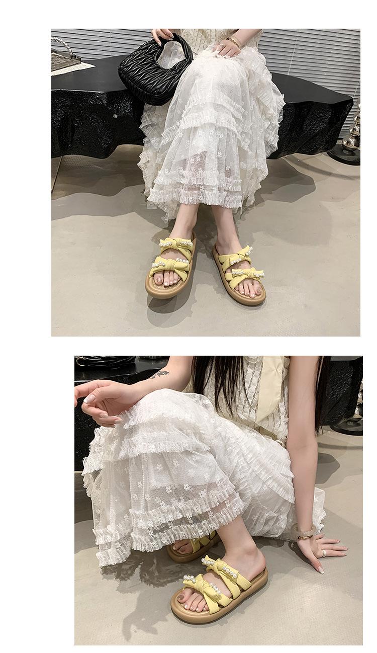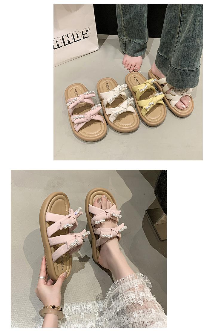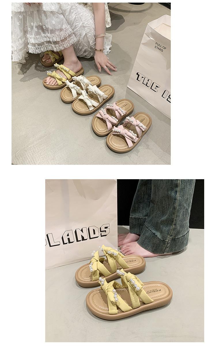 Pantuflas de Exterior para Mujer de Suela Gruesa 2025 Verano Nuevo Estilo Sandalias con Lazo de Perlas que No Cansan Pantuflas de Playa de Suela Blanda