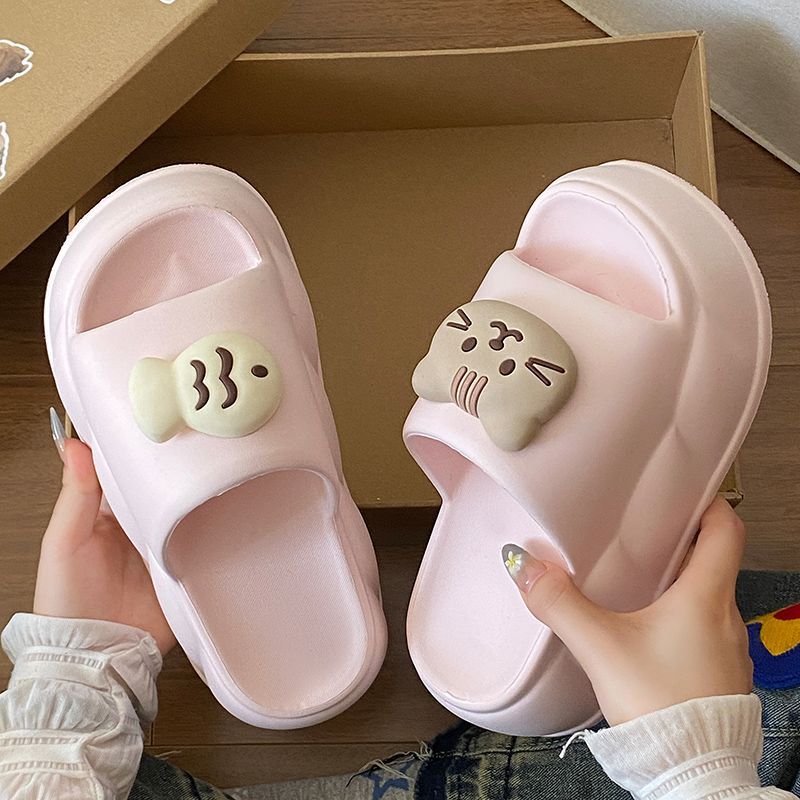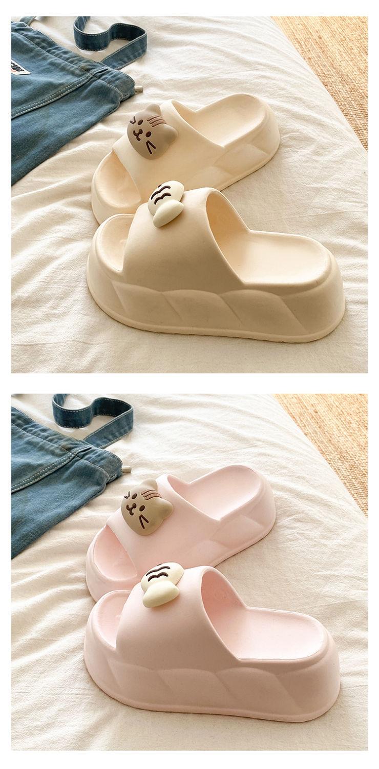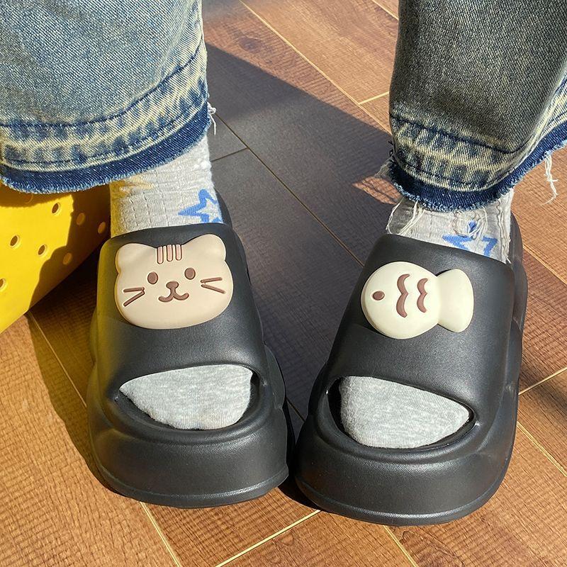 Pantuflas de Verano para Mujer, Pantuflas de Gatito y Pescado para Hombre, Sandalias de Eva con Plataforma Gruesa para Interior para Mujer al Mayoreo