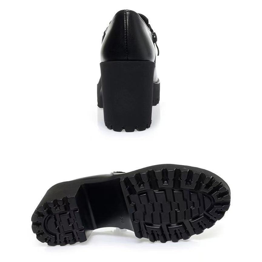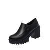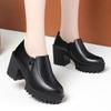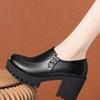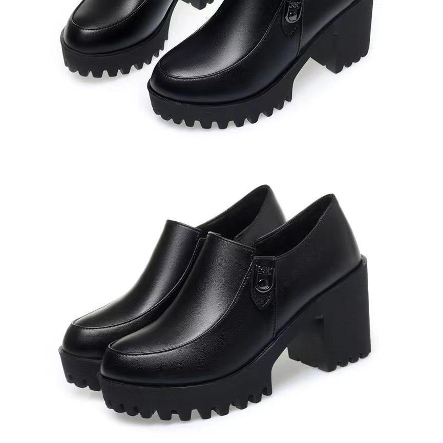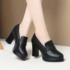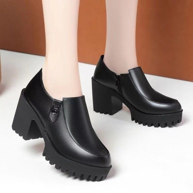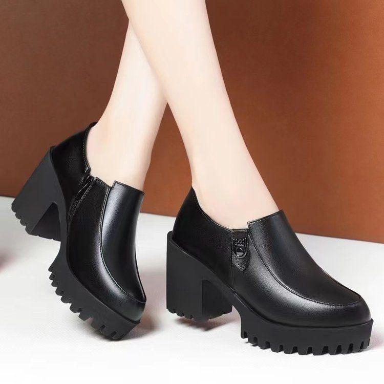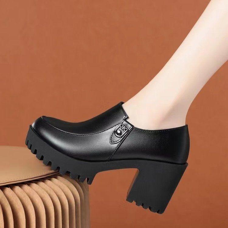 Plataforma Tacón Grueso Primavera y Verano 2025 Nuevos Zapatos de Cuero para Mujer Zapatos Individuales Talla Grande Tacones Altos Boca Profunda Zapatos de Trabajo