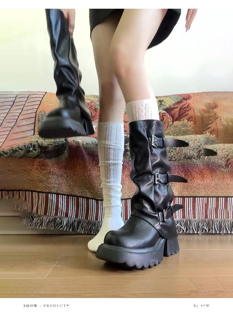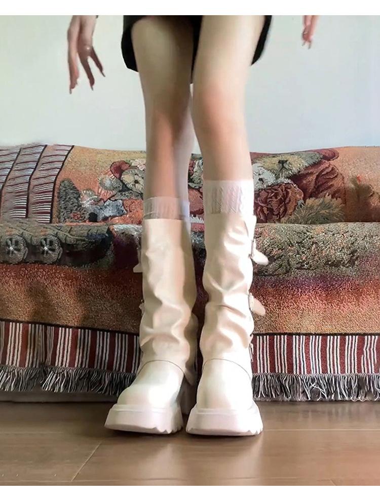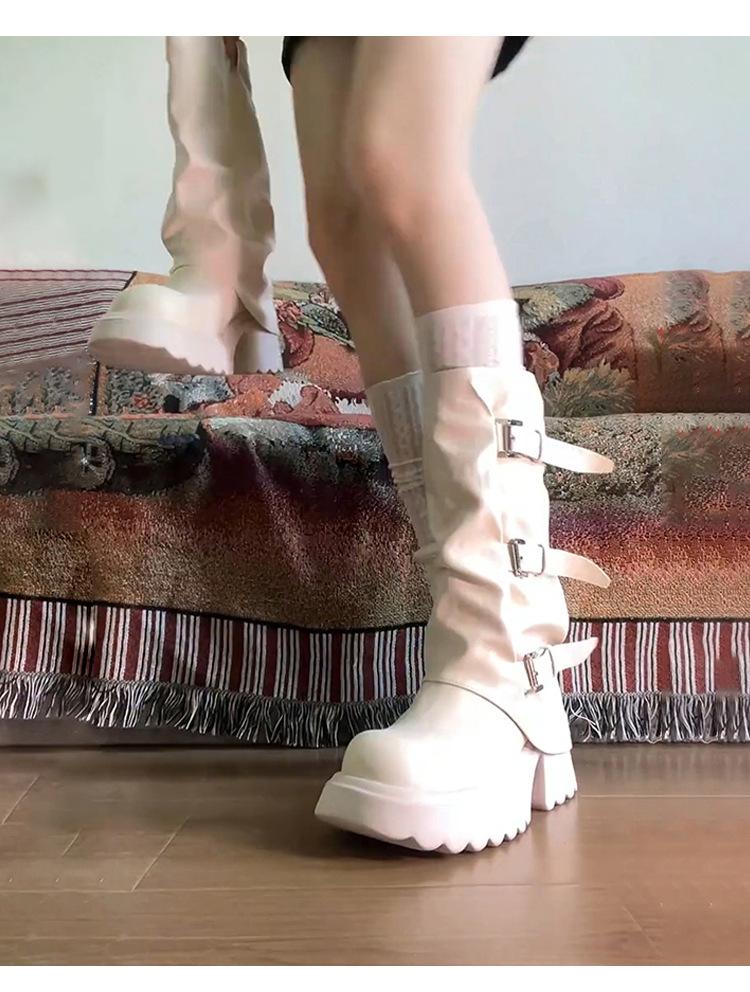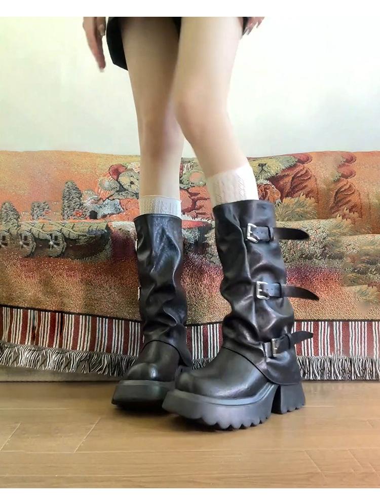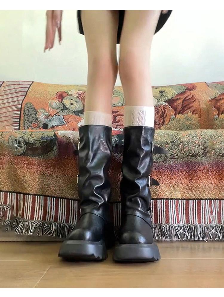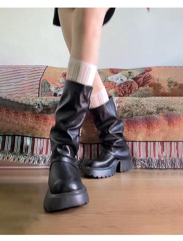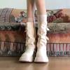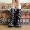 Estilo Dulce y Cool Botas Pantalón Adelgazantes con Plataforma Pequeña para Aumentar la Altura para Mujer Retro Plisadas Vaqueras del Oeste