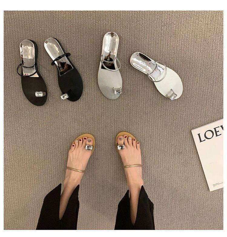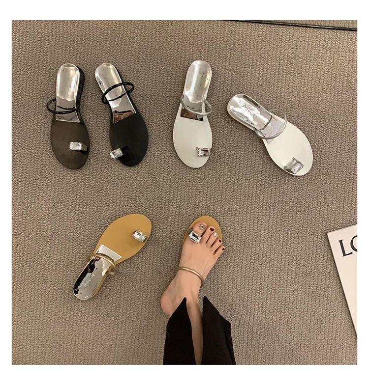 Nuevas Zapatillas de Playa de Verano con Pedrería, Chanclas con Plataforma Interna Tipo Huevo de Paloma, Sandalias Planas para Mujer, Ropa Exterior de Moda