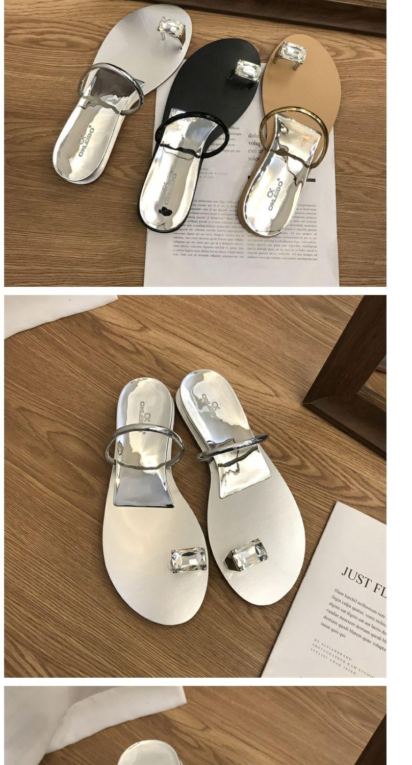 Sandalias de Diamantes de Imitación de Huevo de Paloma para Mujer Verano 2023 Verano Nuevo Plata Sandalias Planas de Tira Única