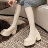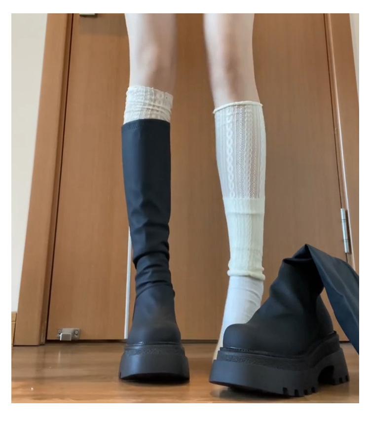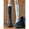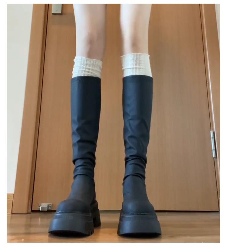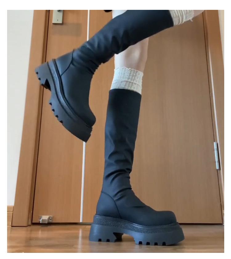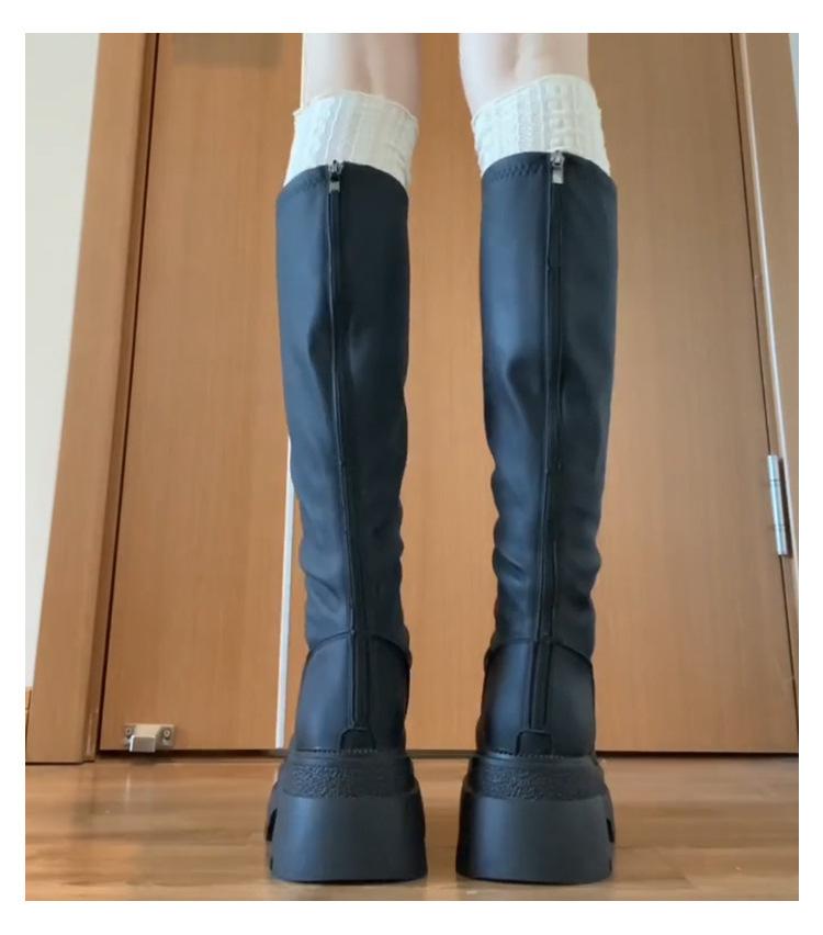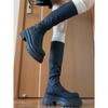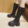 Botas altas hasta la rodilla de suela gruesa, Botas negras retro, Botas de caballero de caña alta, Botas versátiles para aumentar la altura