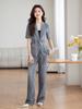 Chaqueta Gris de Verano de Manga Corta con Cuello de Traje Pequeño para Mujer, Pantalón de Verano Casual de Moda de Alta Gama 25 Años Nuevo Traje de Dos Piezas