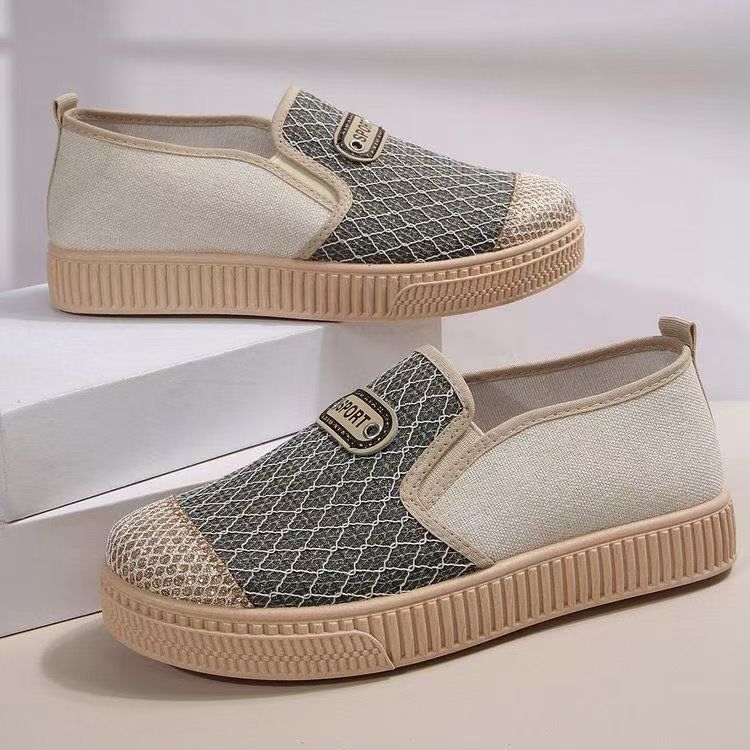 Zapatos de Verano para Mujer 2025 Nuevos Simples Modernos Versátiles de Malla Transpirable con Suela Suave sin Cordones
