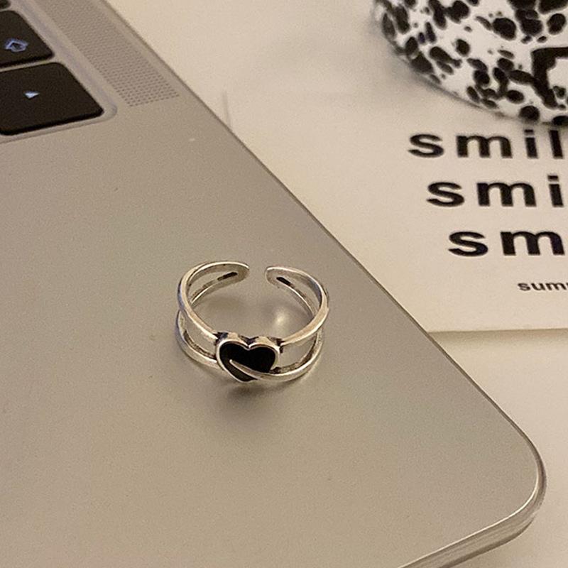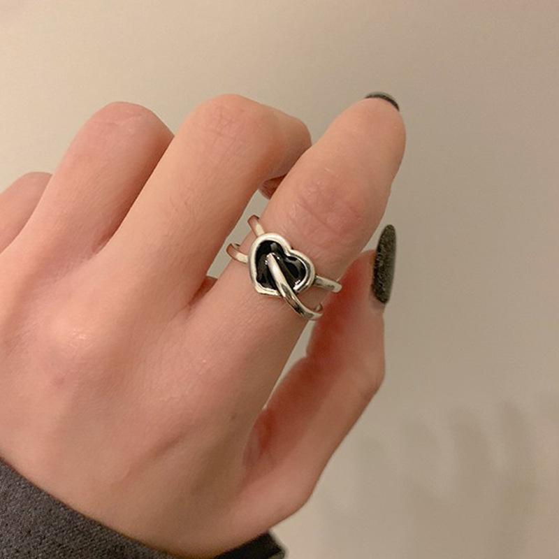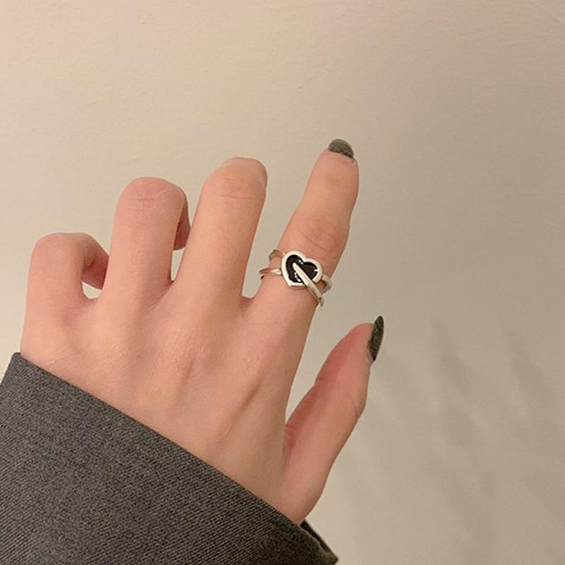 Anillo para Mujer ins Trendy Cool Celebridad de Internet Retro Estilo Frío Aleación Goteo de Aceite Amor Anillo de Dedo Apertura Ajustable