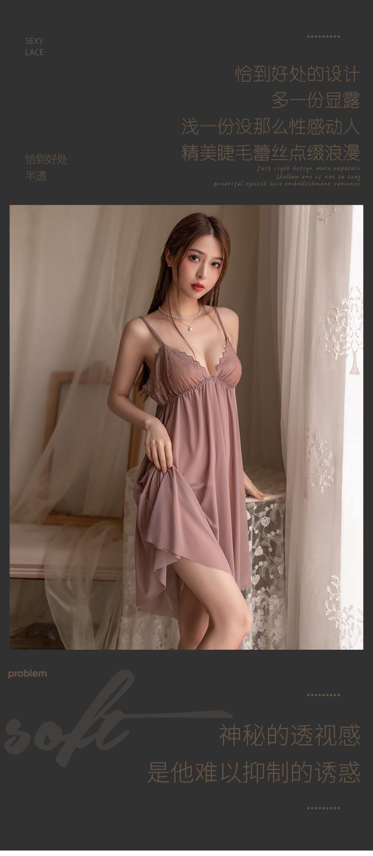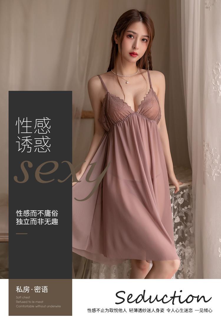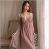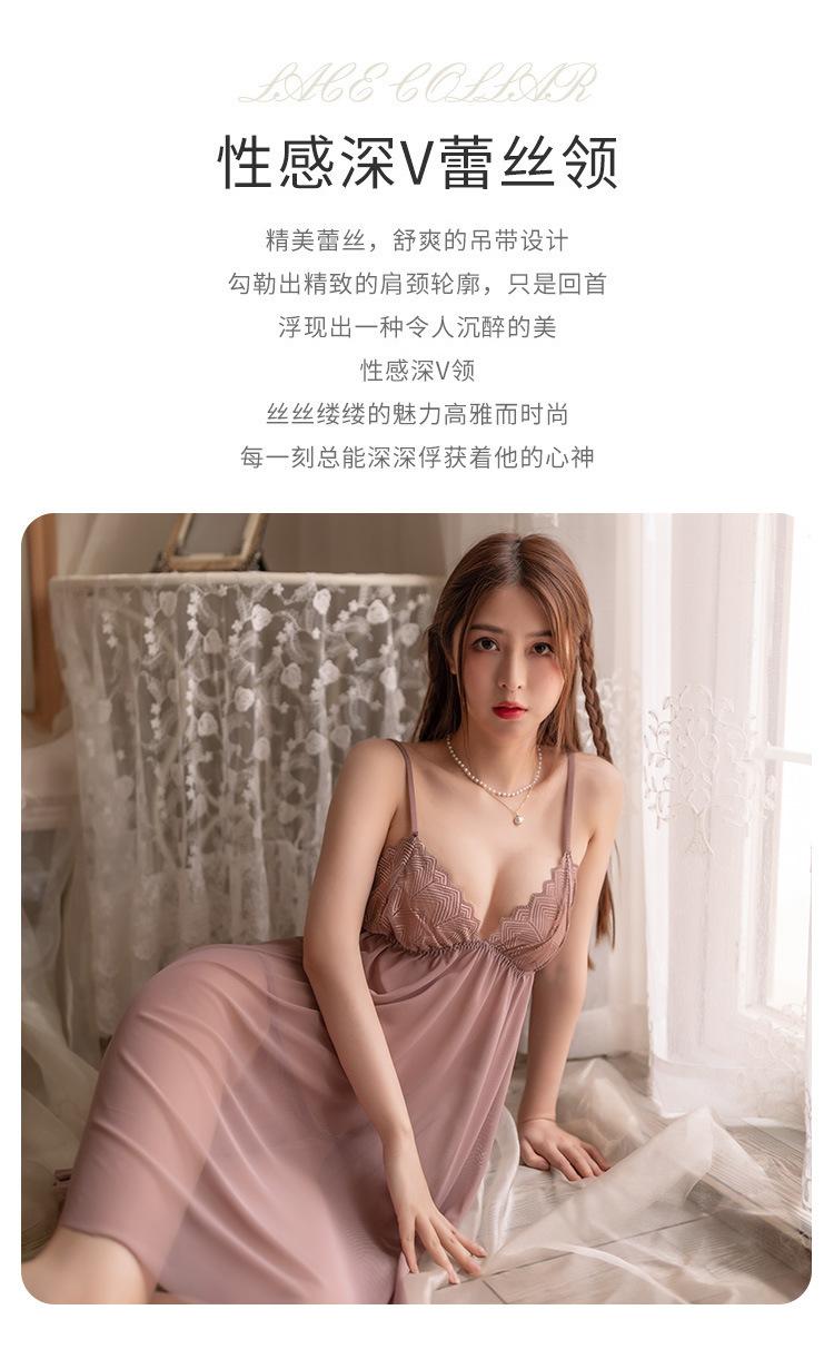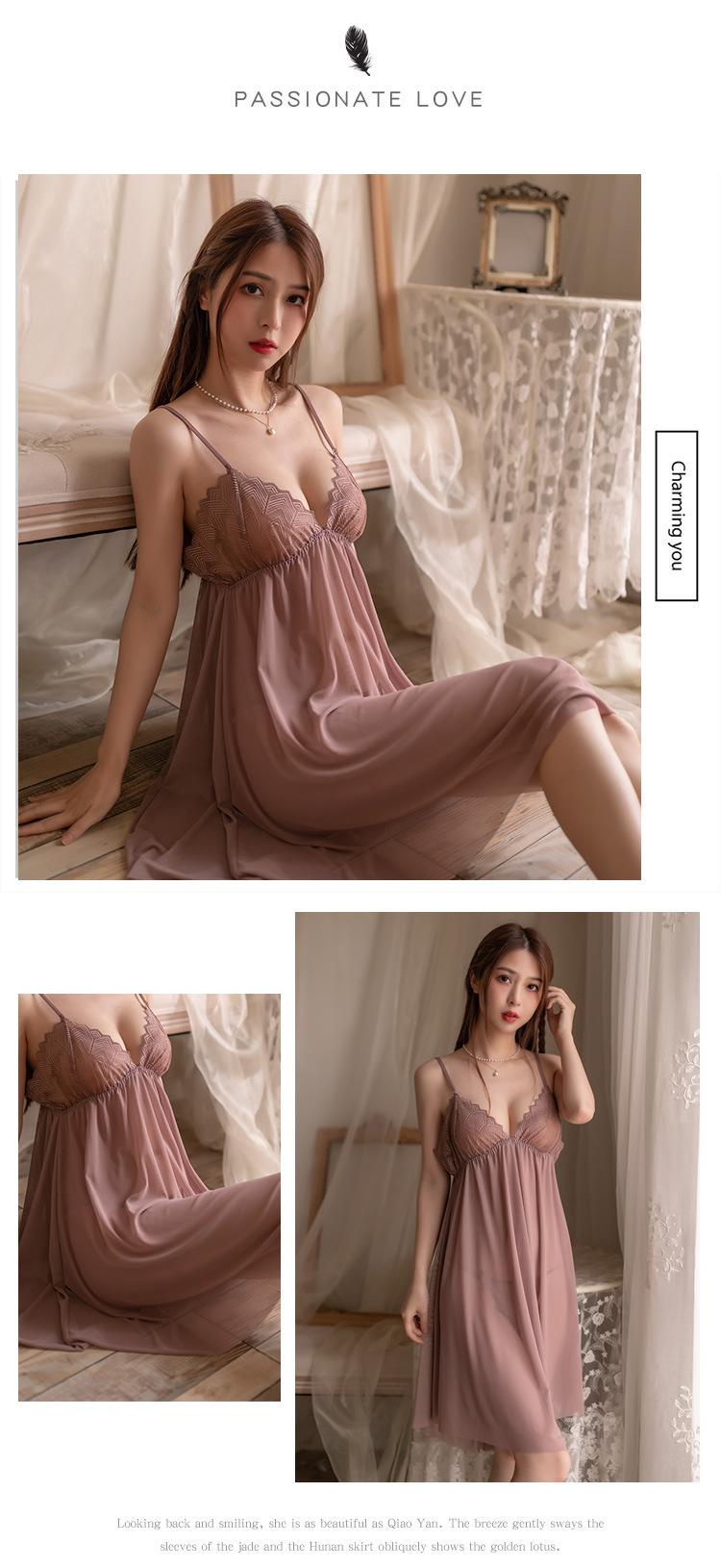 Camisón Europeo y Americano de Encaje Dulce de Color Sólido para el Hogar con Tirantes en V Profundo Ropa Interior Sexy Vestido Sexy Europeo y Americano