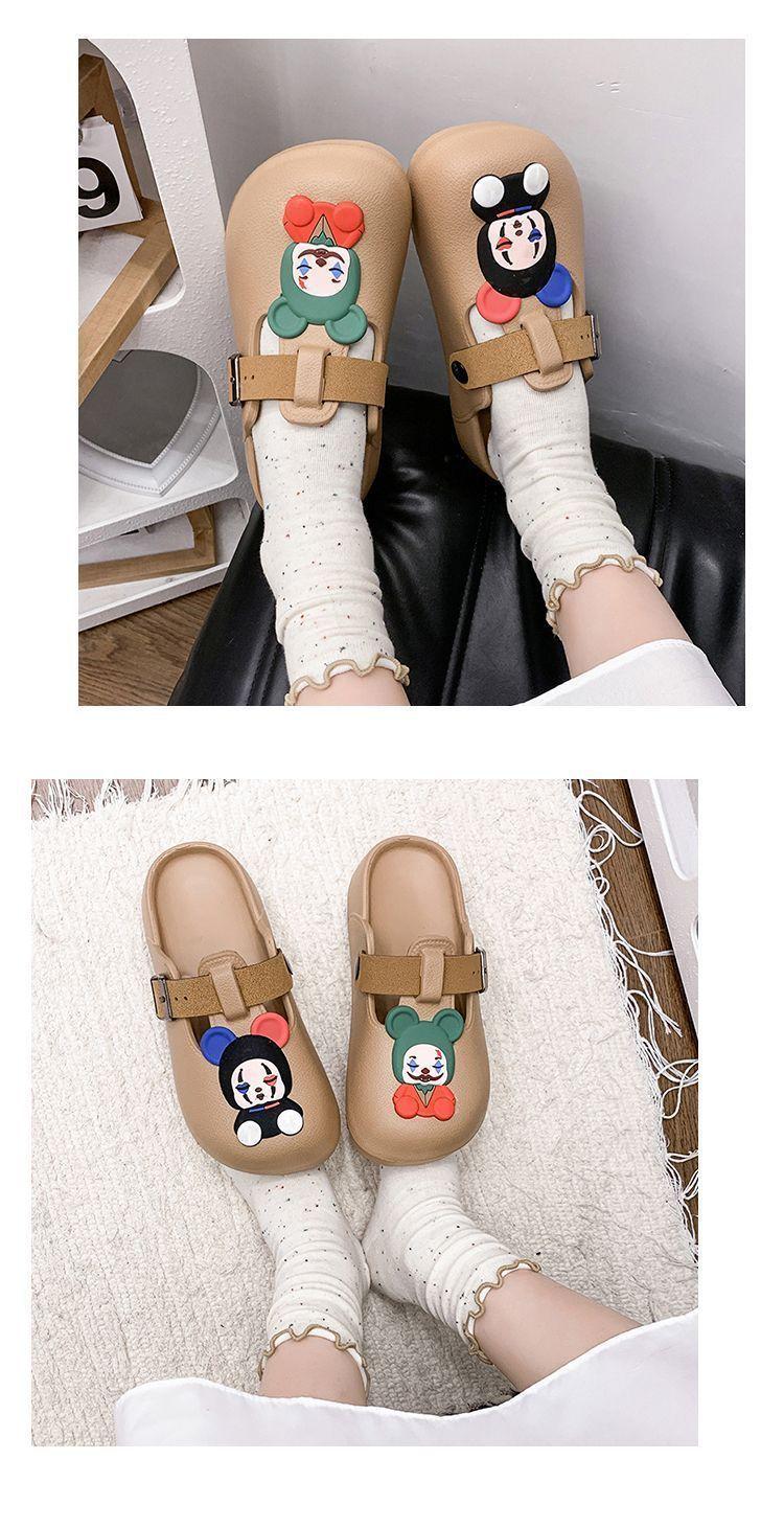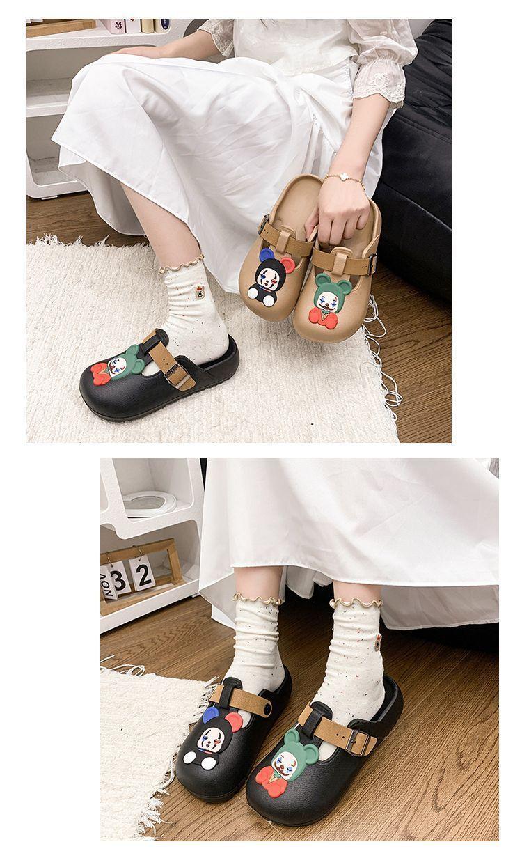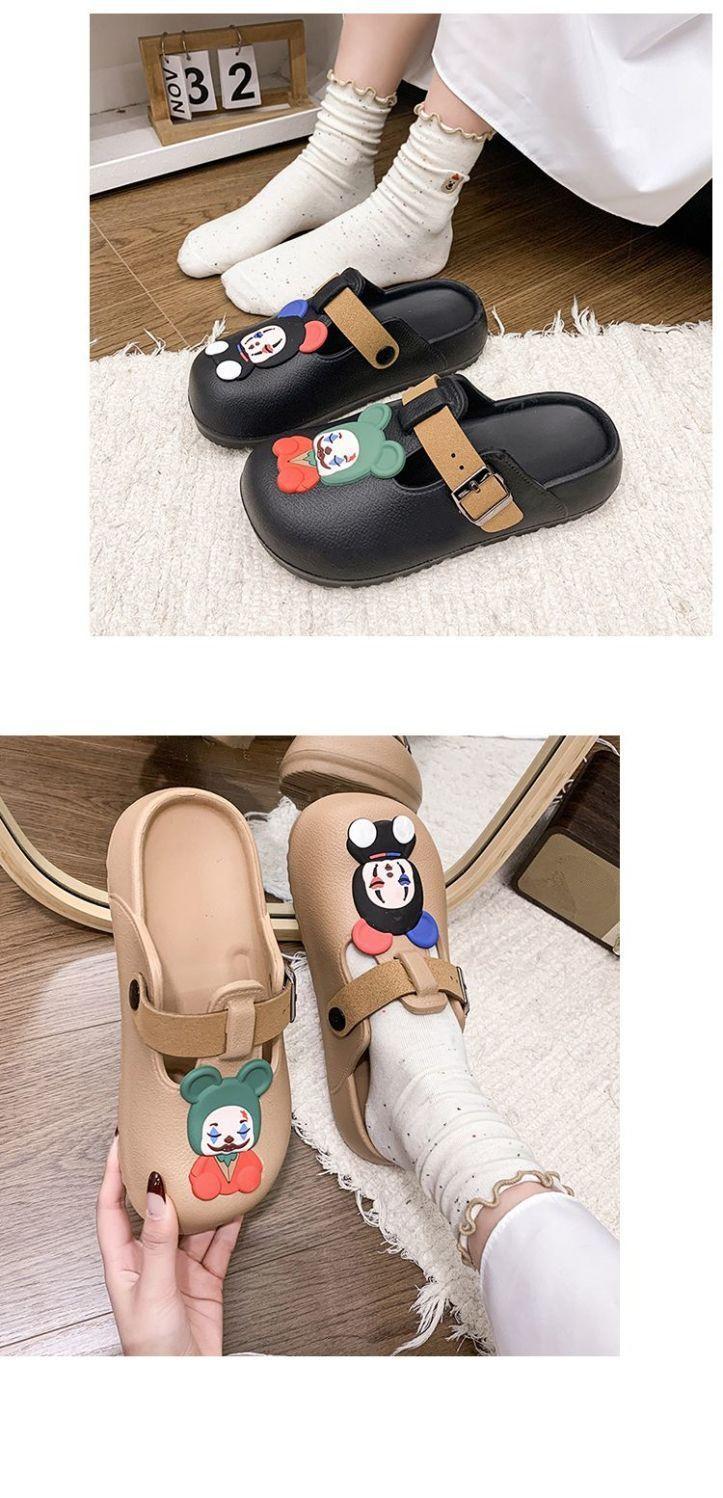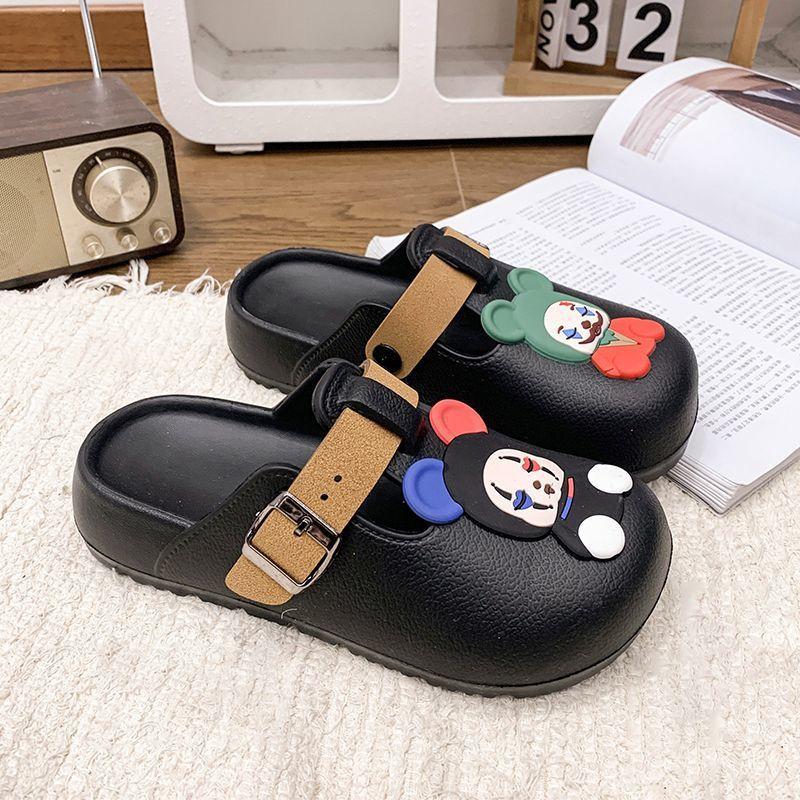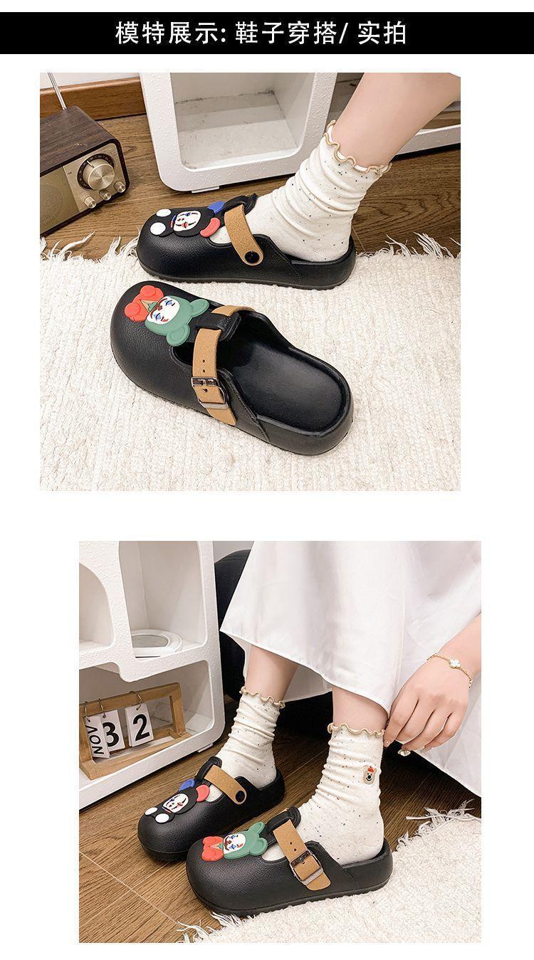 Sandalias de Dibujos Animados para Mujer para Usar en el Exterior Verano Sandalias Slip-On de Suela Gruesa 2025 Nueva Moda Zapatillas de Media Punta Baotou para Mujer