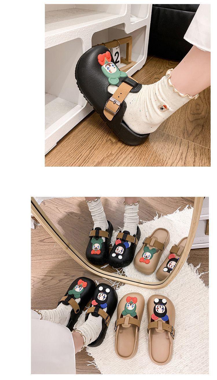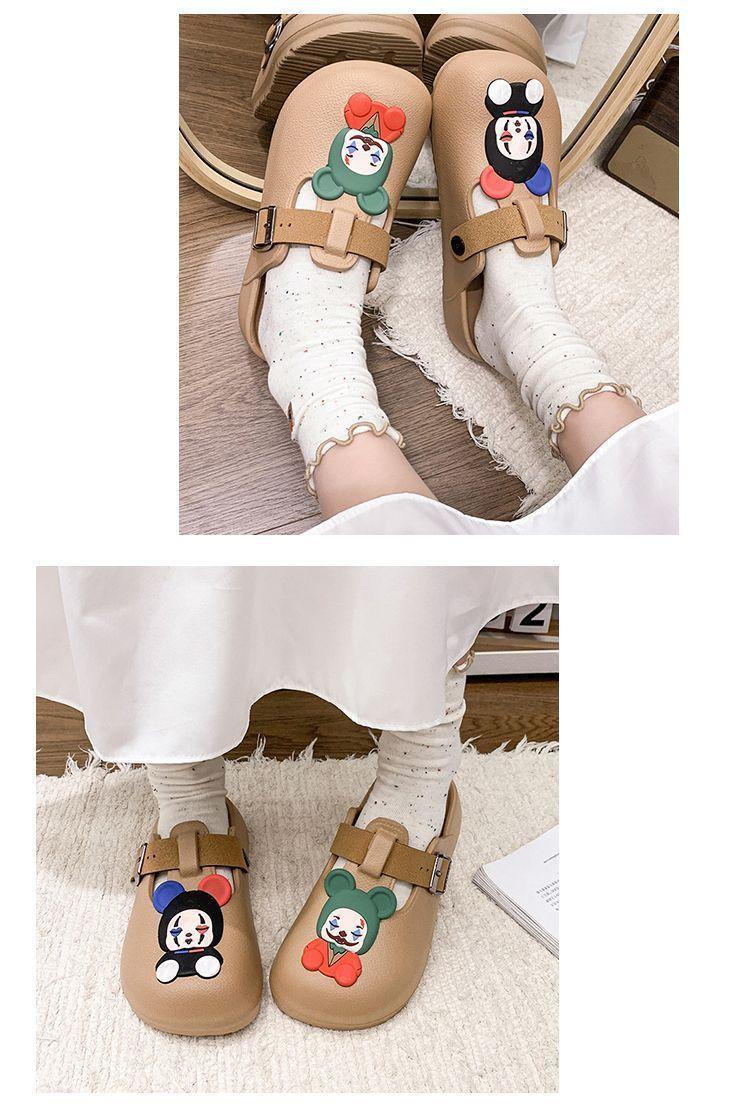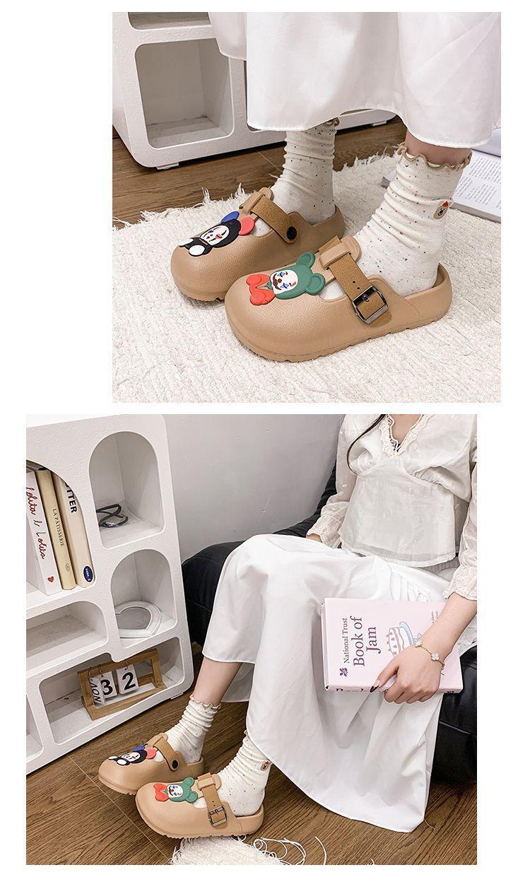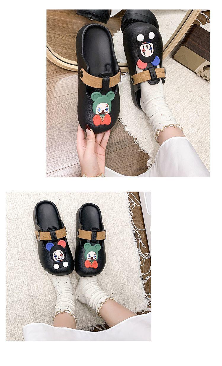 Sandalias de Dibujos Animados para Mujer para Usar en el Exterior Verano Sandalias Slip-On de Suela Gruesa 2025 Nueva Moda Zapatillas de Media Punta Baotou para Mujer