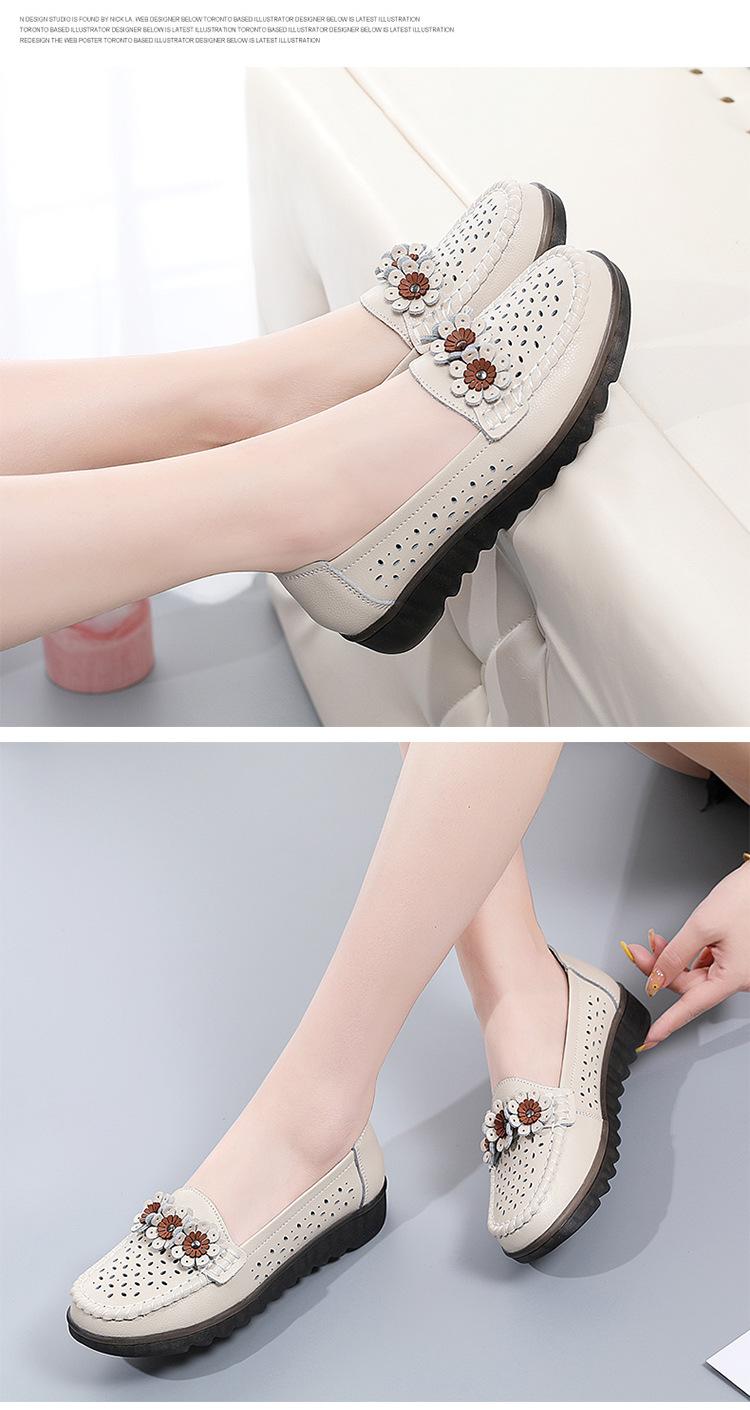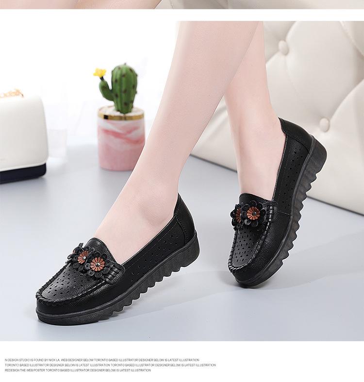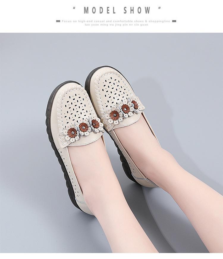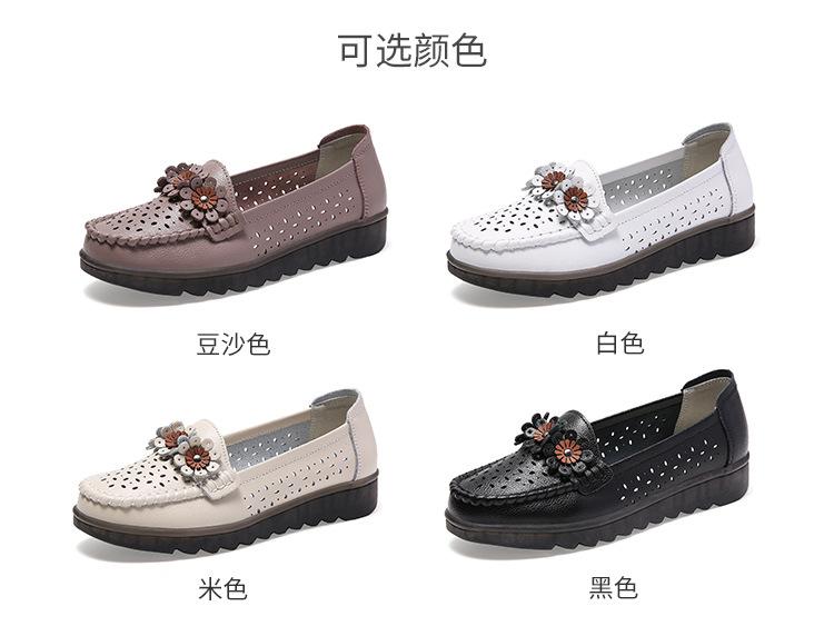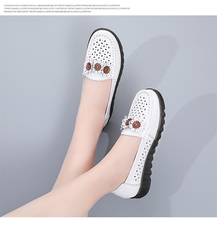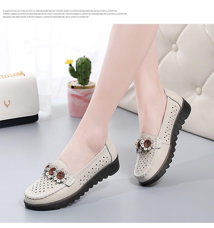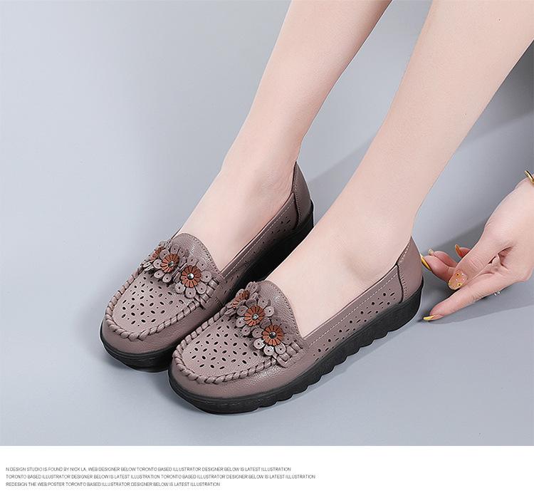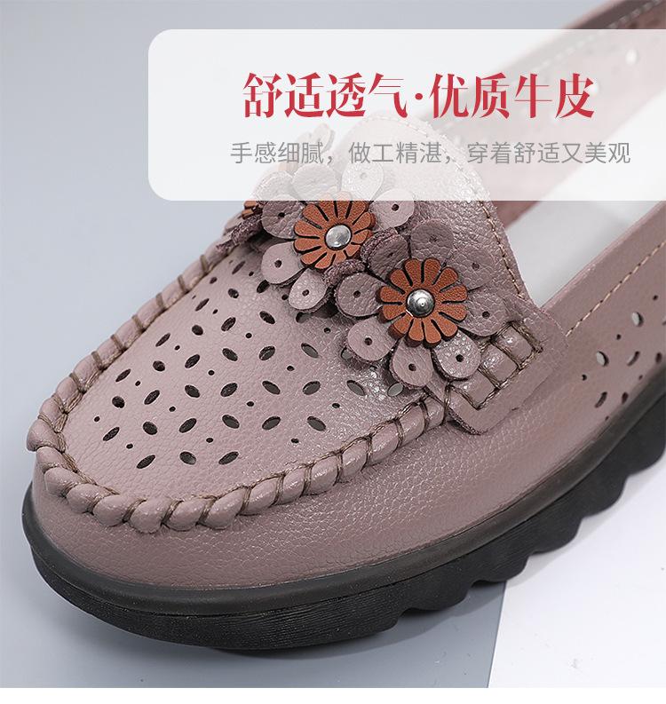 Zapatos tipo gorro de piel genuina de verano nuevos transfronterizos para mujer, zuecos huecos transpirables de suela plana, zapatos de madre de talla grande de suela blanda para mujeres embarazadas