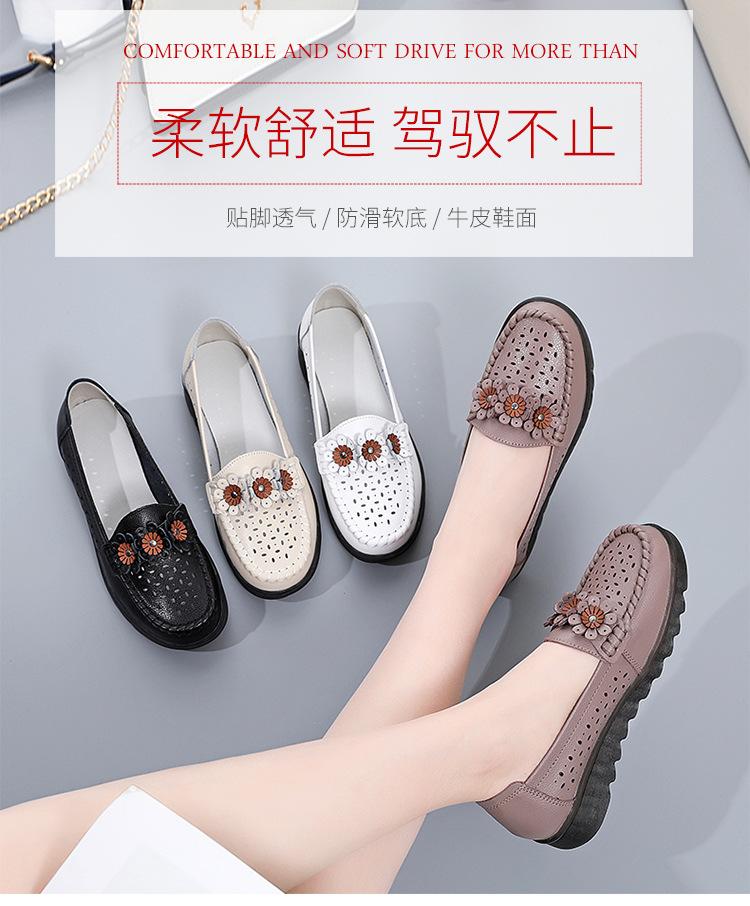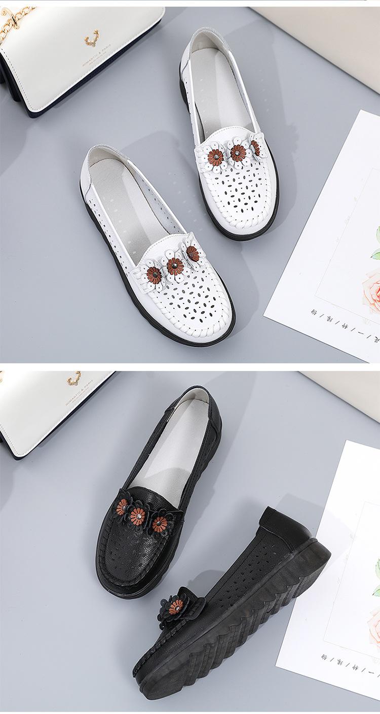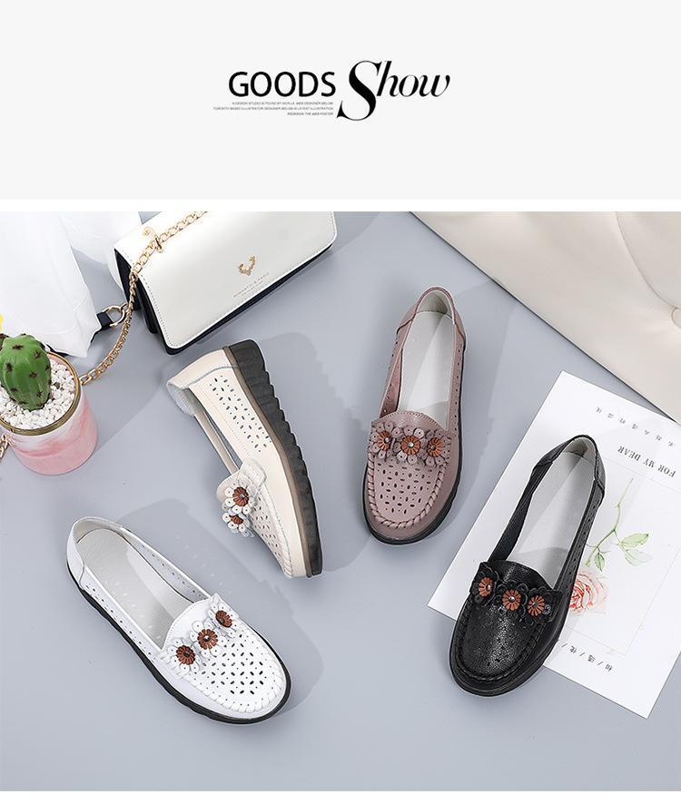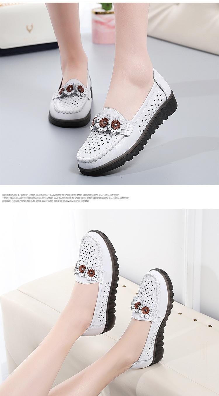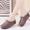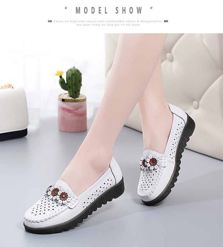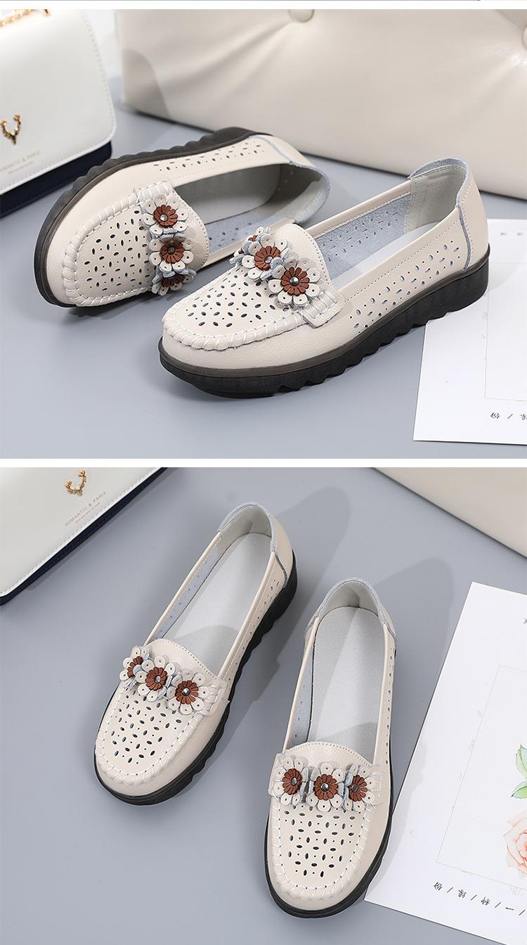 Zapatos tipo gorro de piel genuina de verano nuevos transfronterizos para mujer, zuecos huecos transpirables de suela plana, zapatos de madre de talla grande de suela blanda para mujeres embarazadas