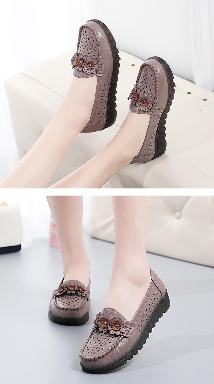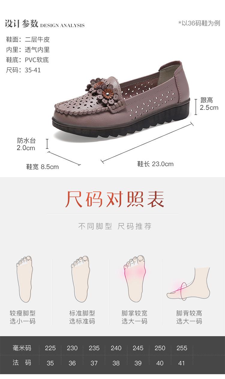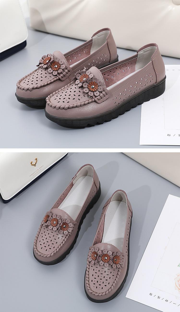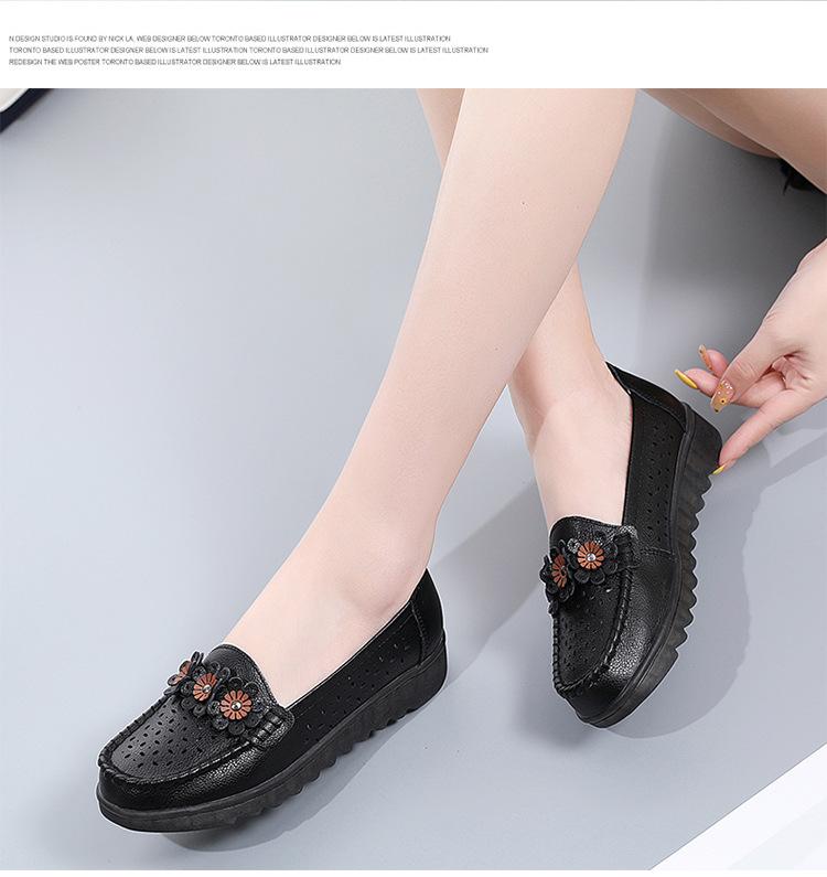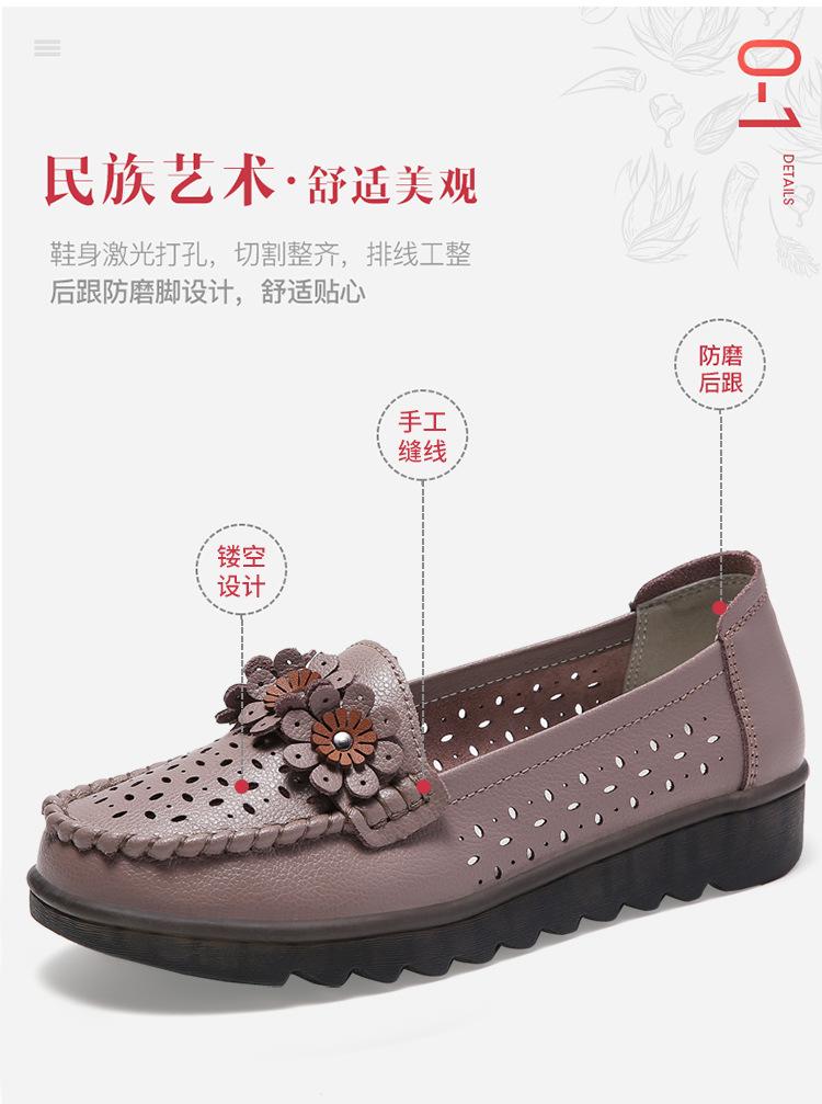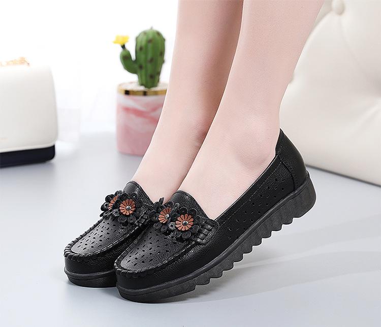 Zapatos tipo gorro de piel genuina de verano nuevos transfronterizos para mujer, zuecos huecos transpirables de suela plana, zapatos de madre de talla grande de suela blanda para mujeres embarazadas