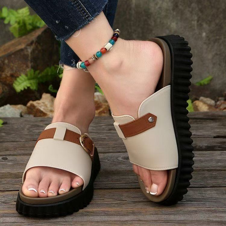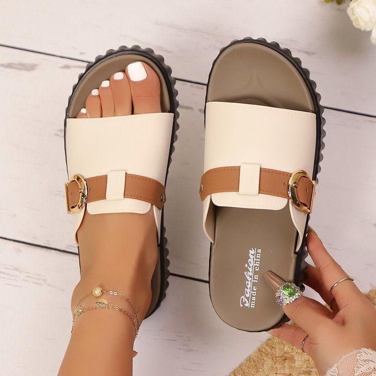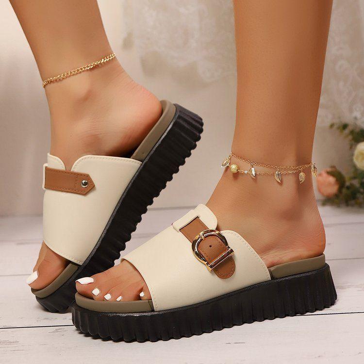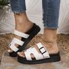 Hebilla de Cinturón de Moda Color Sólido de Una Línea Zapatos de Comercio Exterior Transfronterizos Europeos y Americanos Talla Grande Color Sólido Pantuflas de Plataforma Gruesa para Mujer Estilo Nuevo 2025