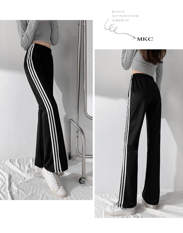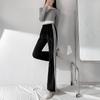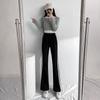 Pantalones Microacampanados Negros para Mujer en Primavera y Verano, Sueltos, de Cintura Alta, Slim, Versátiles, Pantalones Drapeados hasta el Piso, Pantalones de Moda