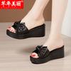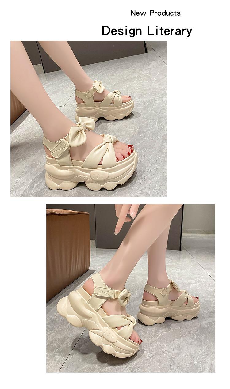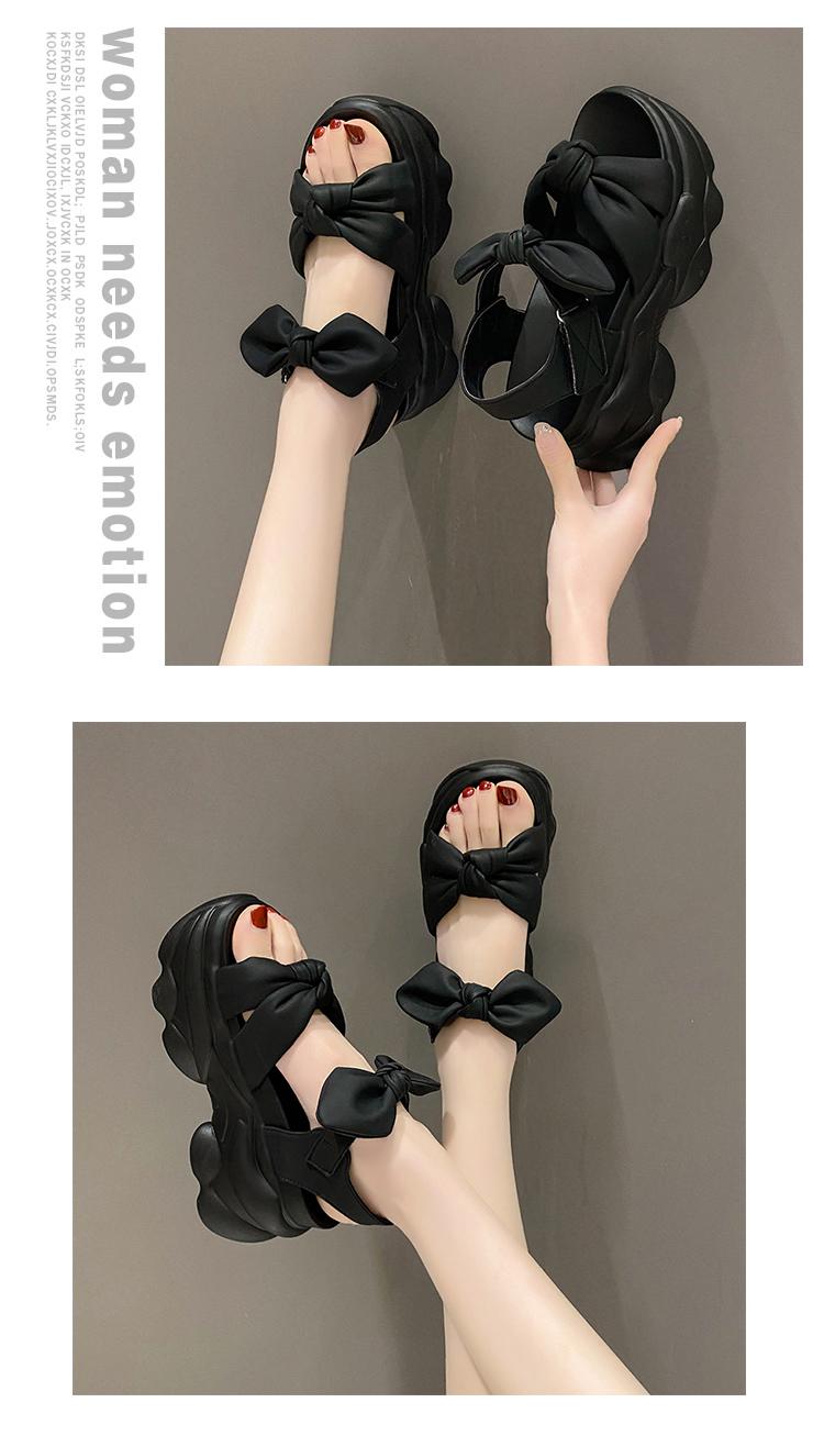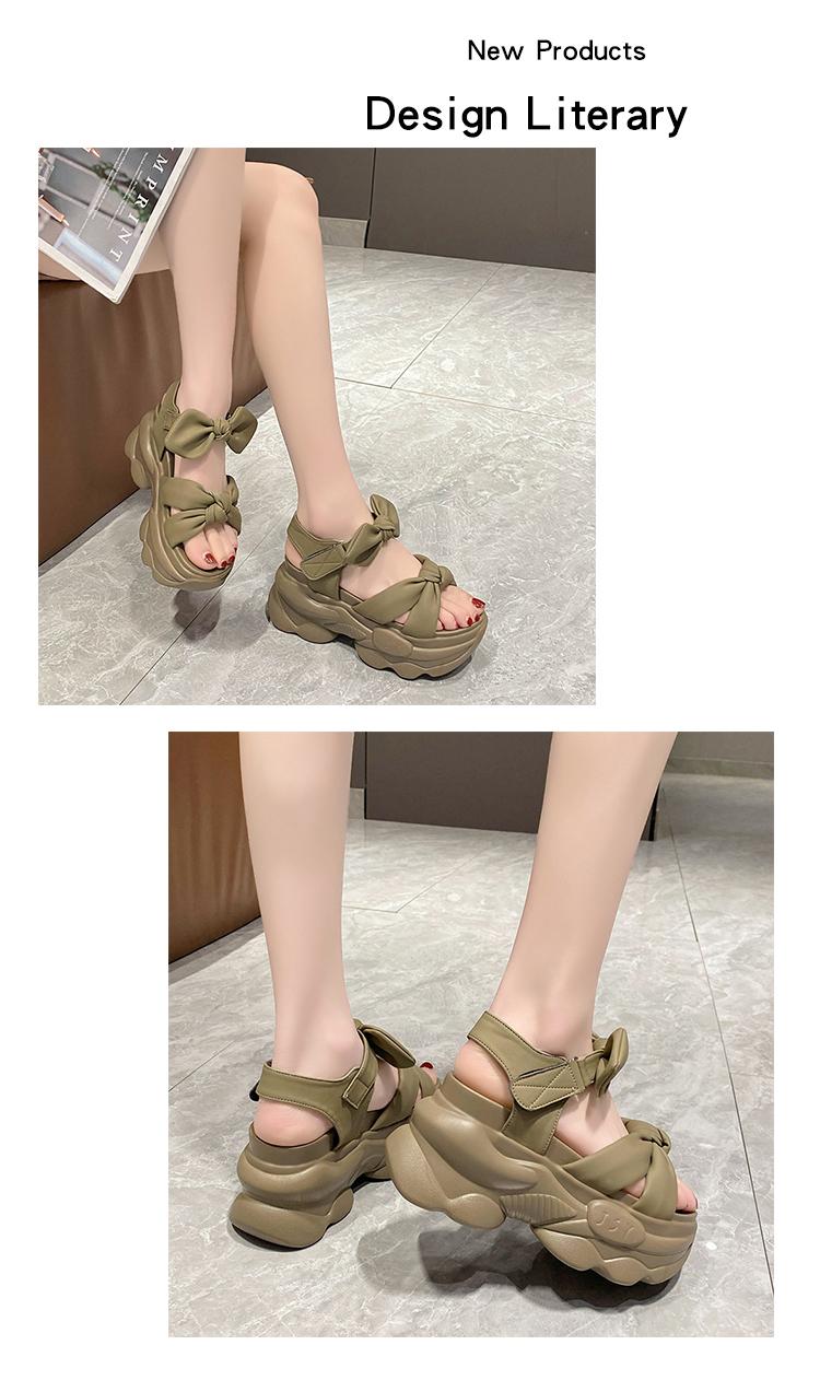Sandalias de Cuña para Mujer Verano 2025 Nuevo Estilo Lazo Versátil Plataforma Pequeña Suela Gruesa Tacón Alto Playa Zapatos Romanos