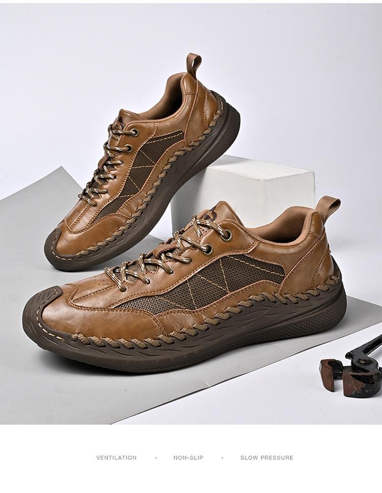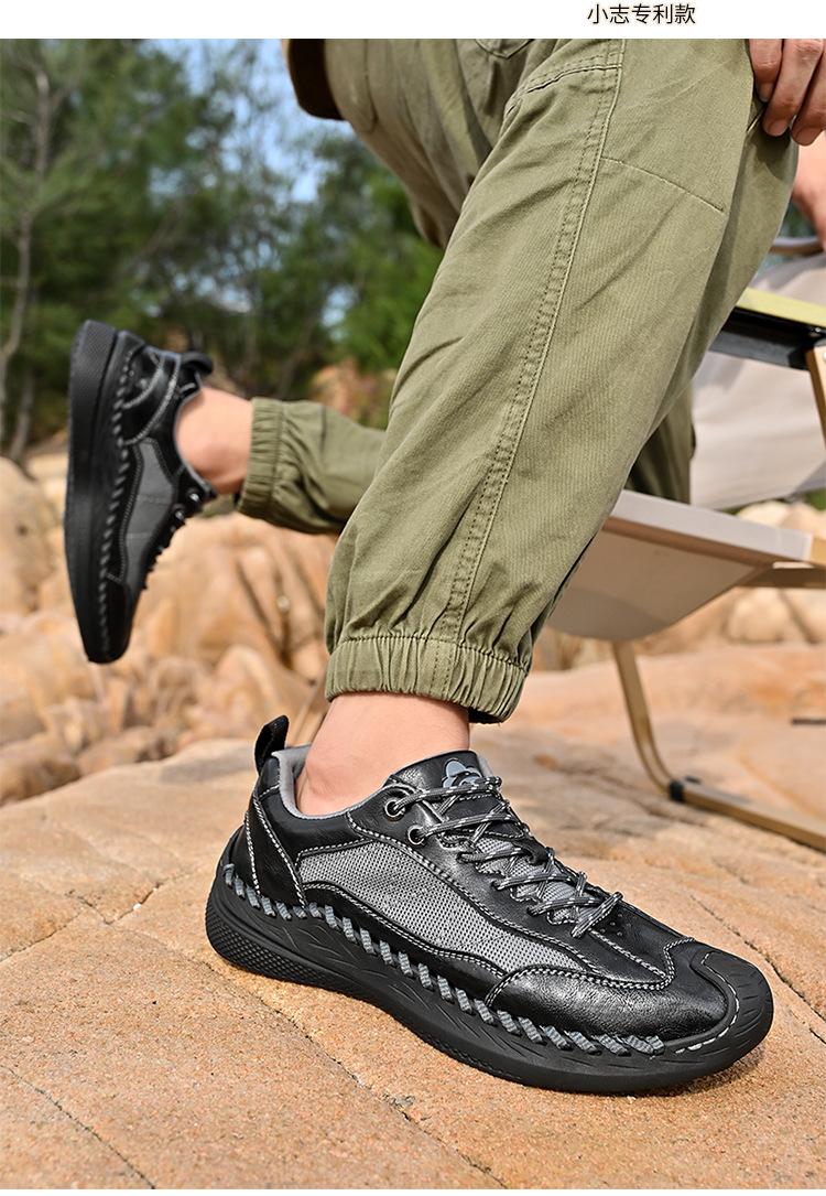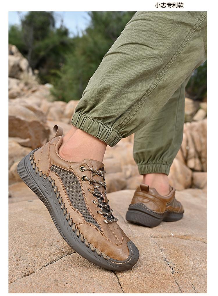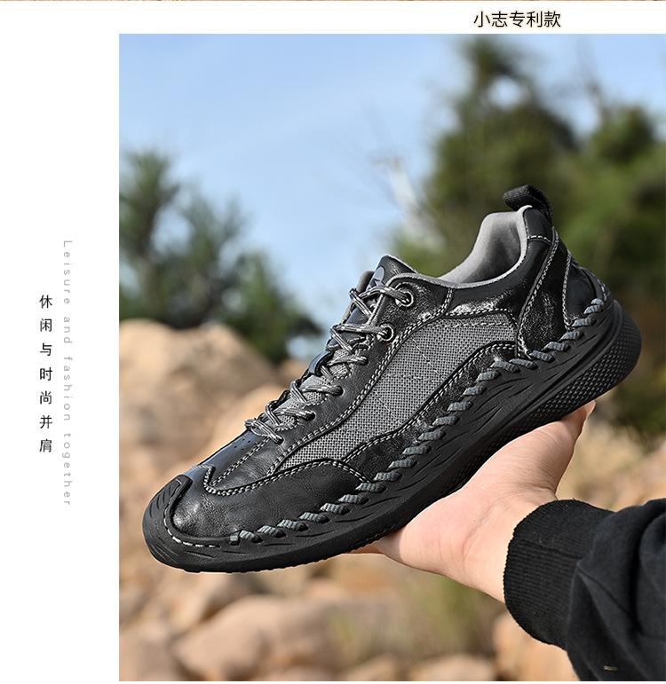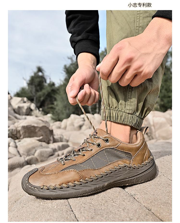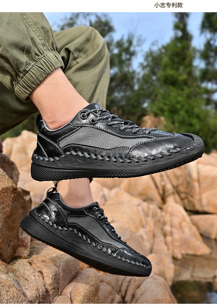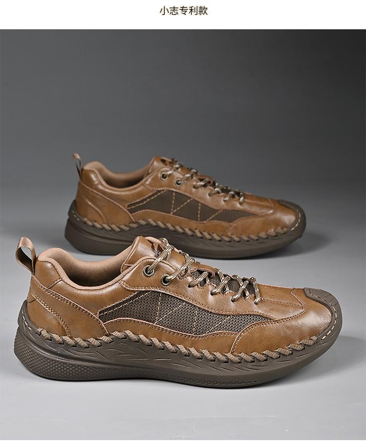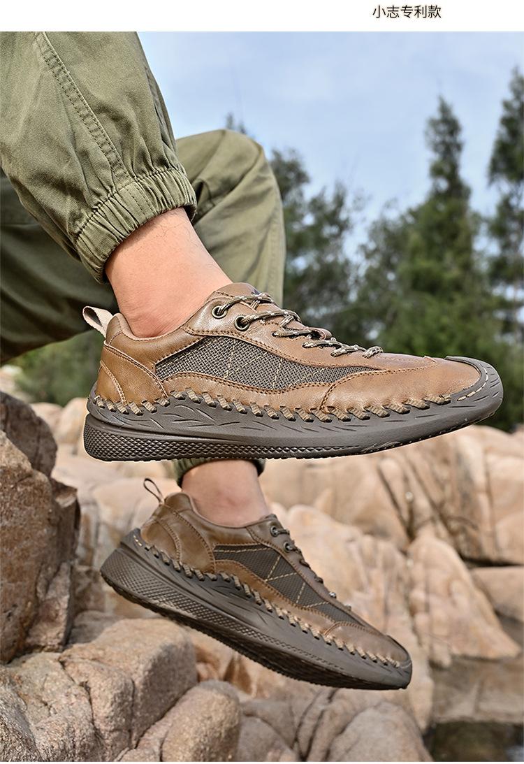 Primavera y Verano Nuevo Calzado para Hombre de Talla Grande de Venta Caliente Transfronteriza Deportivo Cuero Genuino Transpirable Fondo Cosido a Mano Zapatos de Malla para Hombre de Papá