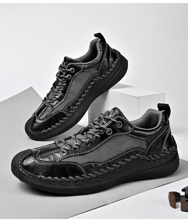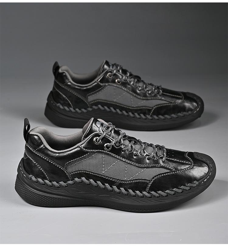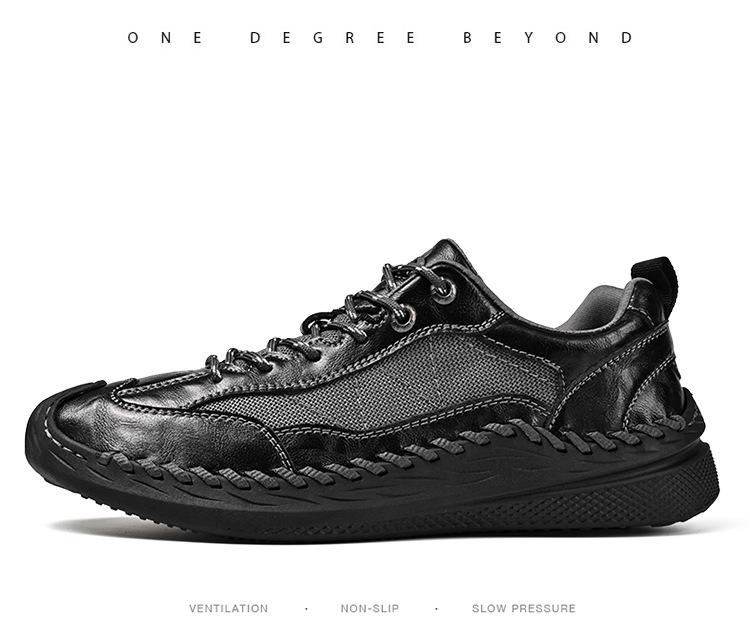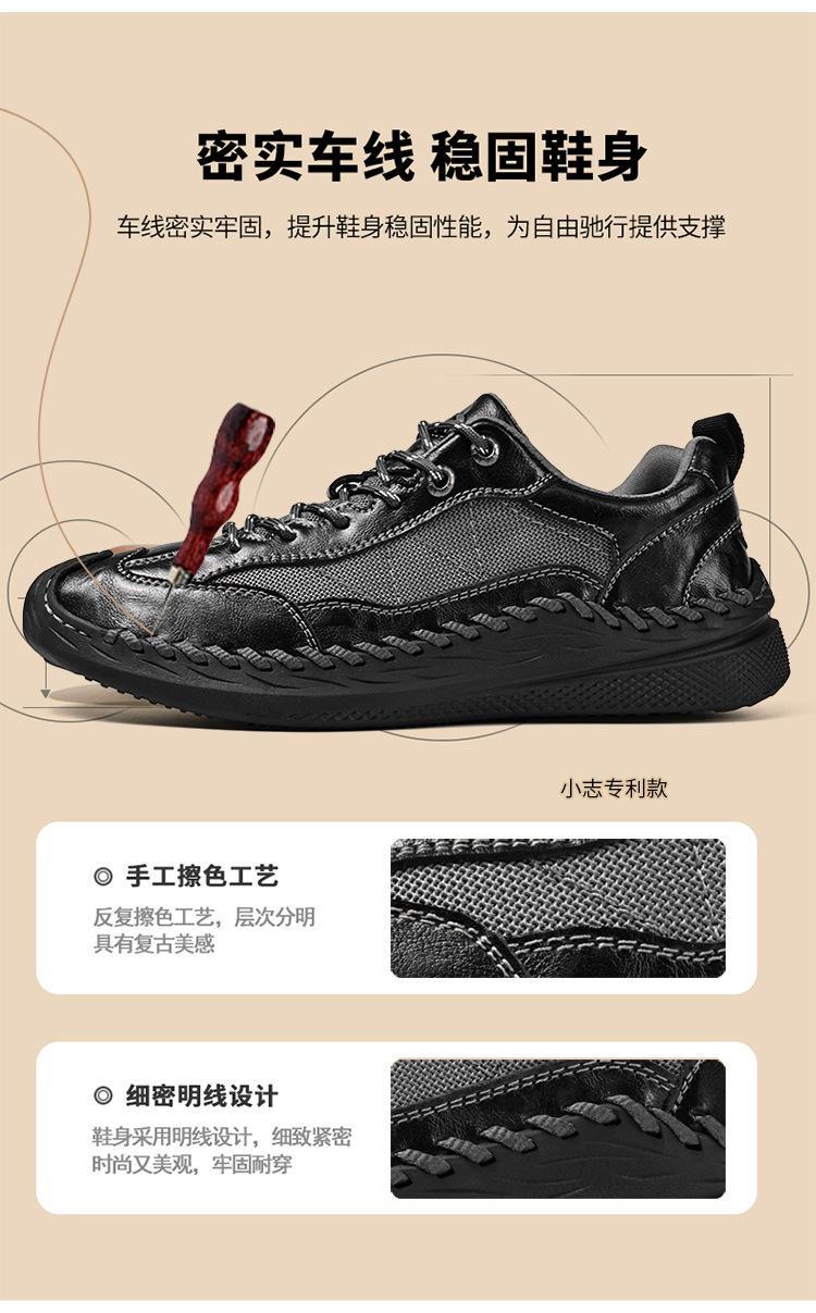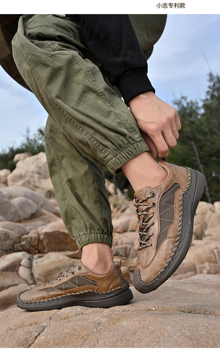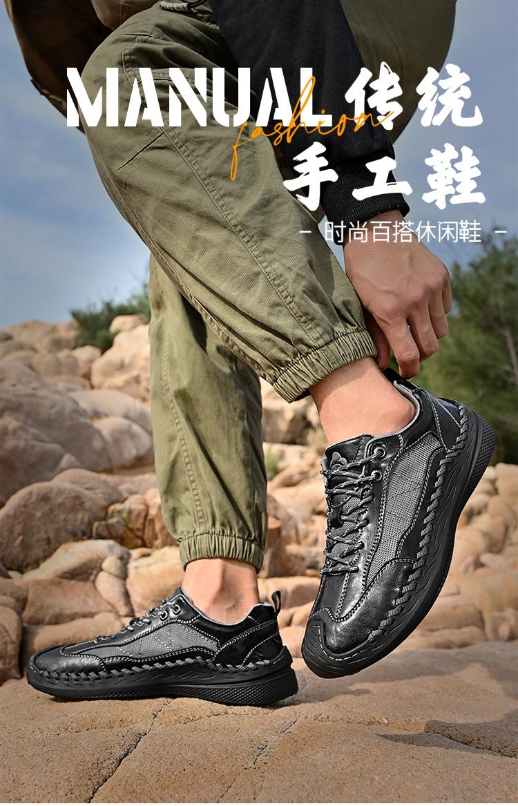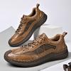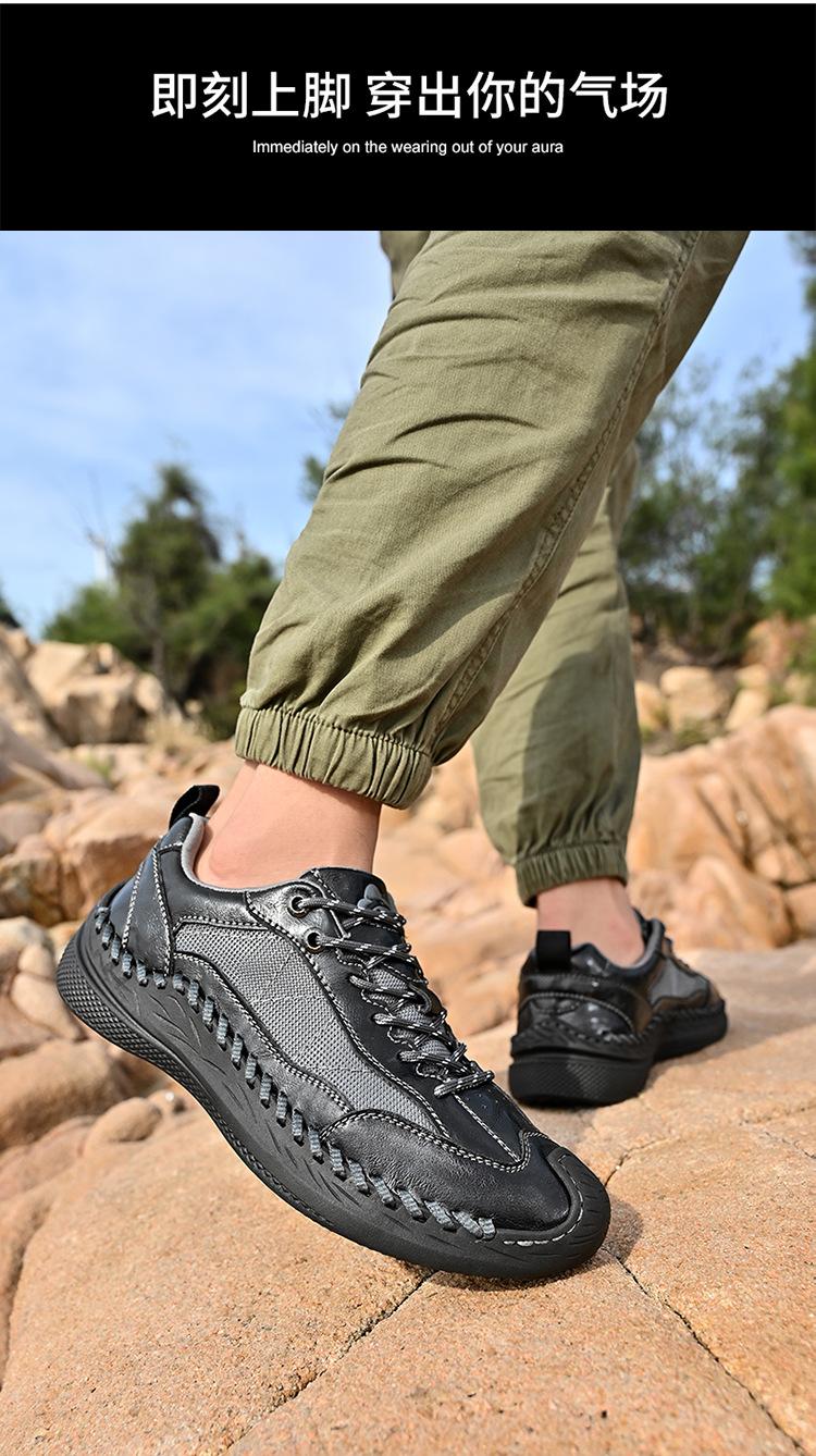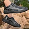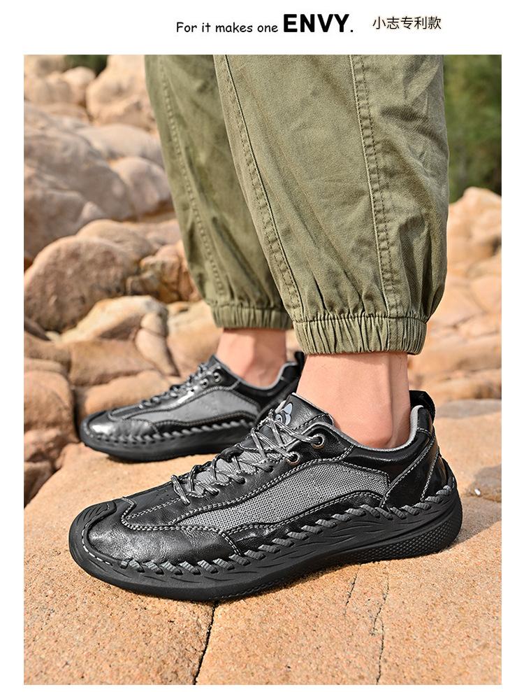 Primavera y Verano Nuevo Calzado para Hombre de Talla Grande de Venta Caliente Transfronteriza Deportivo Cuero Genuino Transpirable Fondo Cosido a Mano Zapatos de Malla para Hombre de Papá