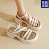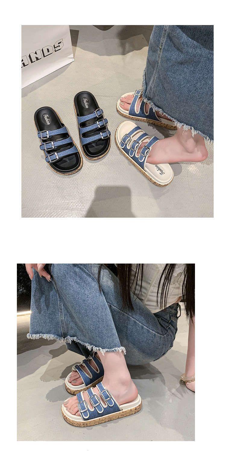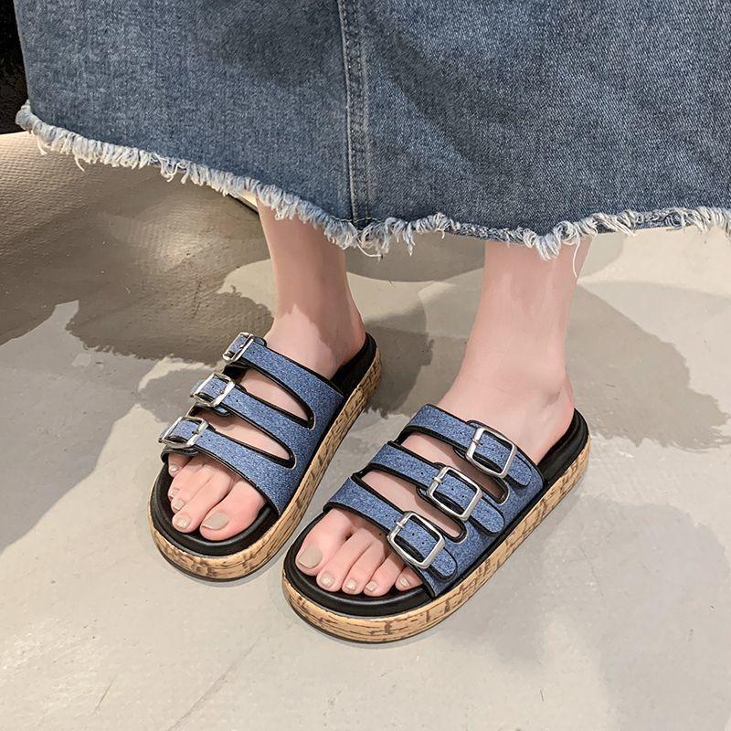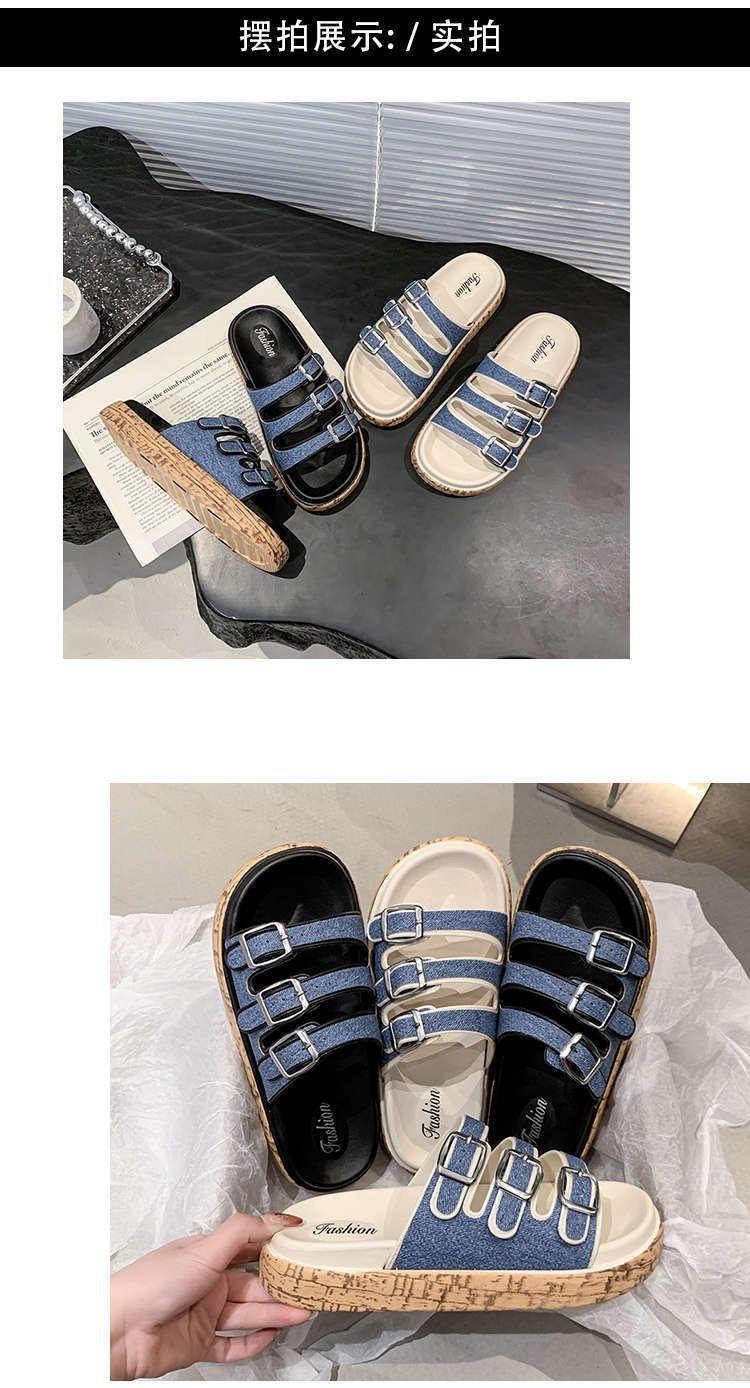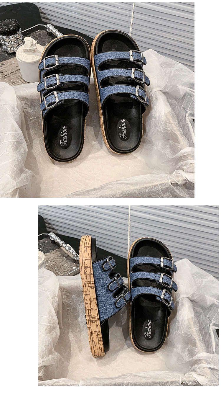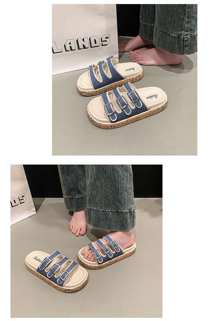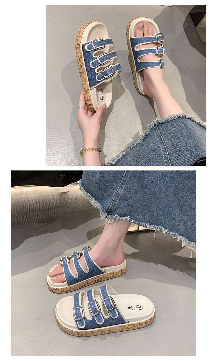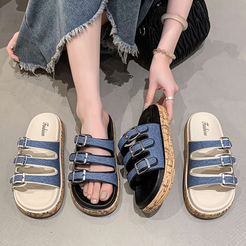 Moda Retro Versátiles Zapatillas de Hebilla de Una Línea para Mujer 2025 Nueva Moda Sandalias de Estilo Romano de Suela Gruesa para Exterior