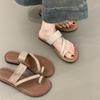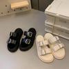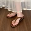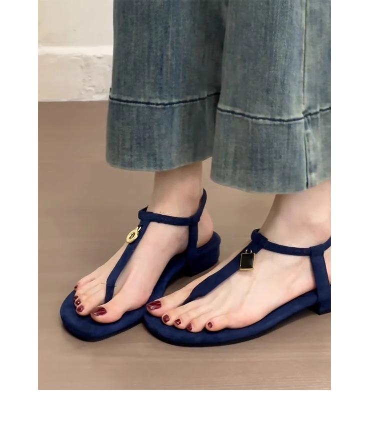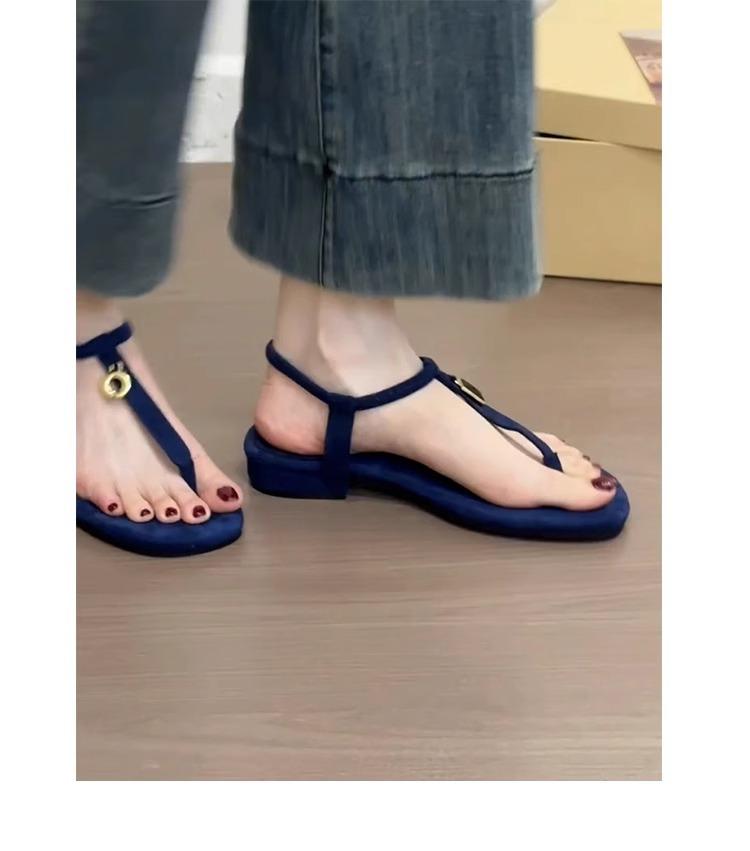 Sandalias Retro Francesas de Metal con Hebilla y Tira Única 2025 Nuevas para Exterior, Chanclas Planas de Suela Plana, Playa Casual, Sandalias Romanas