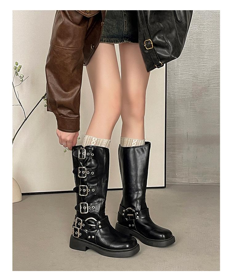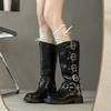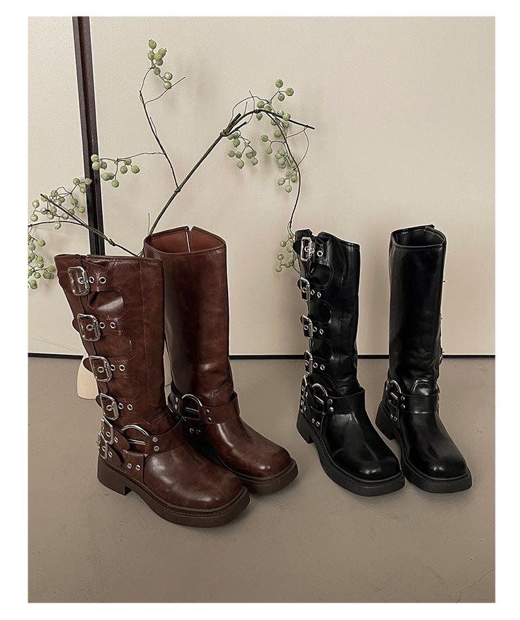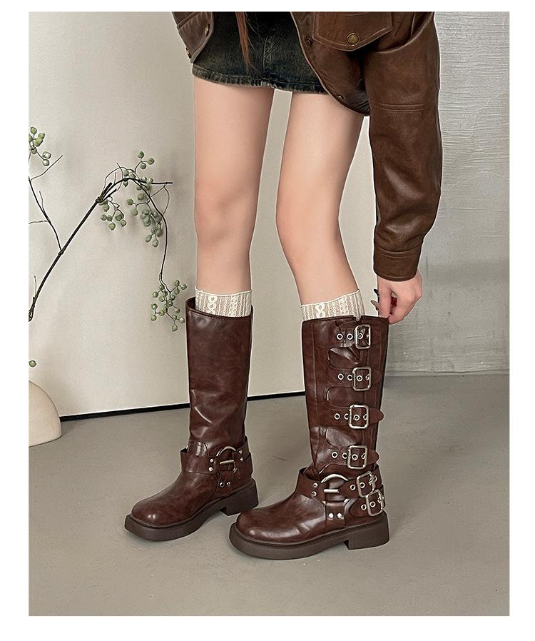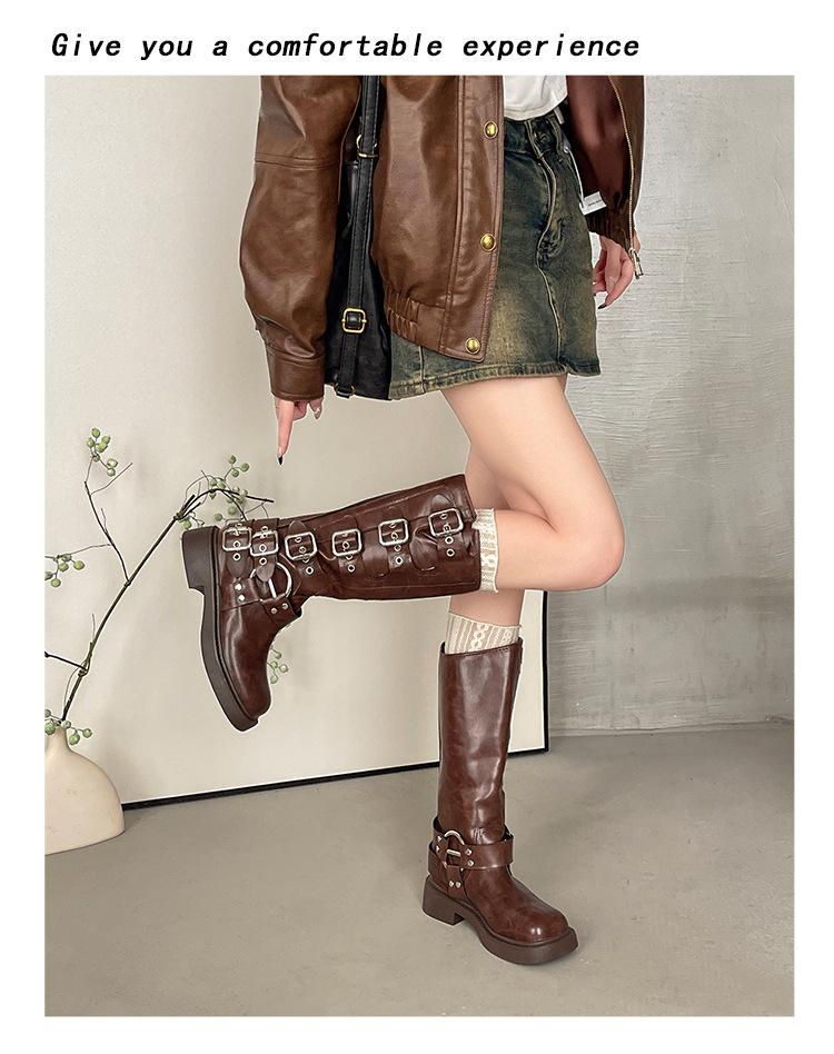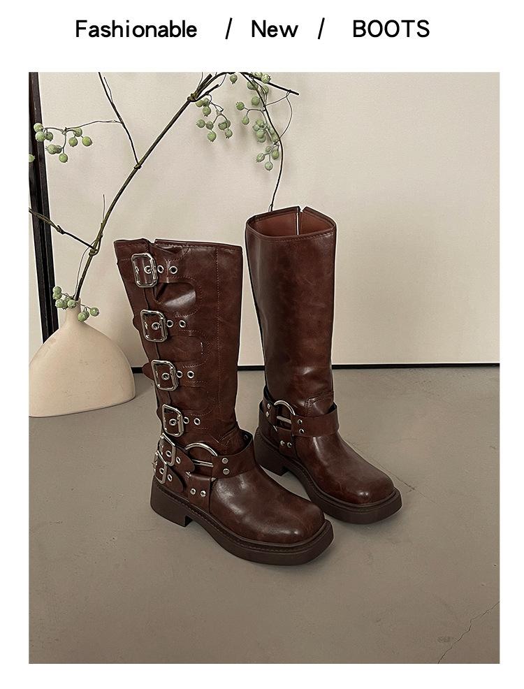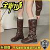 Botas Retro Moda de Mujer Diseño Versátil 2025 Otoño e Invierno Nuevas Botas Altas Marrones Botas Vaqueras Botas de Mujer