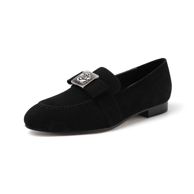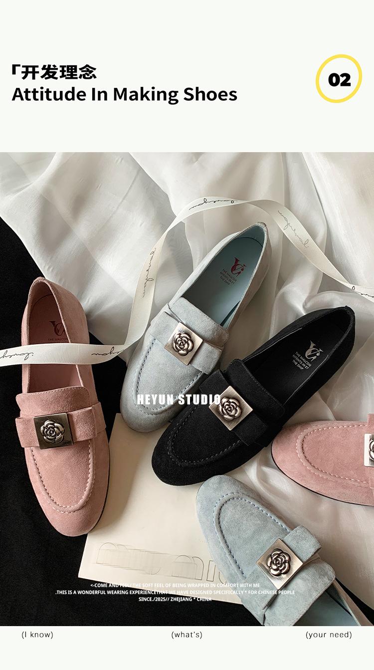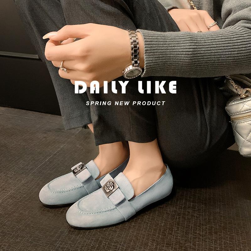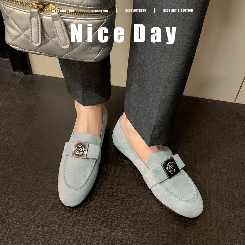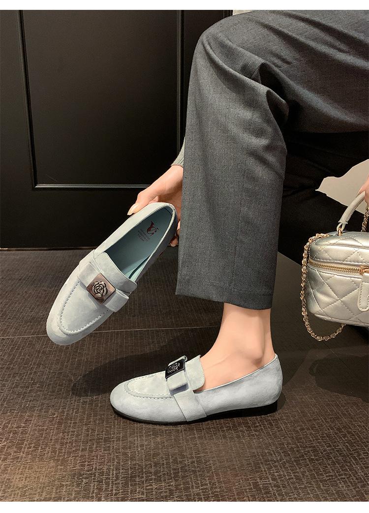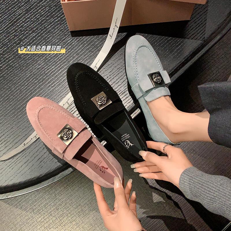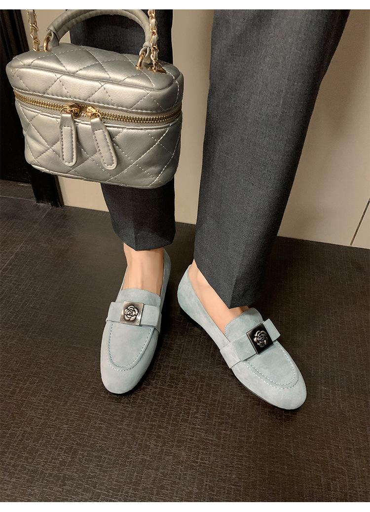 Mocasines de Moda con Hebilla Cuadrada de Camelia de Piel de Oveja para Mujer, Nuevos de Primavera y Otoño, Versátiles, Zapatos Slip-on de Cuero Genuino